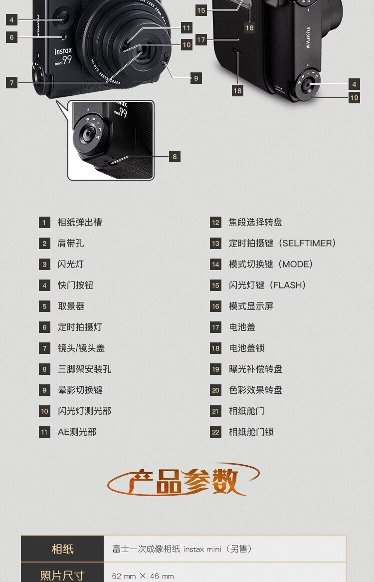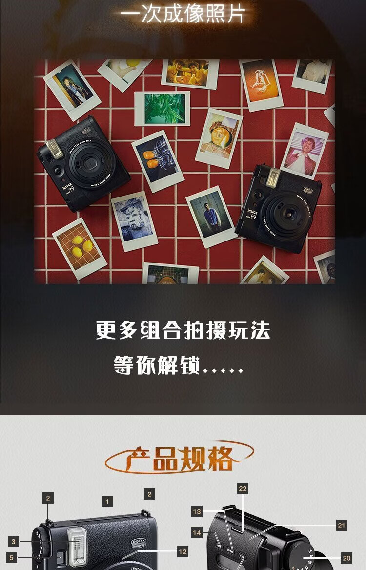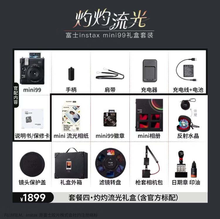 Fuji (FUJIFILM) instax instant camera mini99 classic black package 2 official content + 20 pieces of white-bordered photo paper