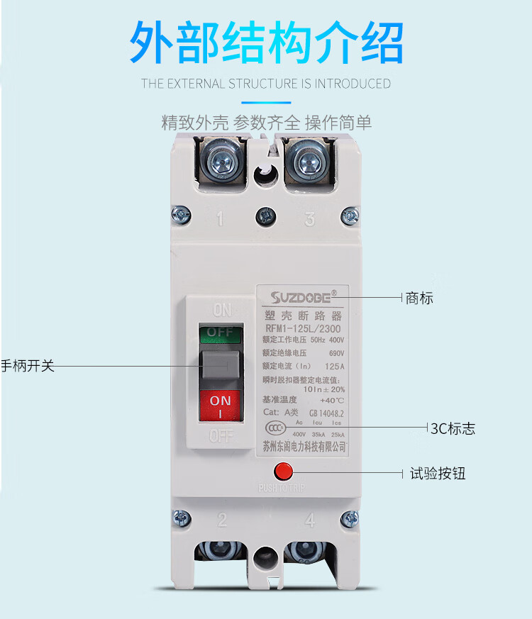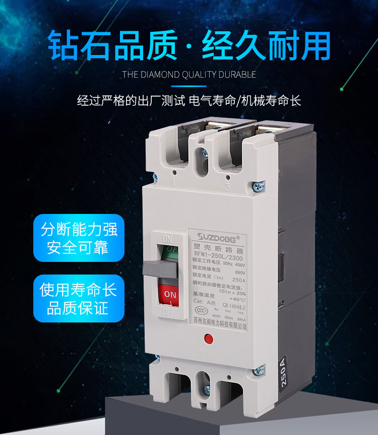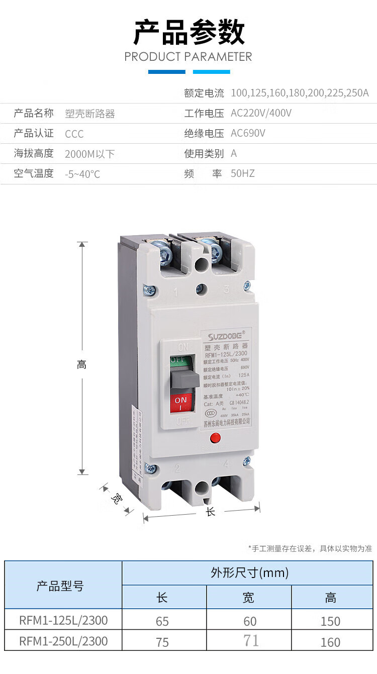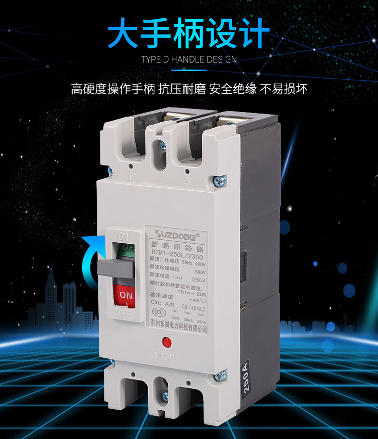 Plastic case circuit breaker 2P air switch 100A150A200A250A single phase 220V double maximum power air switch 63A 2P