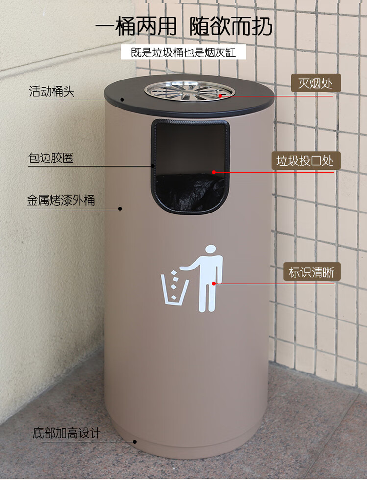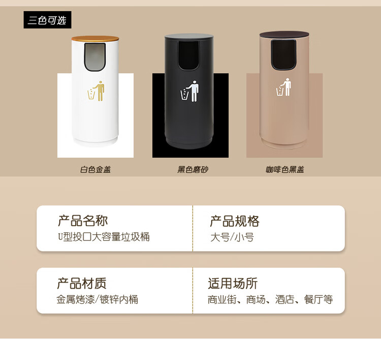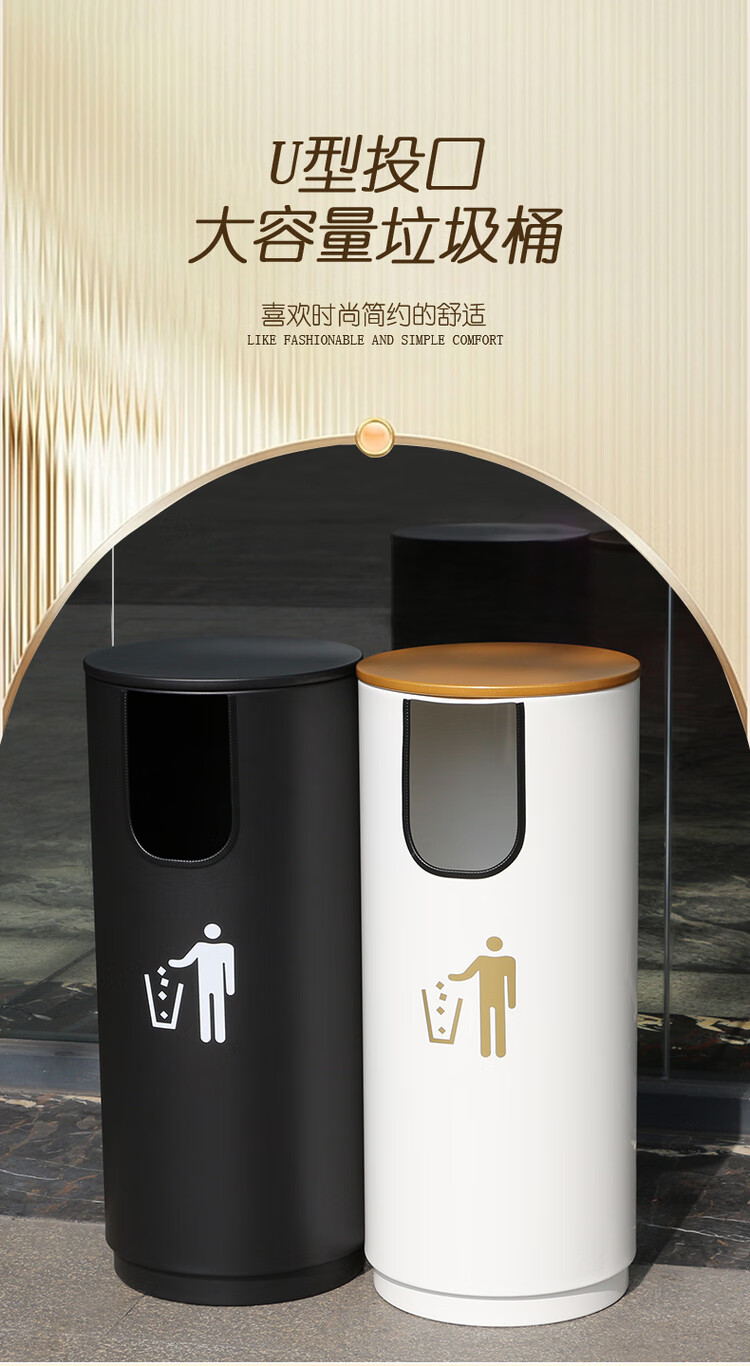 Outdoor commercial classified trash can, property community villa, large capacity, large U-shaped outdoor trash can, round black large (recyclable
