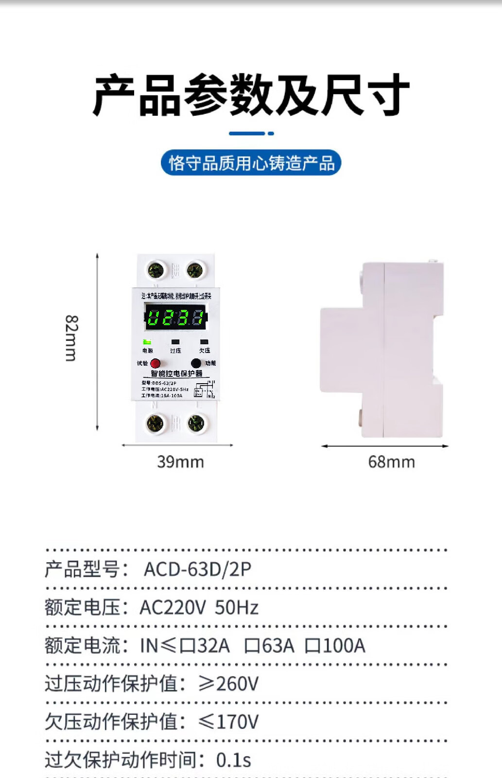 Intelligent water immersion anti-electric shock protector multi-functional anti-leakage, waterproof, anti-lightning strike 220V circuit breaker non-damage 20A 2P