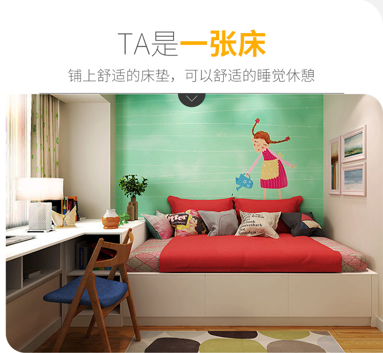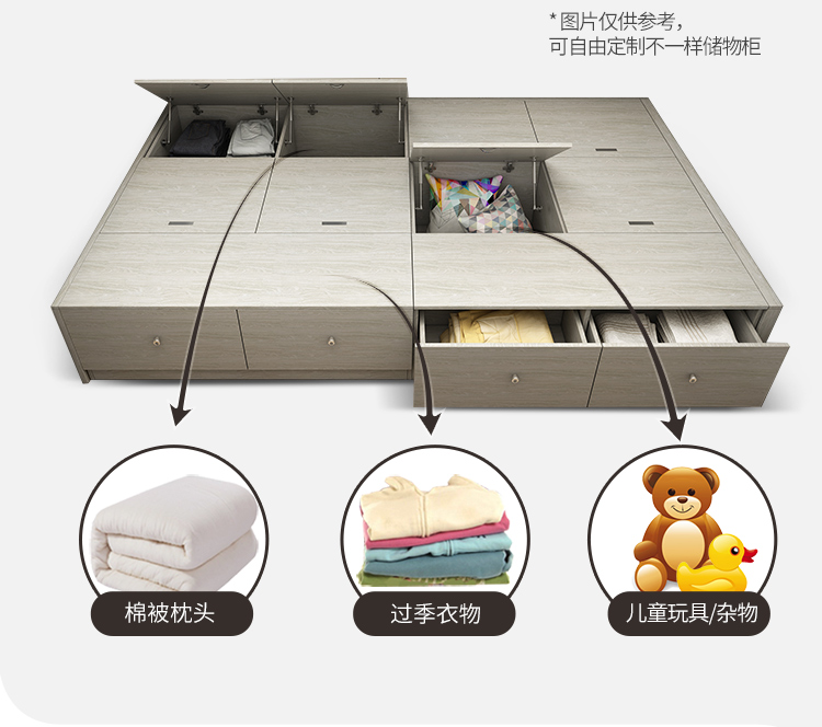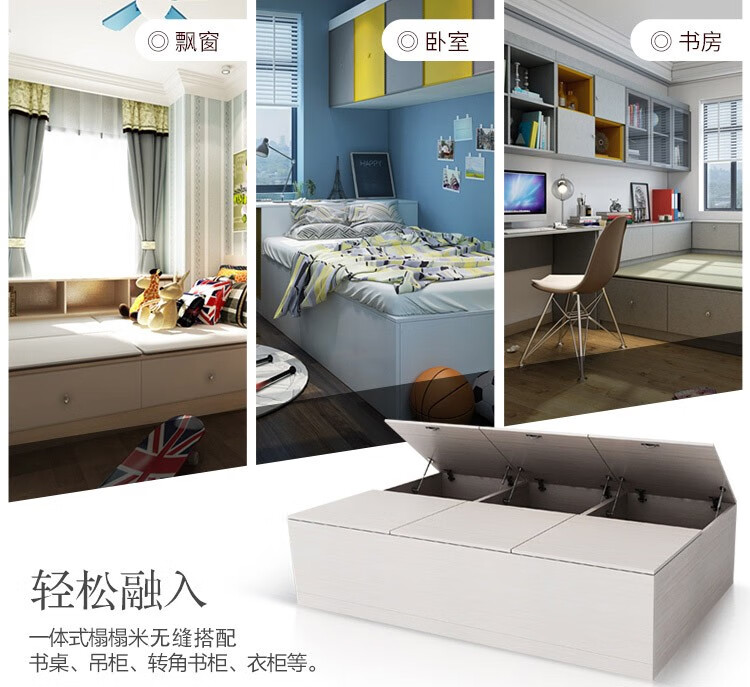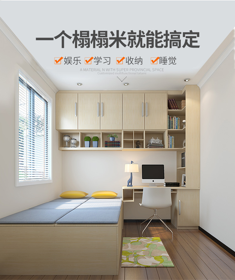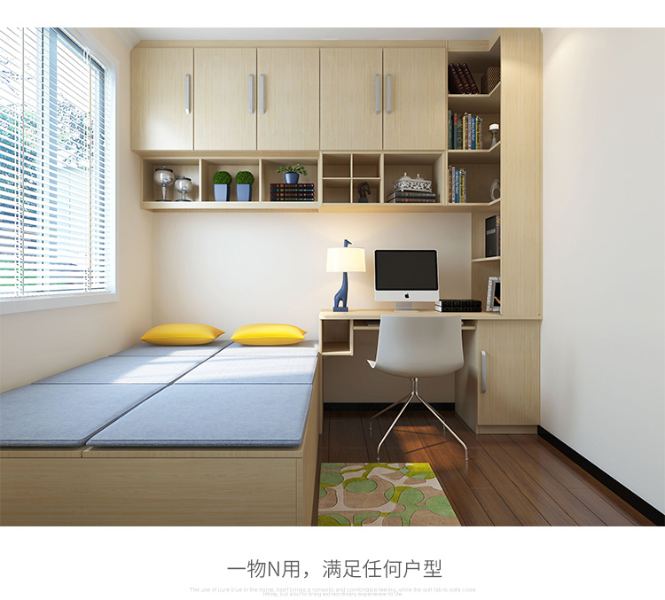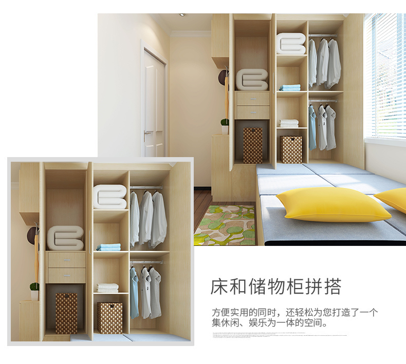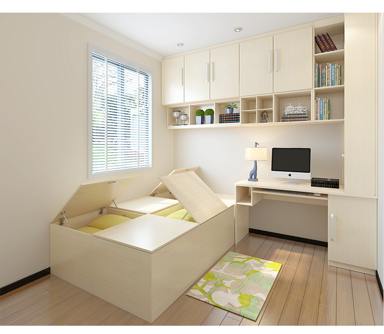 Schneiman whole house customized tatami bed teenager's room modern simple wardrobe bedroom furniture tatami bed bookcase storage cabinet solid wood color/square meter