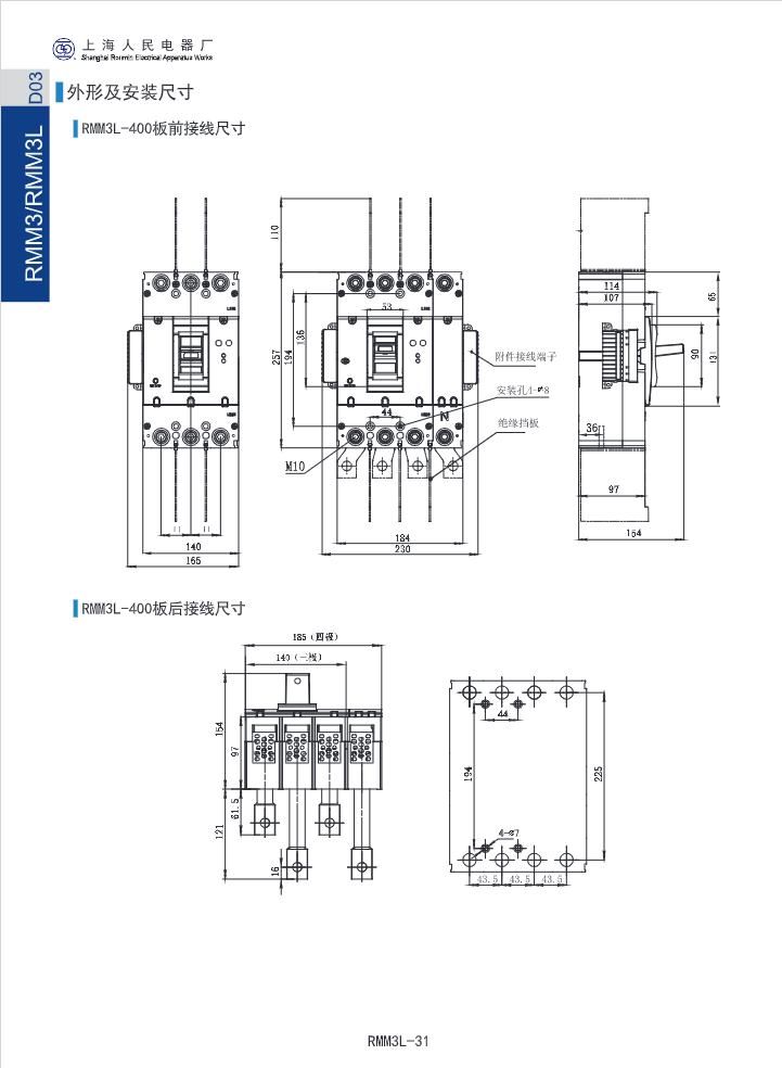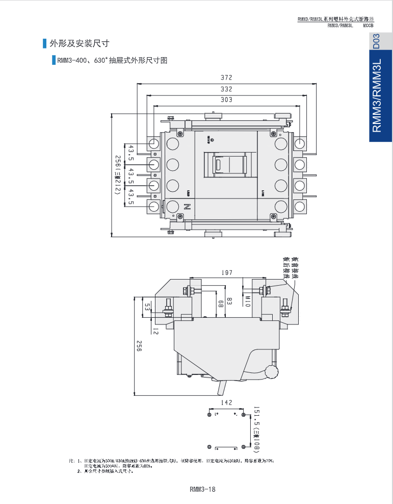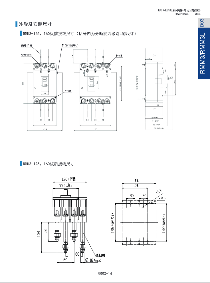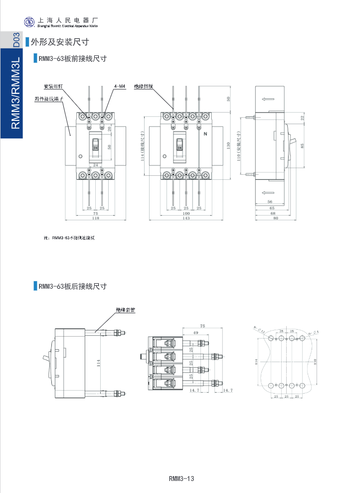 Molded case circuit breaker RMM3-63S125L160S250H315A400H630A800L RMM3-63 3p