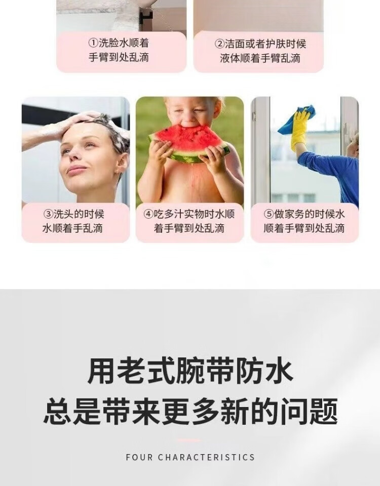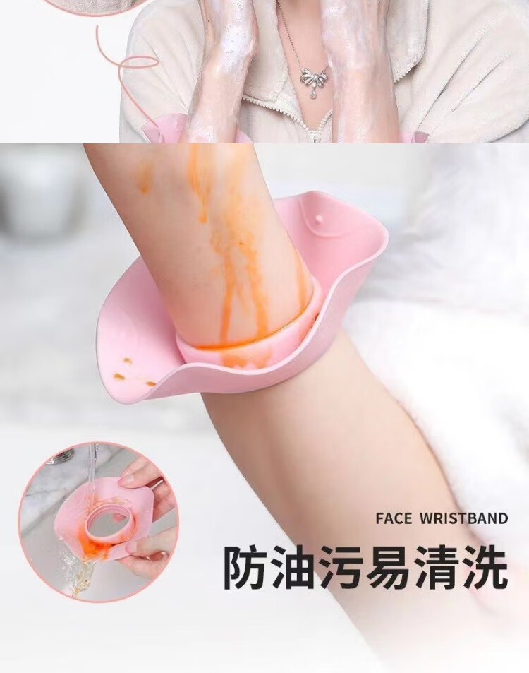 Face washing wrist strap silicone waterproof hair washing housework moisture-proof sleeve artifact adult and children's wash stopper hand ring sheath 1 pair blue + 1 pair pink