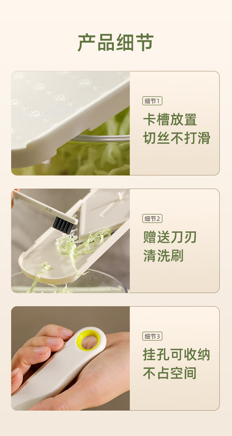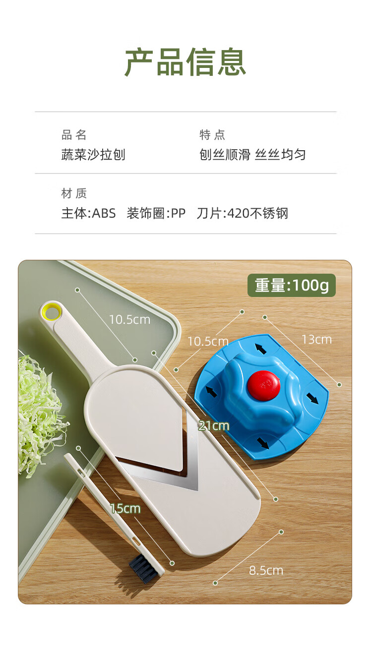 Beige cabbage grater, cabbage purple cabbage scraper, salad cutting artifact, ultra-fine vegetable shredder, vegetable salad grater, free cleaning brush