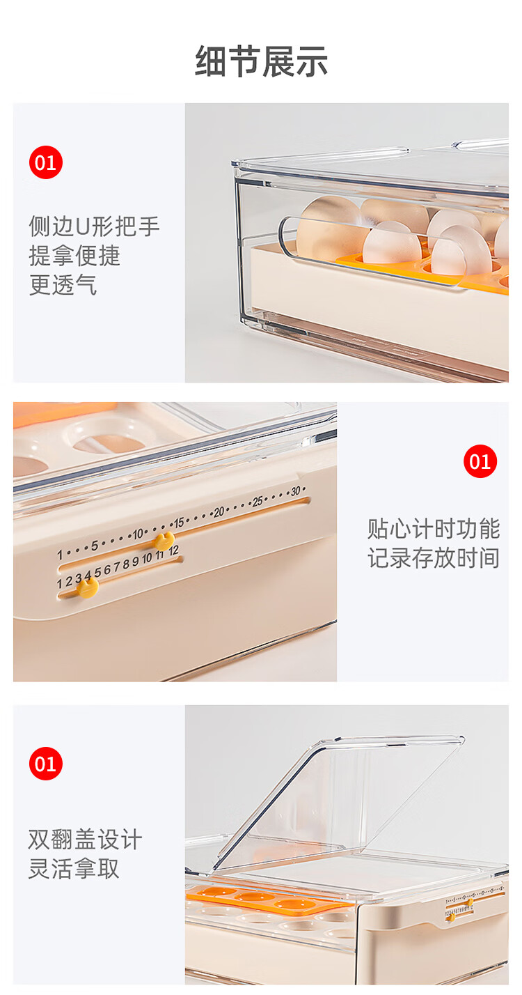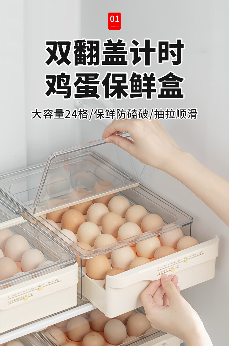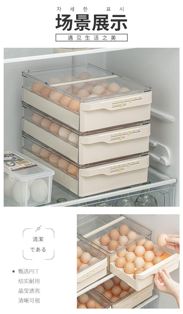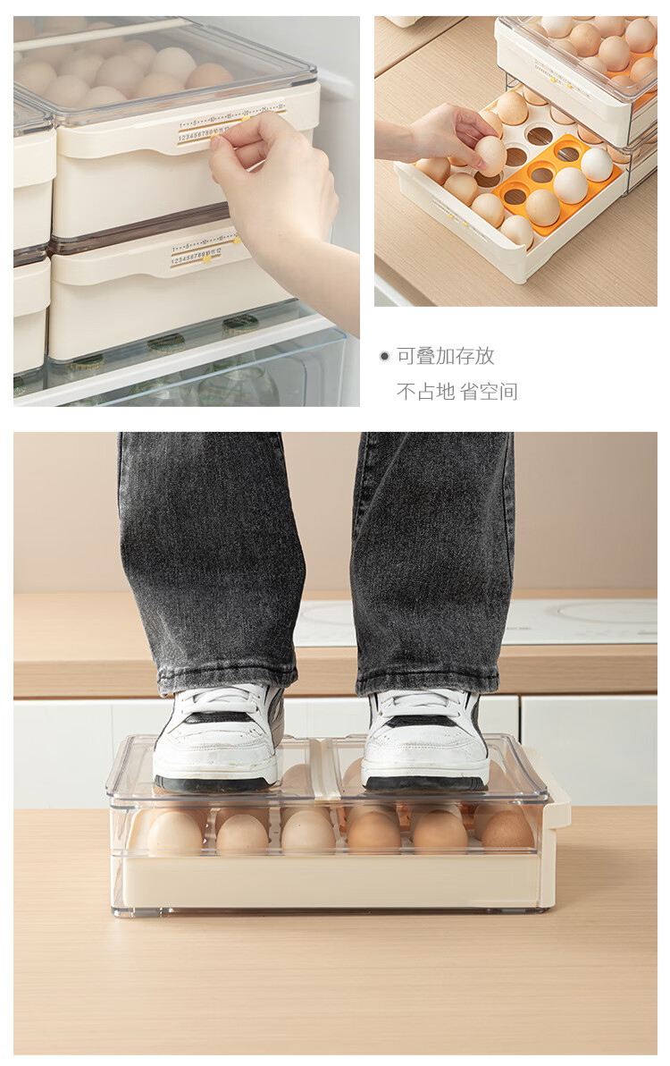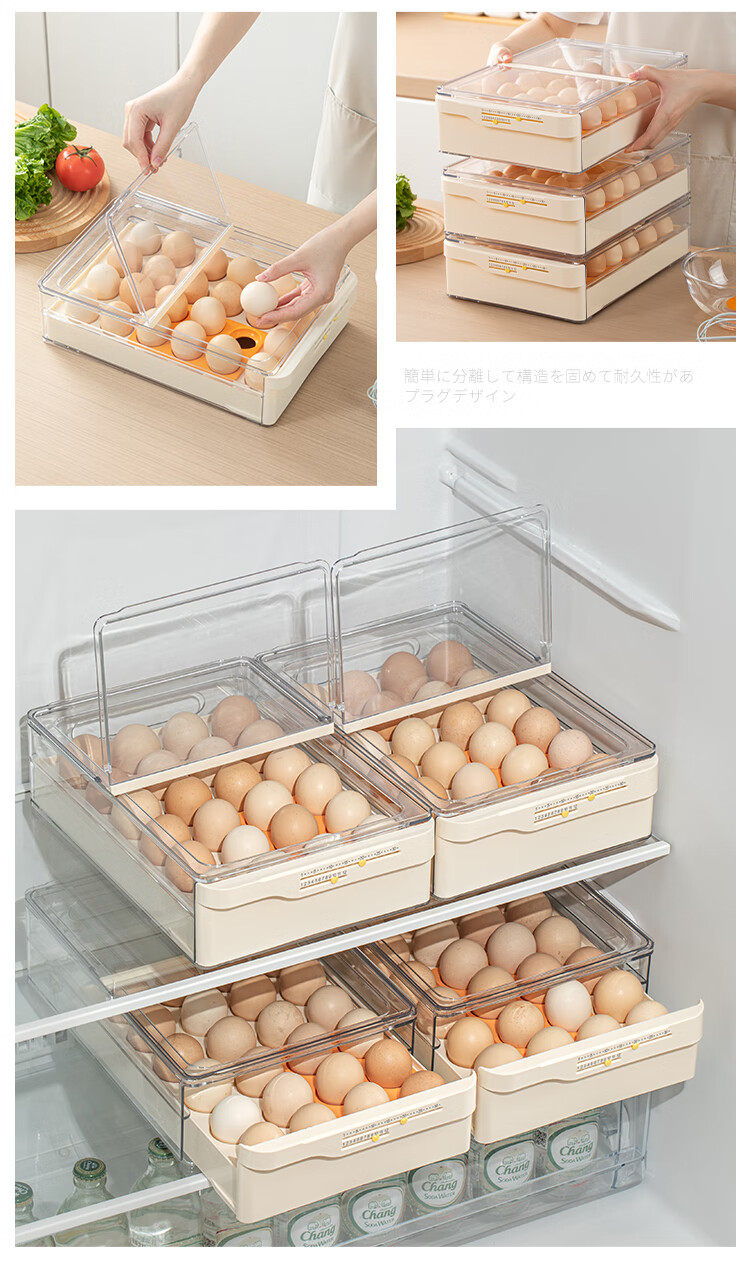 Home KATEI STORY Japanese egg storage box refrigerator with food-grade drawer-type egg rack holder household kitchen organization artifact flip-top drawer-type egg box