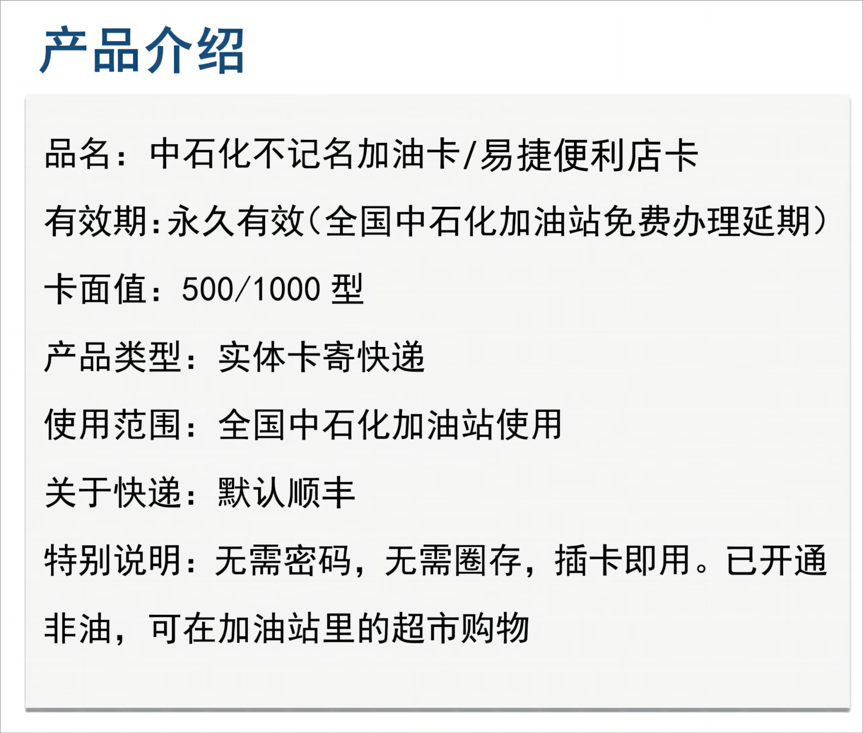 Beware of bill fraud. Sinopec anonymous fuel card. Sinopec chip card. Petrochemical fuel card. National 1,000 face value fuel card. Physical card.