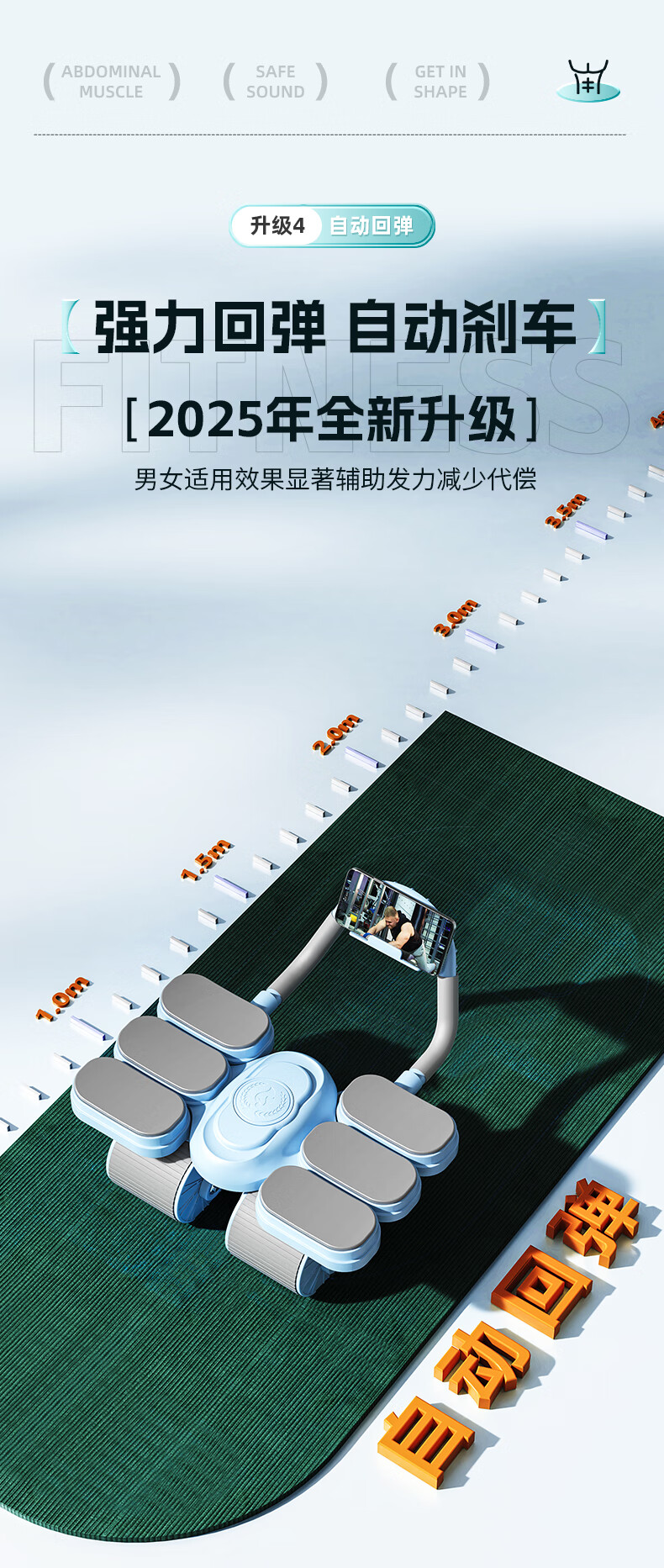 Yuhaojian Abdominal Wheel Automatic Rebound Elbow Support Abdominal Muscle Wheel Kneeling Pad 2024 New Four-Wheel Abdominal Rolling Wheel Abdominal Muscle Training Equipment Advanced 3-piece Set Newly Upgraded 4-Wheel 6 Elbow Support Style - Black + Posture Pad + Kneeling Pad