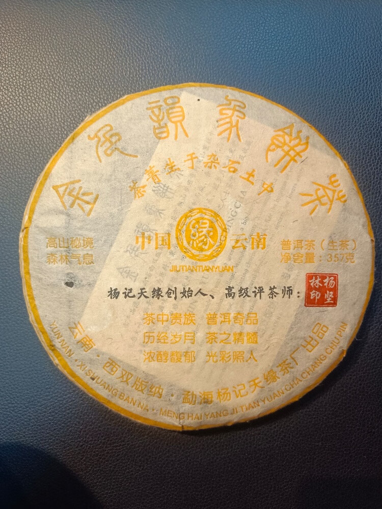 2008 Yang Ji Tianyuan 357g piece of dry warehouse old raw Pu'er tea Brown Mountain high-quality raw materials smoke honey flavor