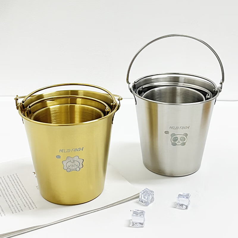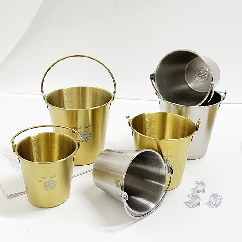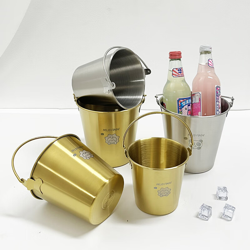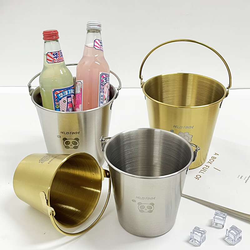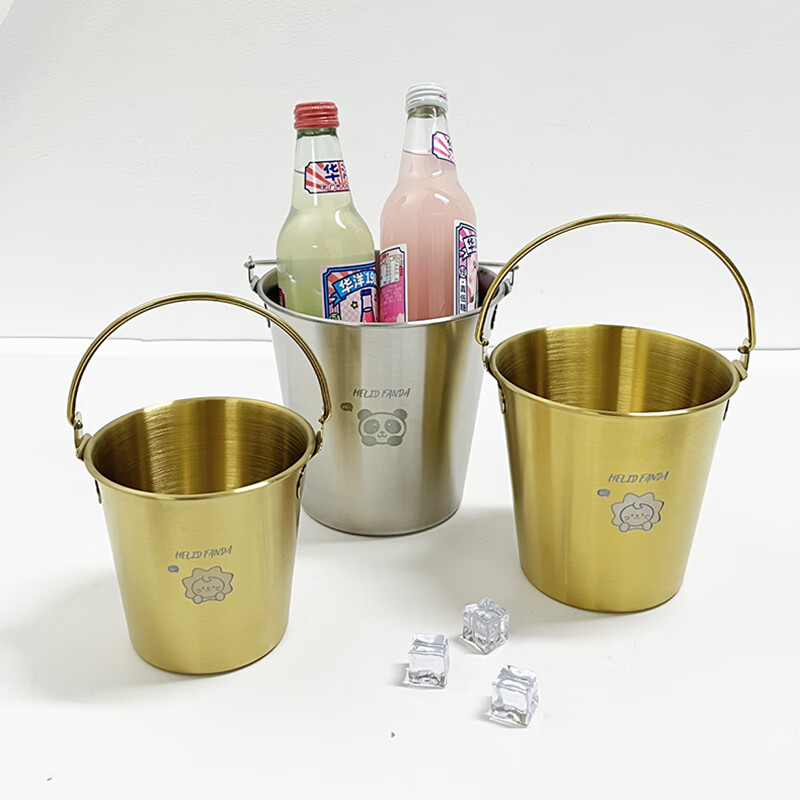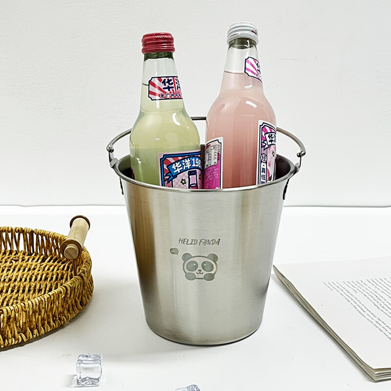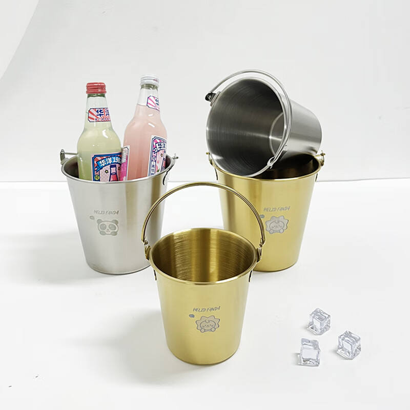 WORTHBUY Internet celebrity ice bucket 304 stainless steel portable ice bucket bar KTV champagne bucket thickened household beer bucket red wine bucket with handle natural color 1.7L-Doudou Xiong