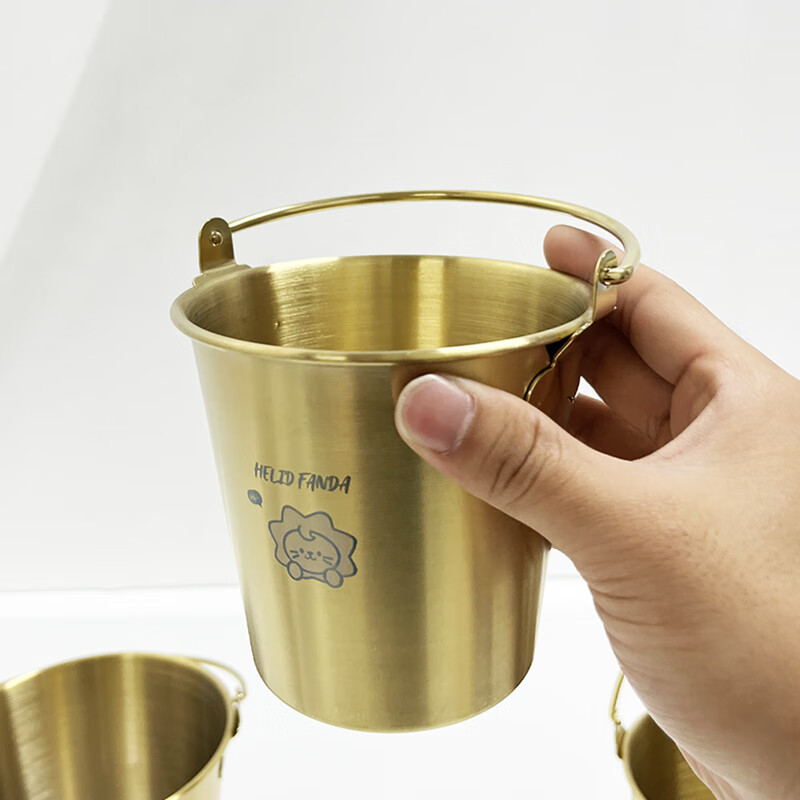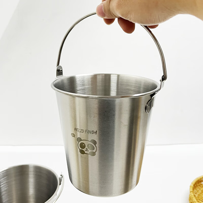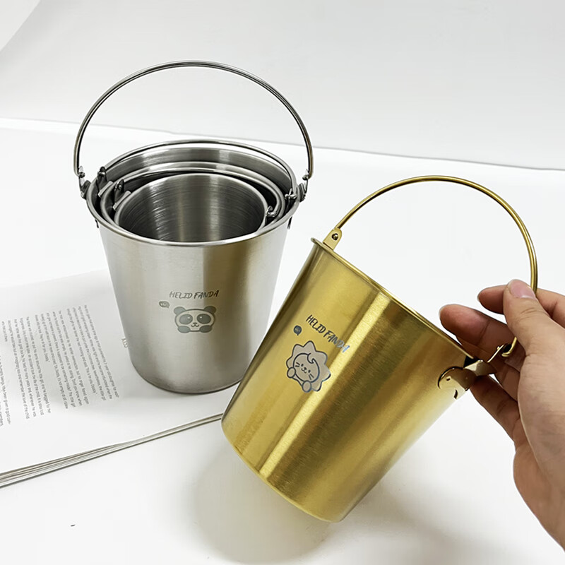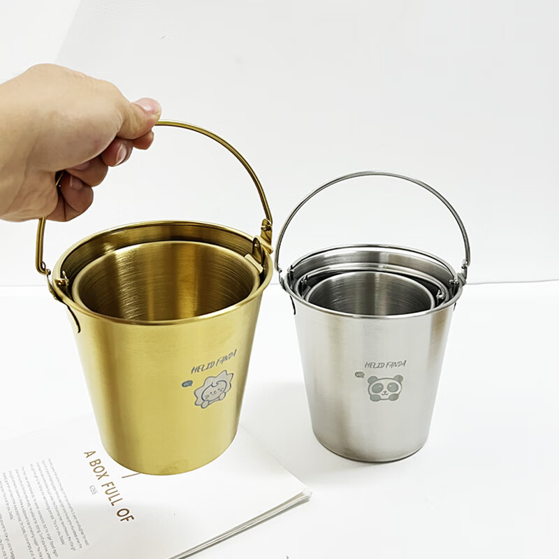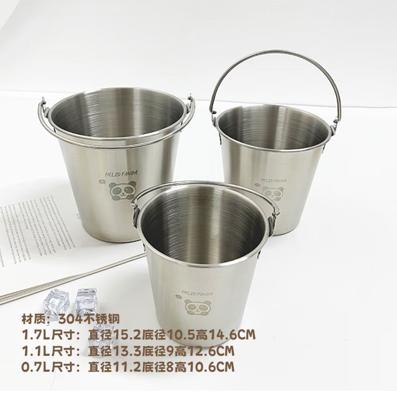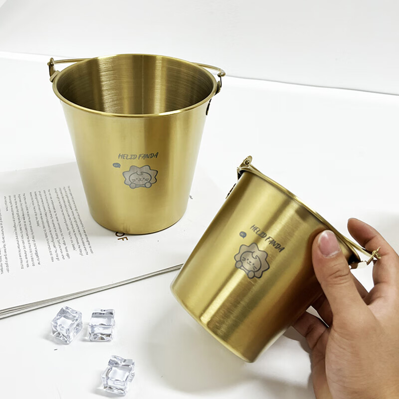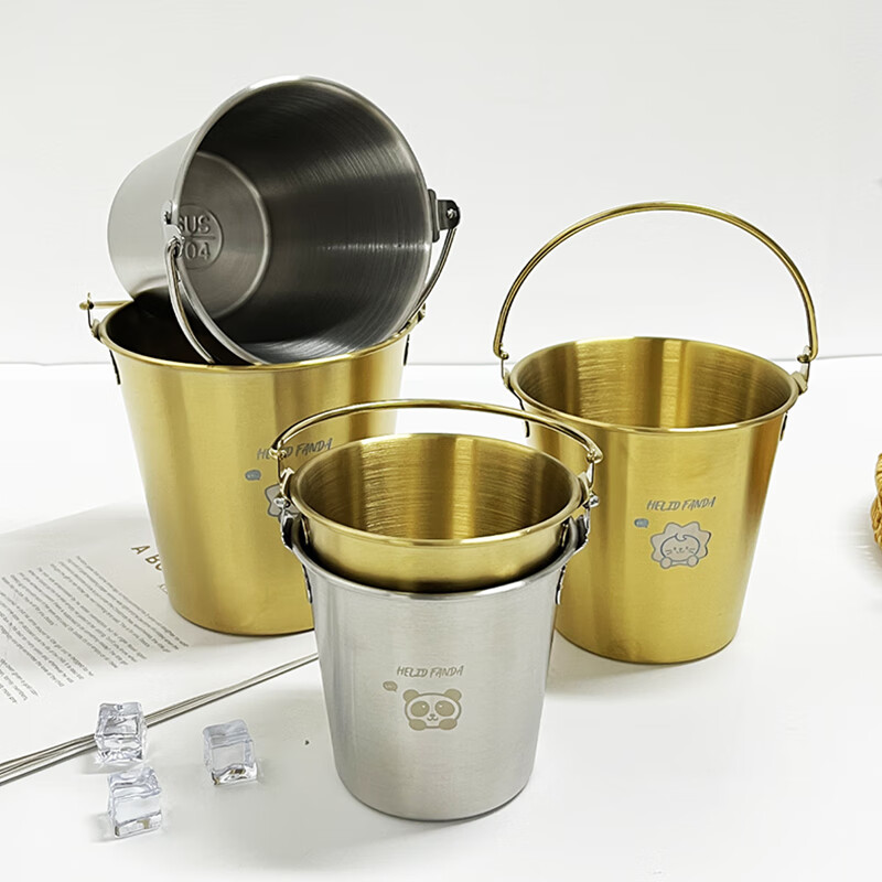 WORTHBUY Internet celebrity ice bucket 304 stainless steel portable ice bucket bar KTV champagne bucket thickened household beer bucket red wine bucket with handle natural color 1.7L-Doudou Xiong