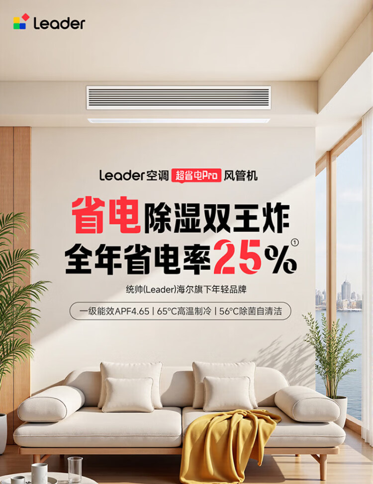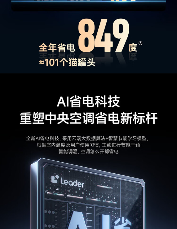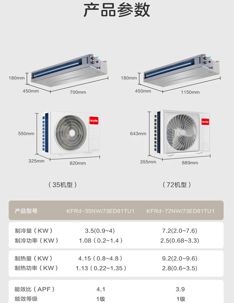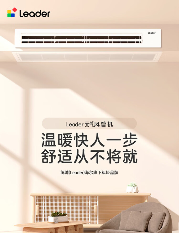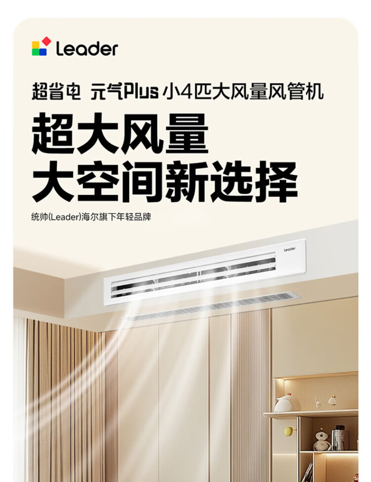 Haier Smart Home produces Leader Net Energy Saving Plus Yuanqi 3 hp central air conditioner one-to-one 4 hp home living room air duct machine frequency conversion first-level energy efficiency national subsidy 20% 3 hp first-level energy efficiency Yuanqi series produced by Haier Smart Home