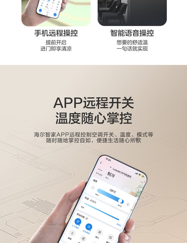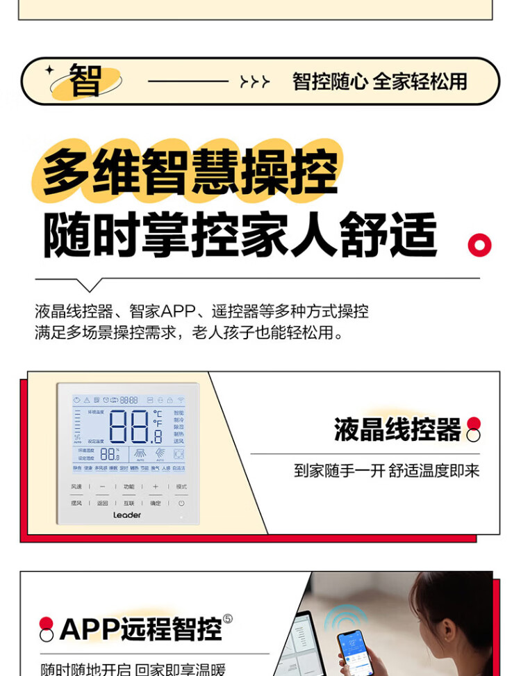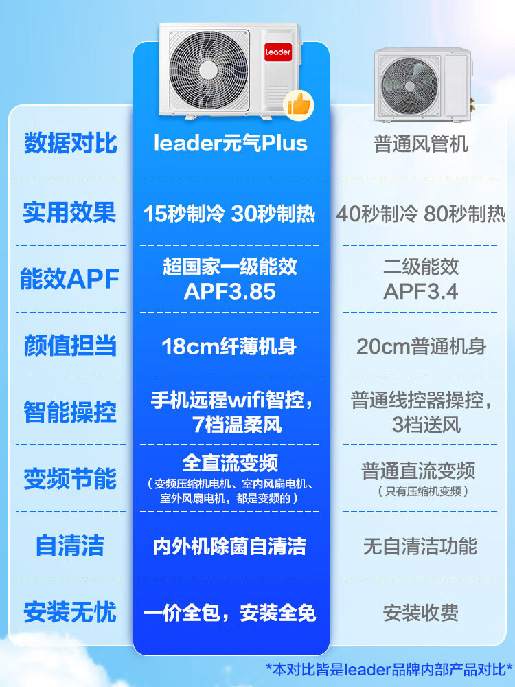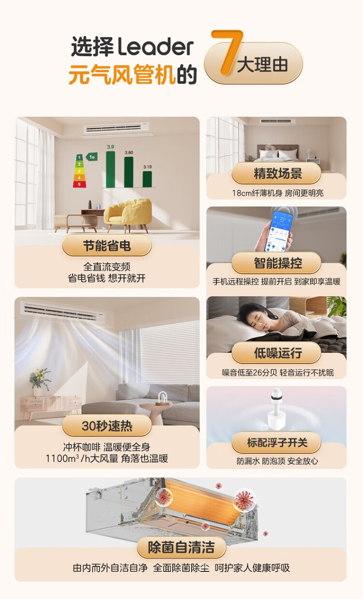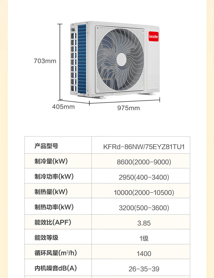 Haier Smart Home produces Leader Net Energy Saving Plus Yuanqi 3 hp central air conditioner one-to-one 4 hp home living room air duct machine frequency conversion first-level energy efficiency national subsidy 20% 3 hp first-level energy efficiency Yuanqi series produced by Haier Smart Home