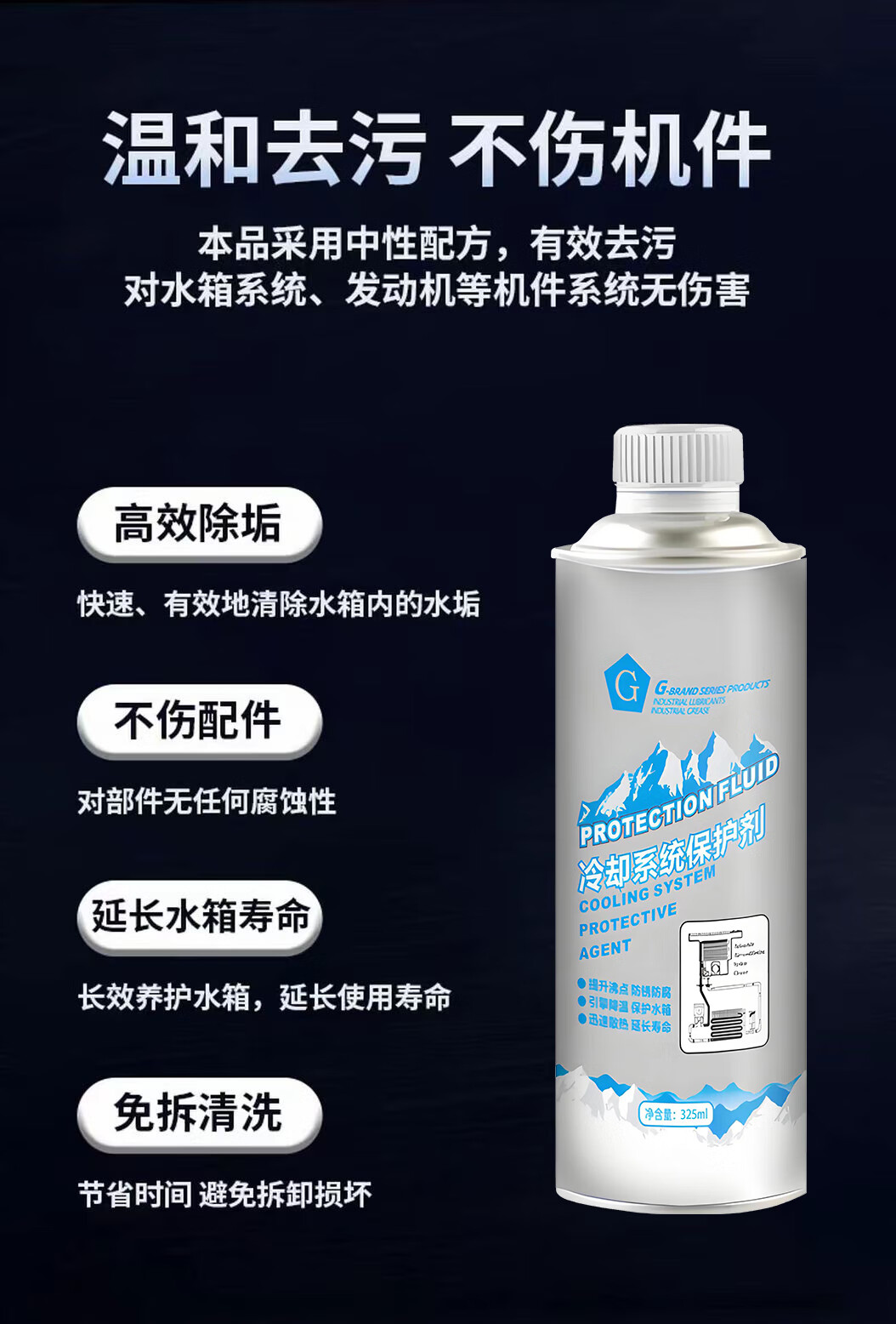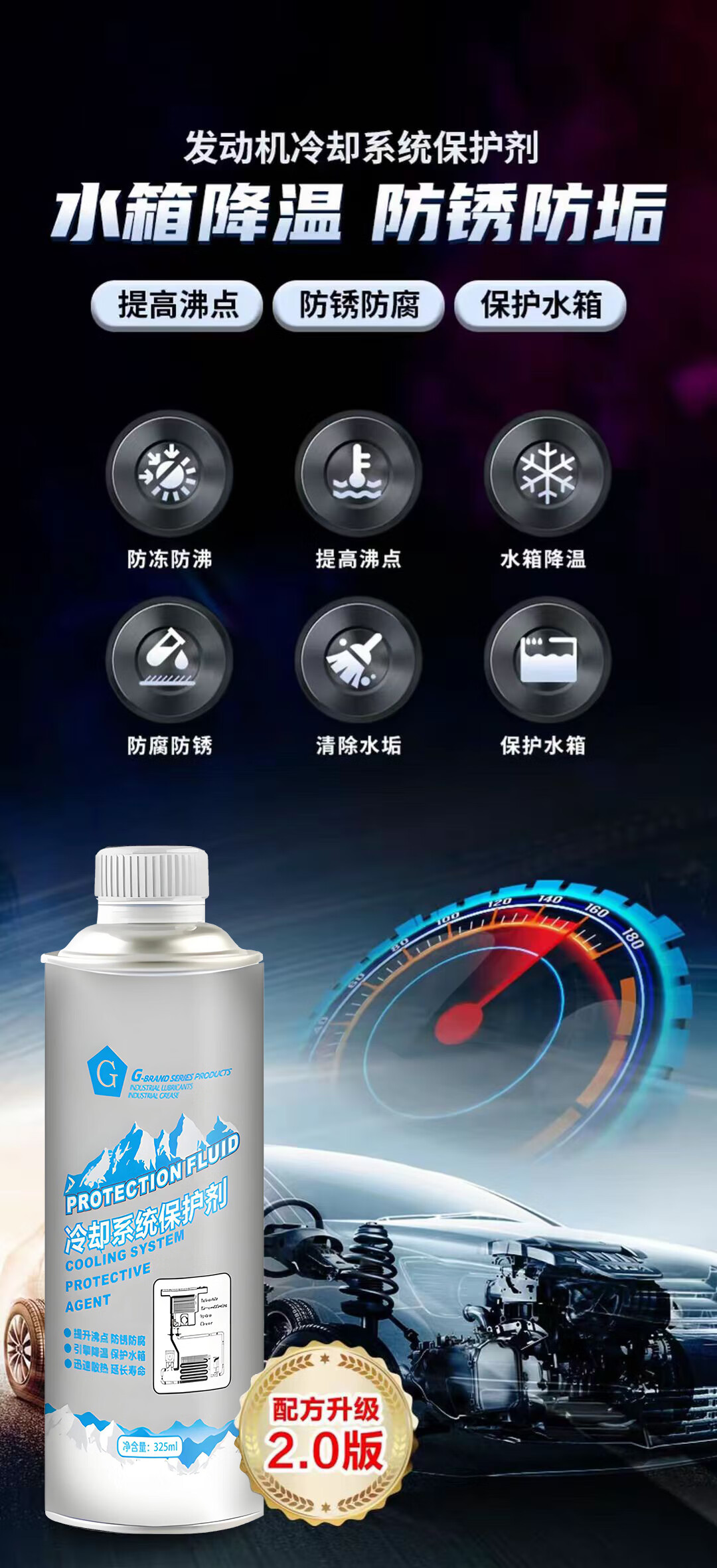 G brand high temperature car water tank cooling system anti-corrosion, anti-rust and anti-boiling protective agent effective anti-freeze cooling system protective agent 325ml*2