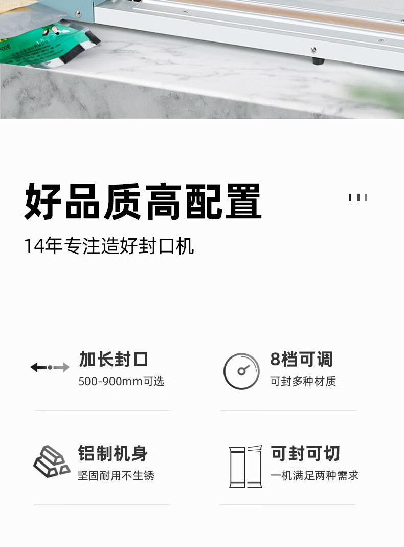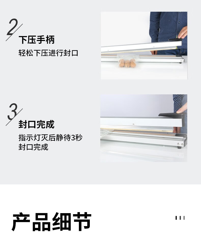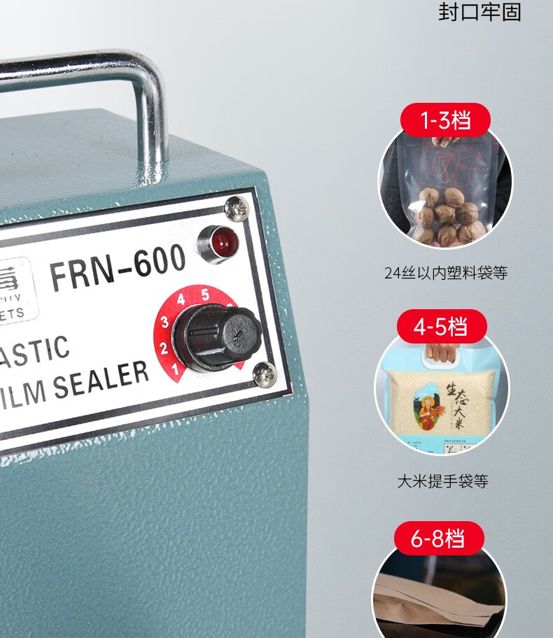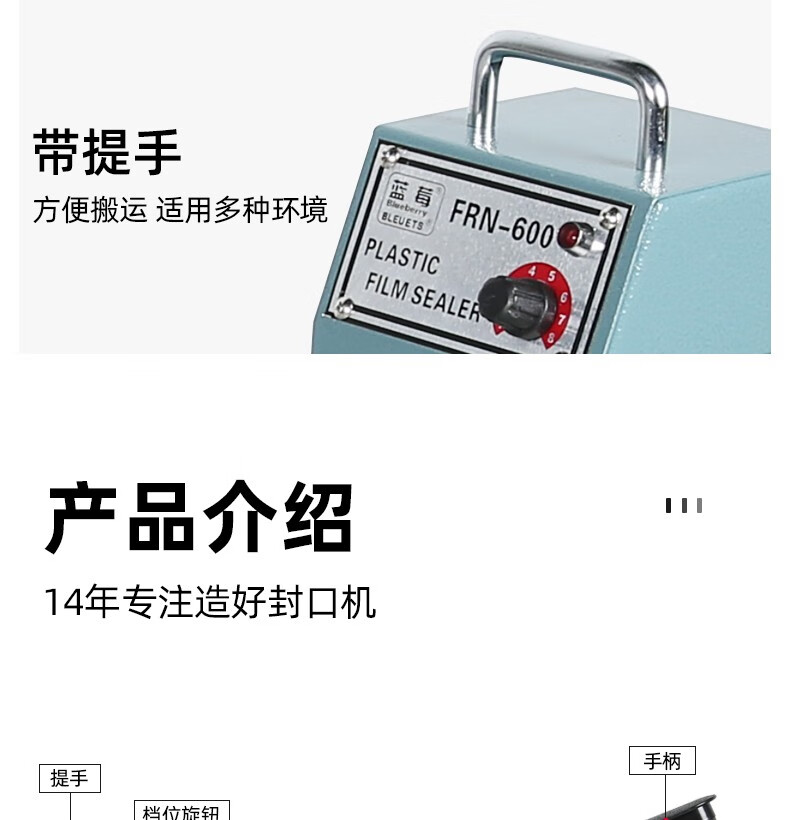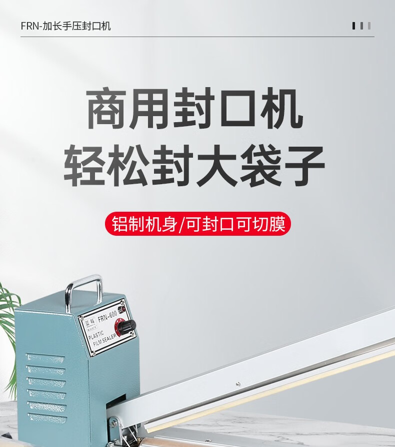 BLEUETS hand pressure sealing machine commercial extended food plastic sealing machine industrial plastic aluminum foil bag sealing machine film heat sealing machine FRN-600 sealing/sealing width 8mm