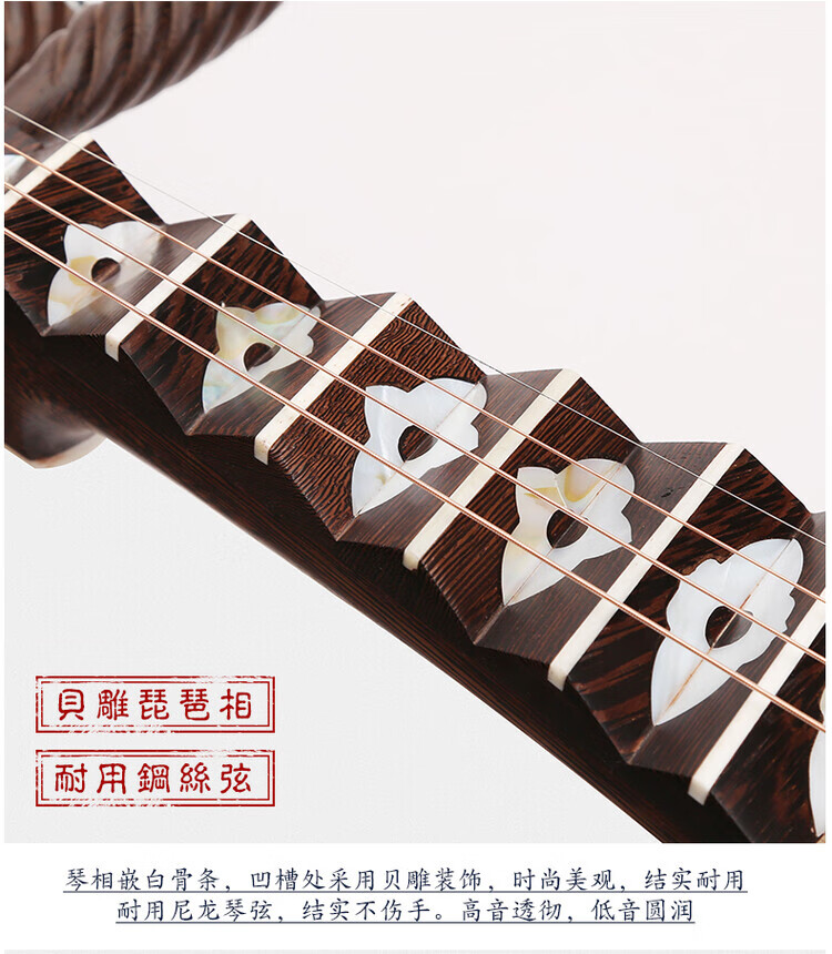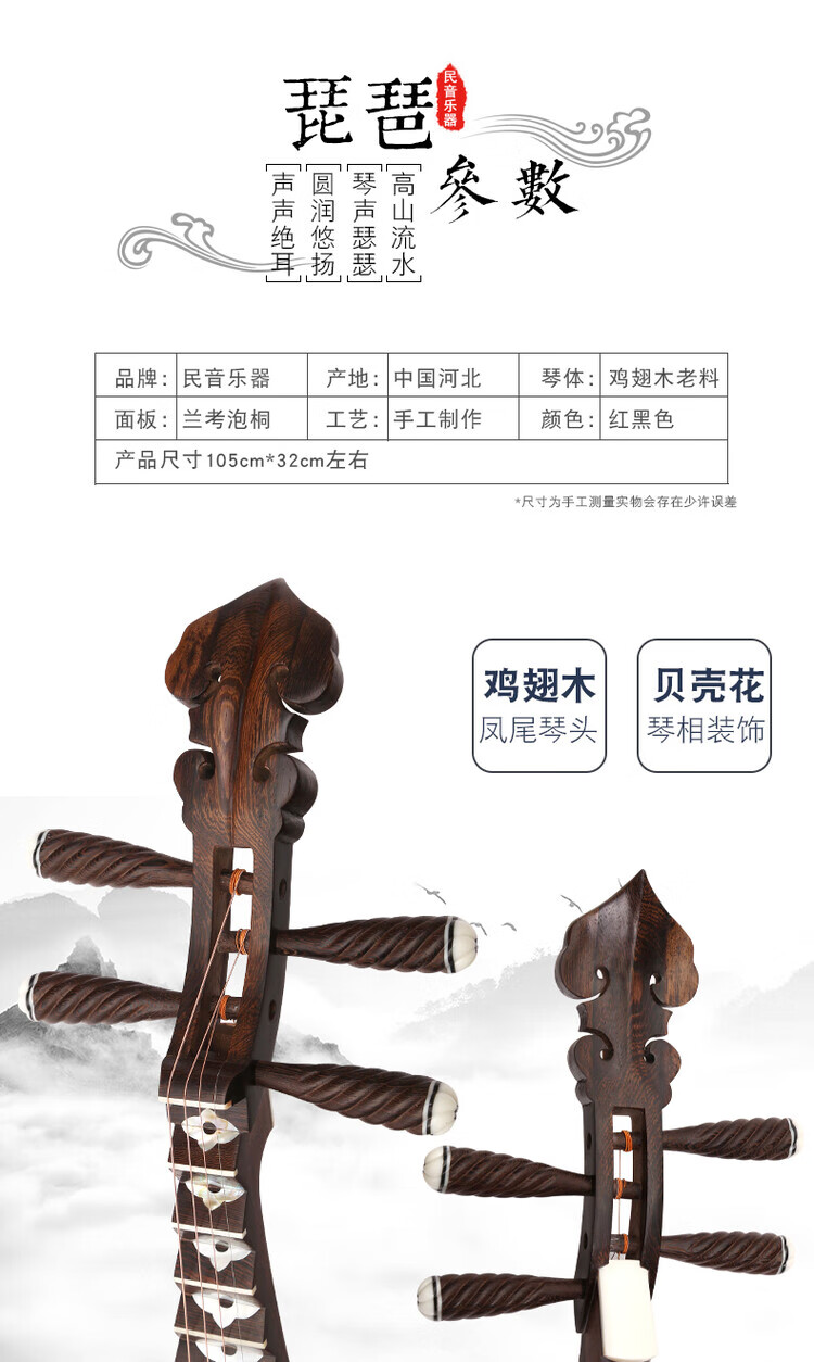 Folk Music Professional Pipa Mahogany Chicken Wing Wood Rosewood Pipa Instrument Beginner Introductory Teaching Adult Pipa Instrument Adult African Rosewood (Performance Level)