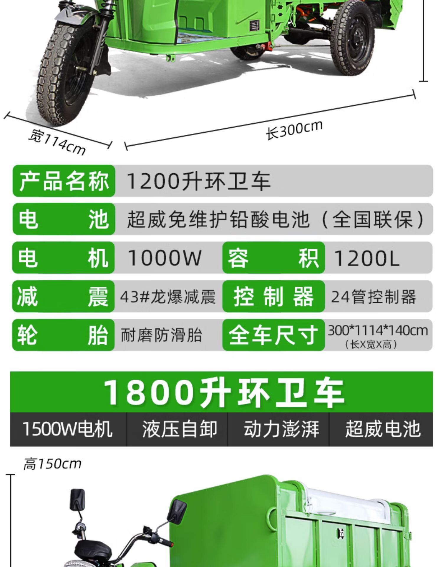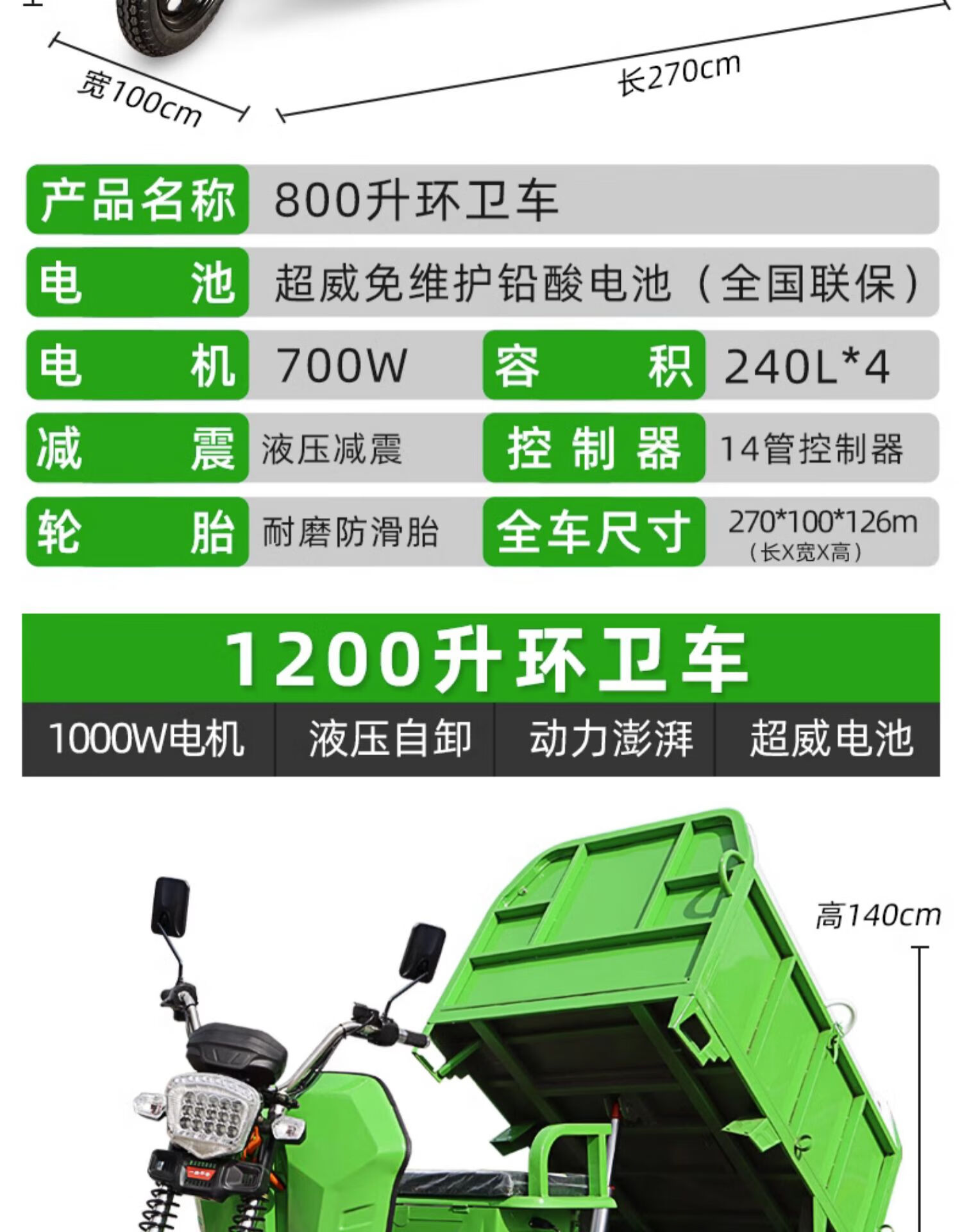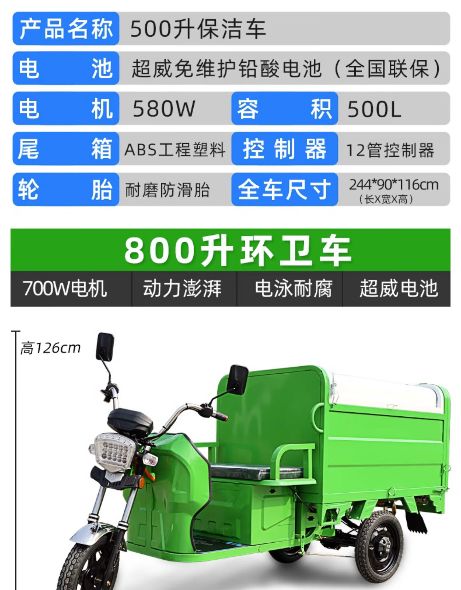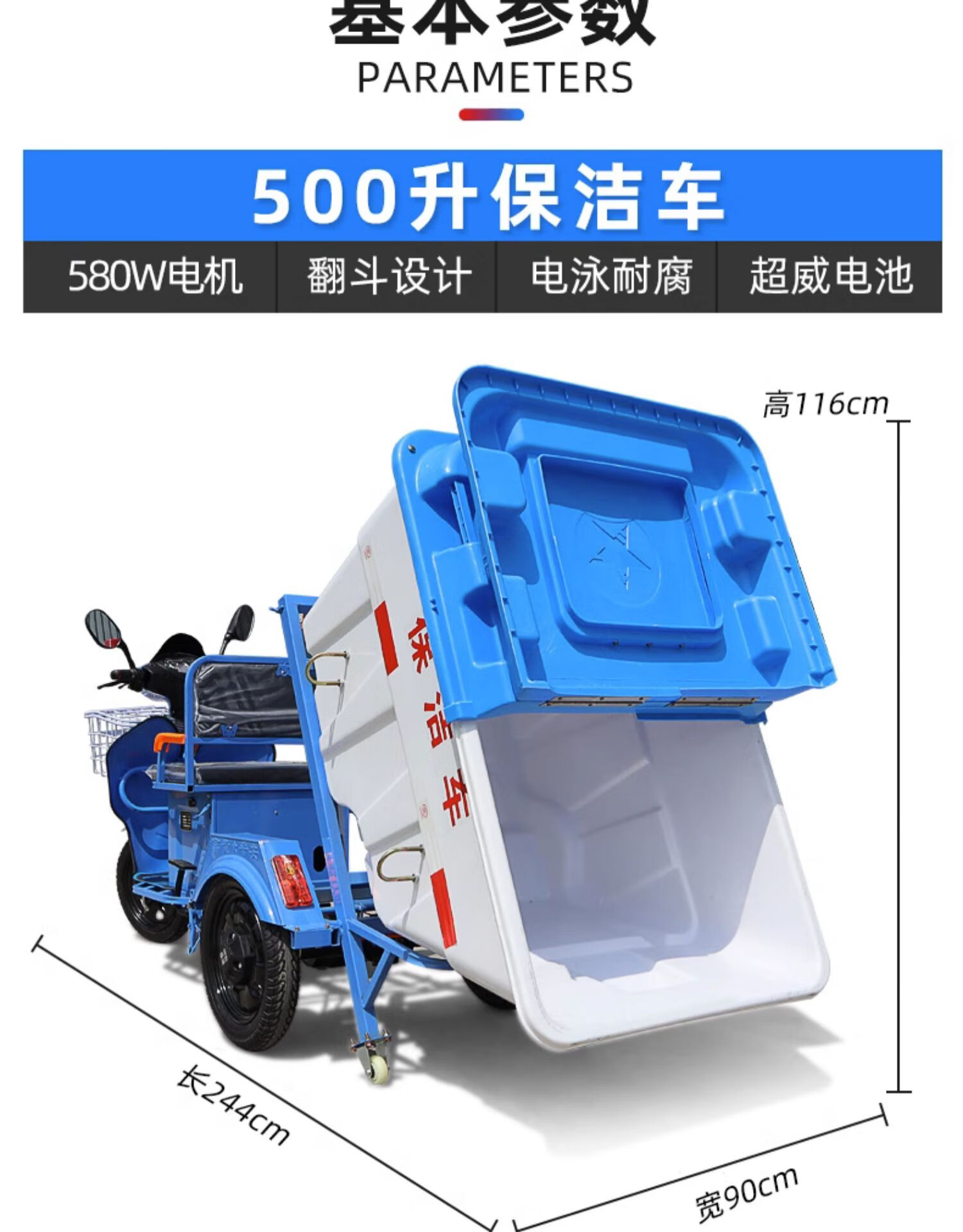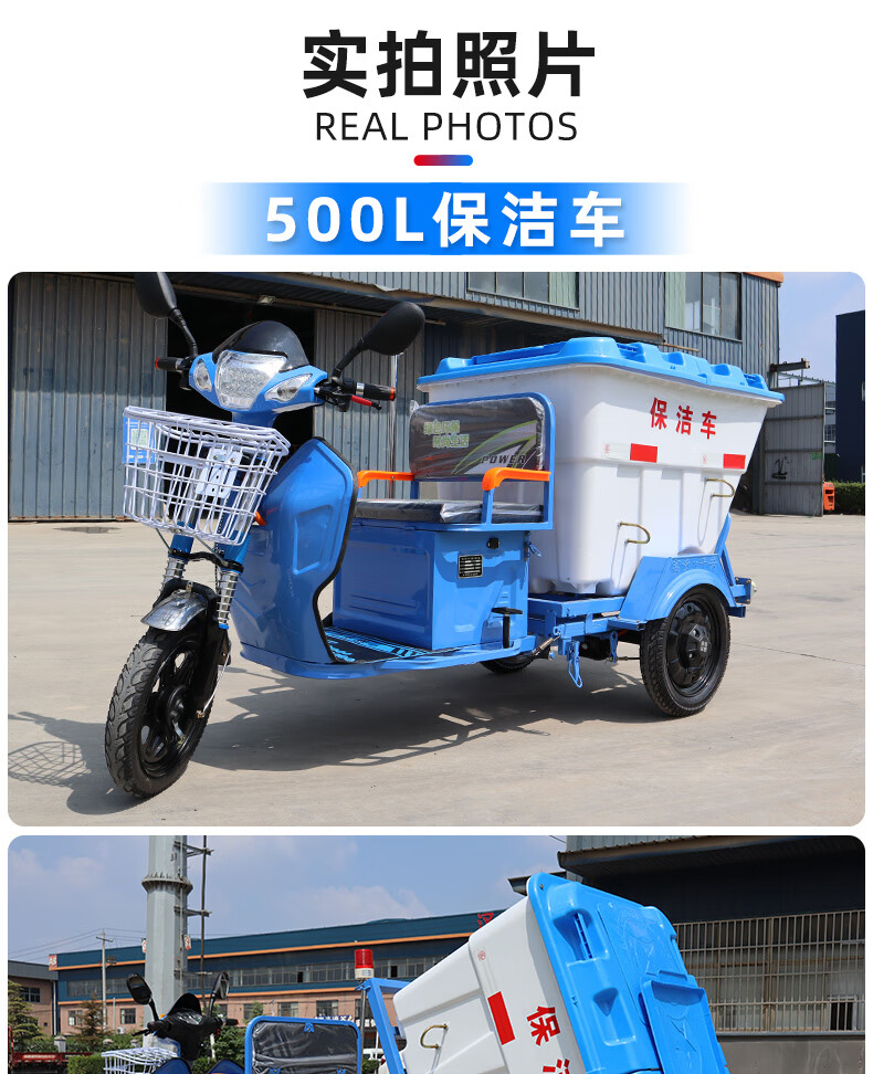Electric garbage truck collection truck sanitation truck cleaning tricycle property road worker cleaning transfer small community 500L cleaning truck-bare vehicle does not include battery transportation
