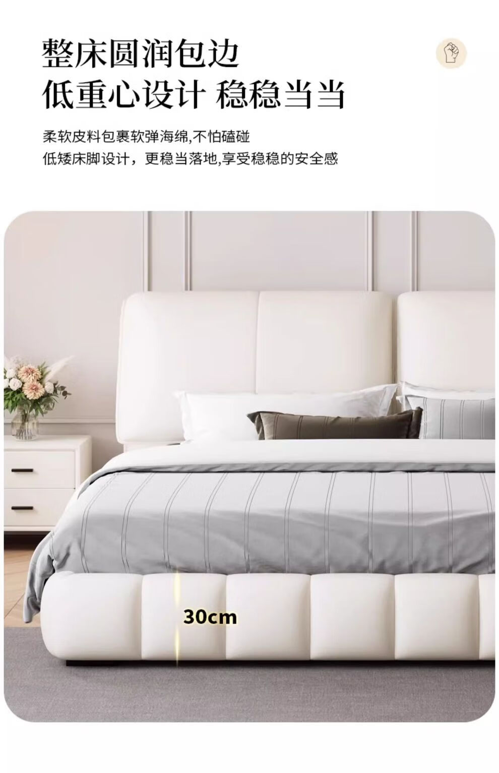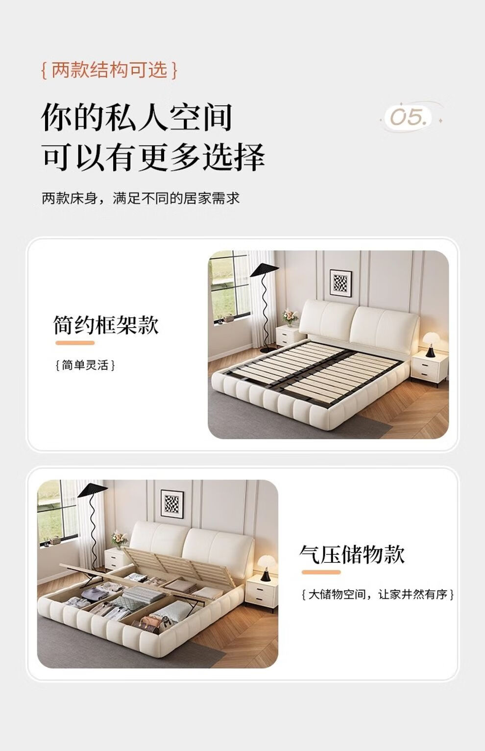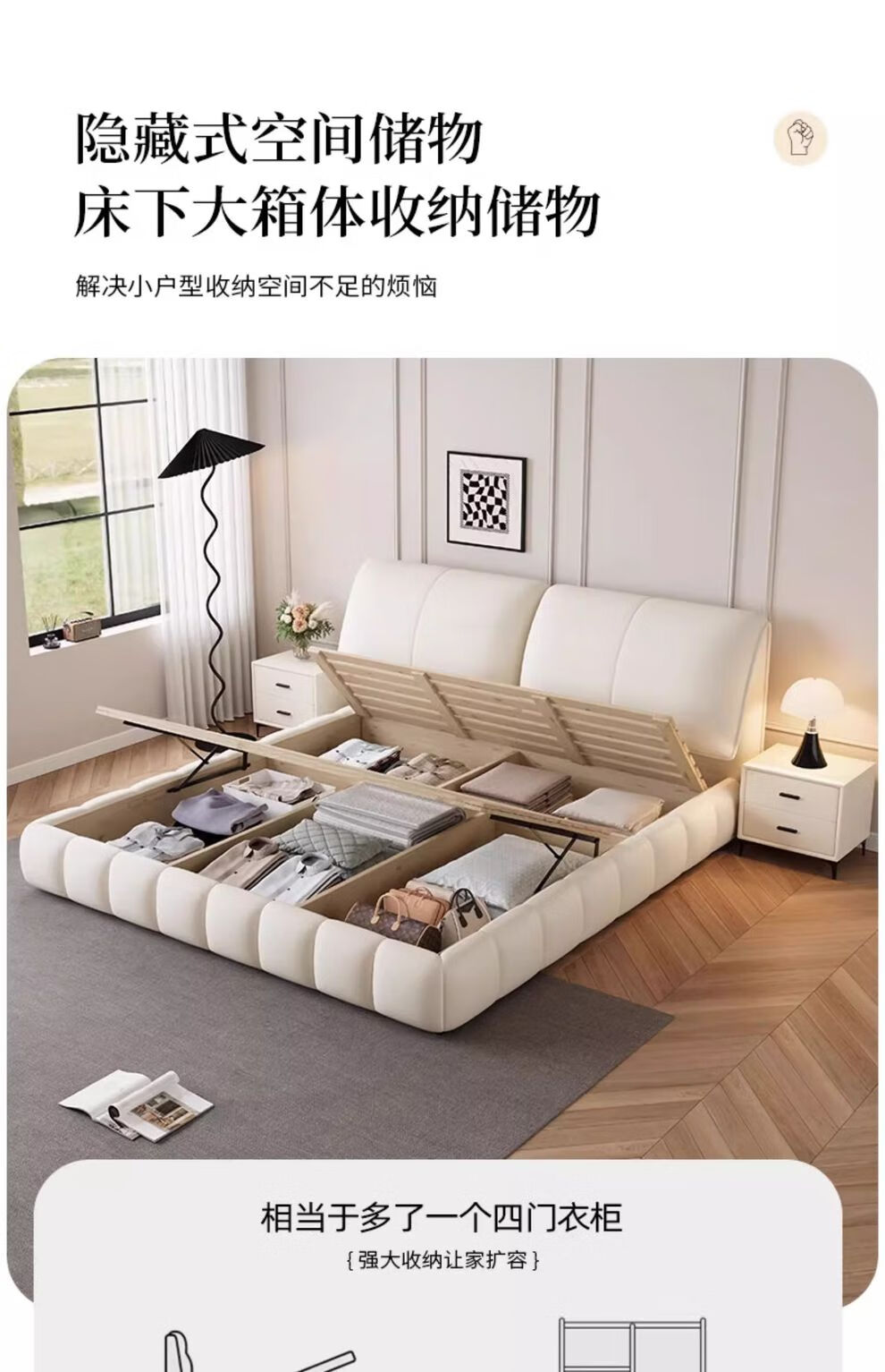 XIYUNMEN government subsidizes cream-style first-layer cowhide leather bed elephant ear master bedroom double bed minimalist storage bed wedding bed bed + moderately hard and soft natural latex mattress 1.8*2 meter frame bed/10cm steel wood lattice frame