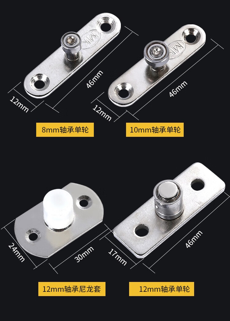 XMSJ furniture sliding door floor pulley wooden door positioning wheel sliding door swing limiter lower wheel kitchen hanging door floor guide wheel silver 10MM bearing single wheel
