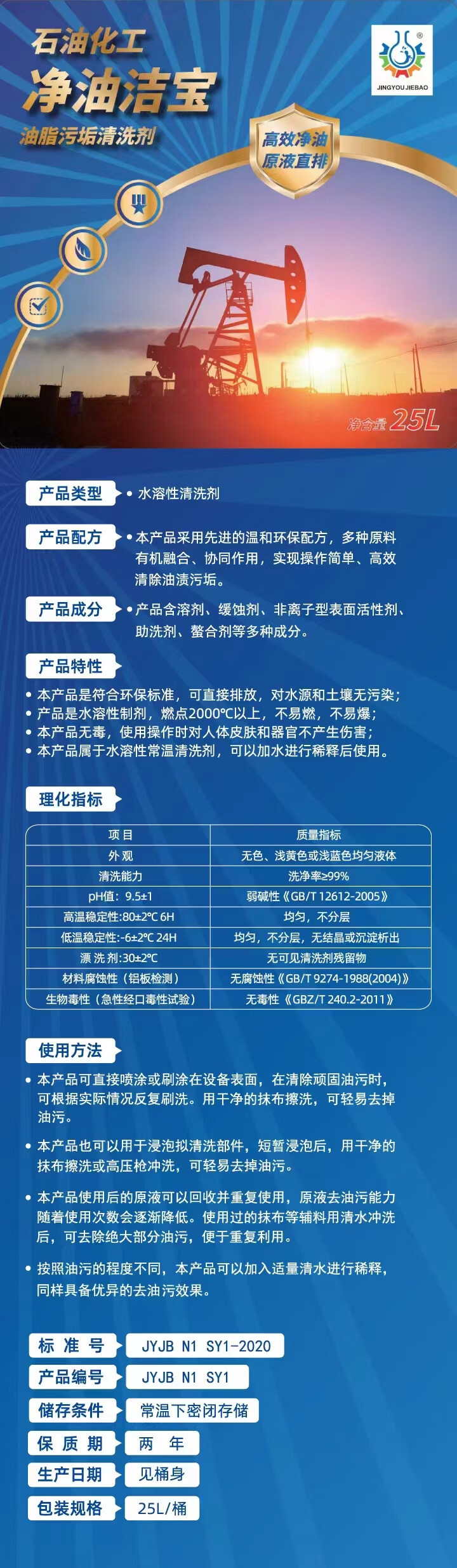 Pure oil Jiebao pure oil No. 1 heavy grease and oil special cleaning agent petrochemical special cleaning agent 25L