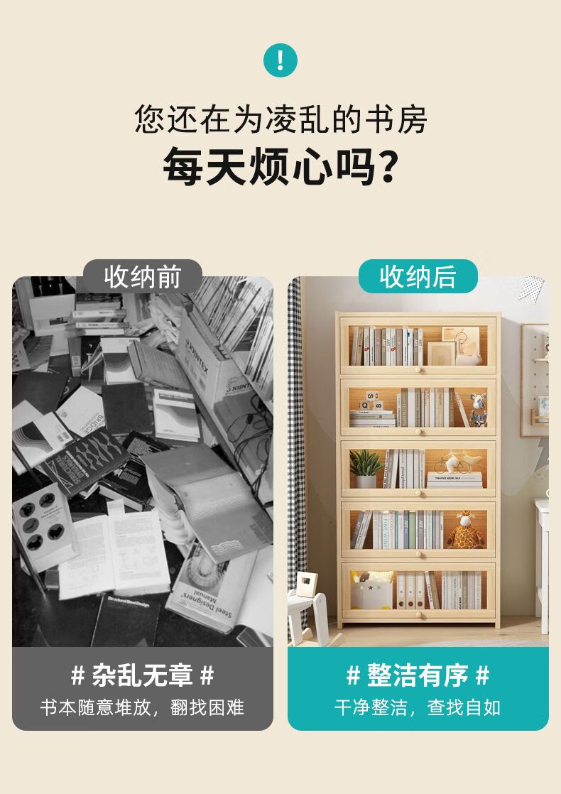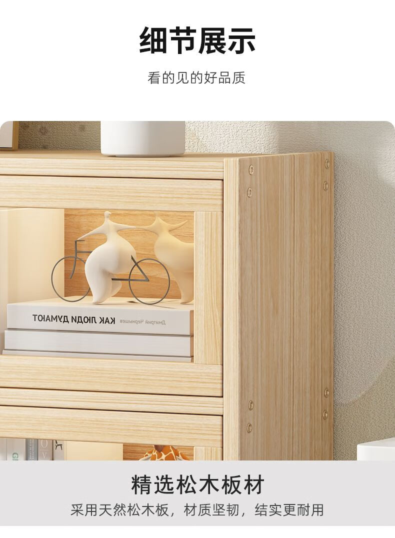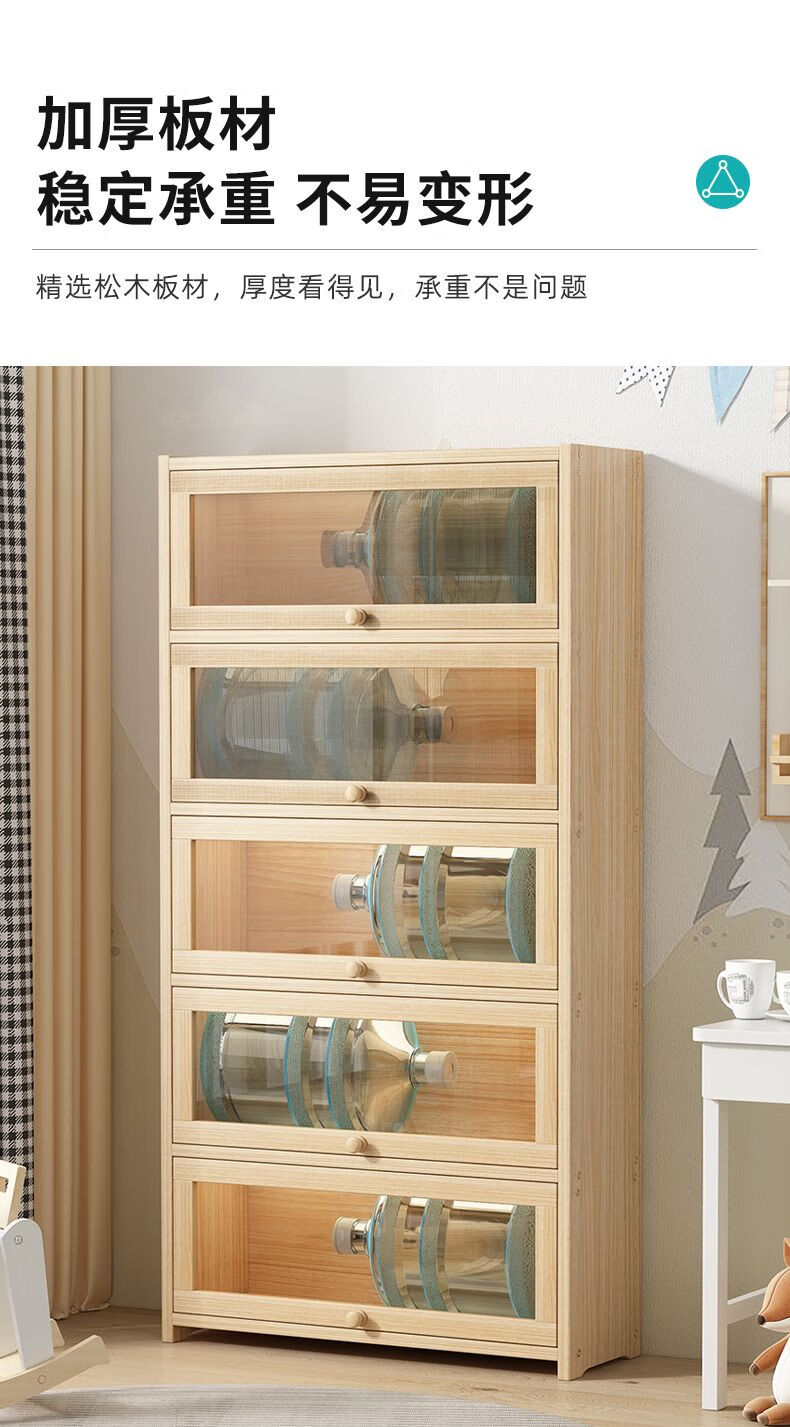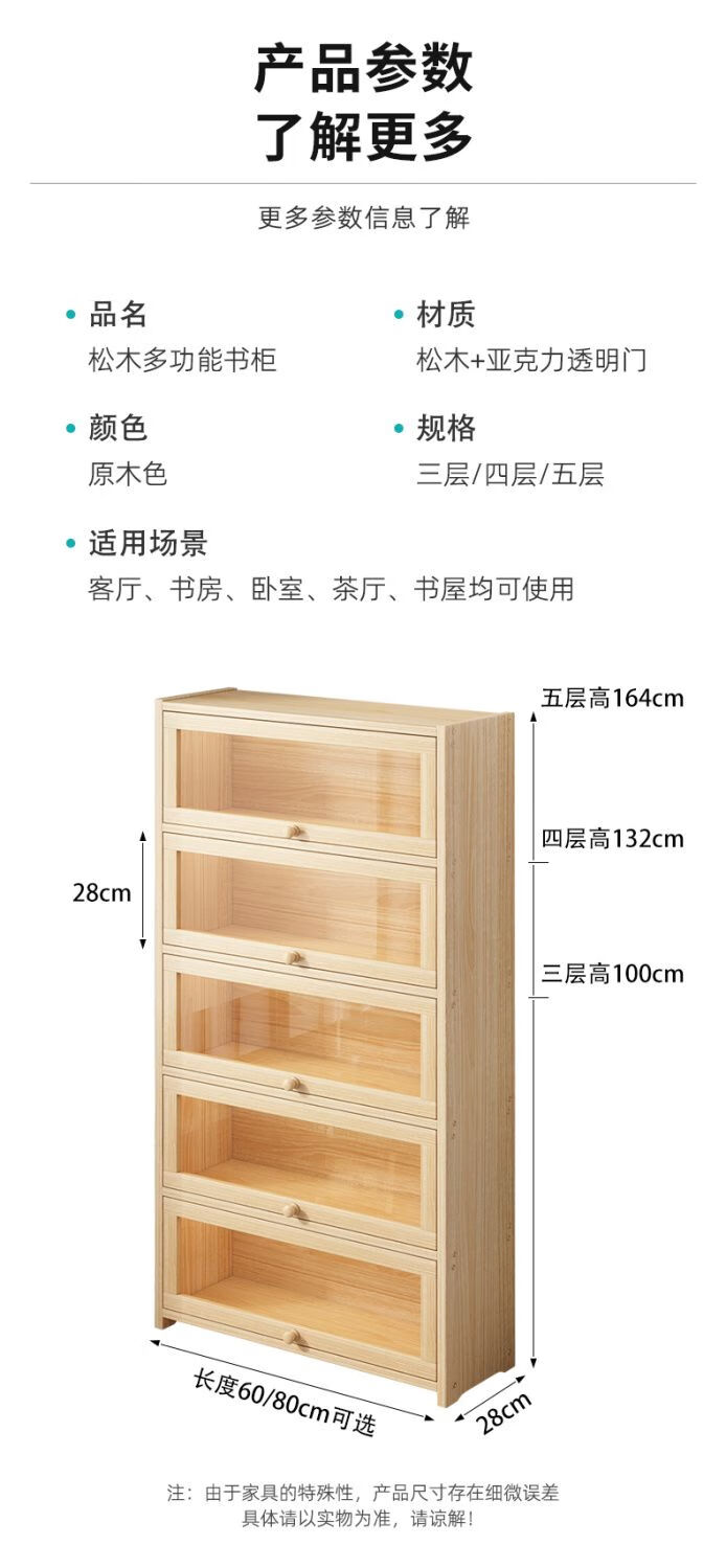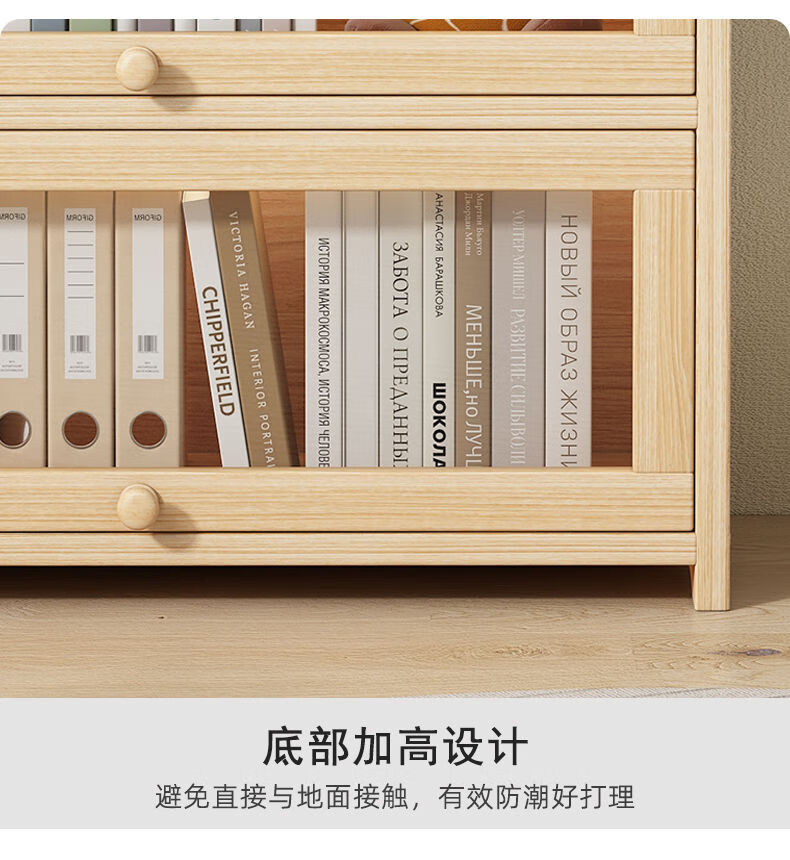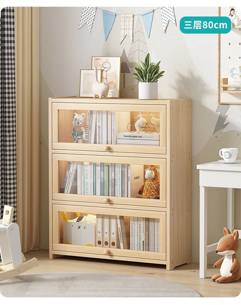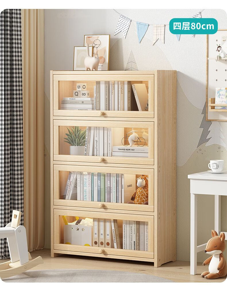 Moridi pine bookcase with flip-up transparent door student book storage cabinet multi-layer floor-to-ceiling solid wood bookshelf toy storage cabinet unpainted pine healthy solid wood bookcase five-layer 80 long flip door design