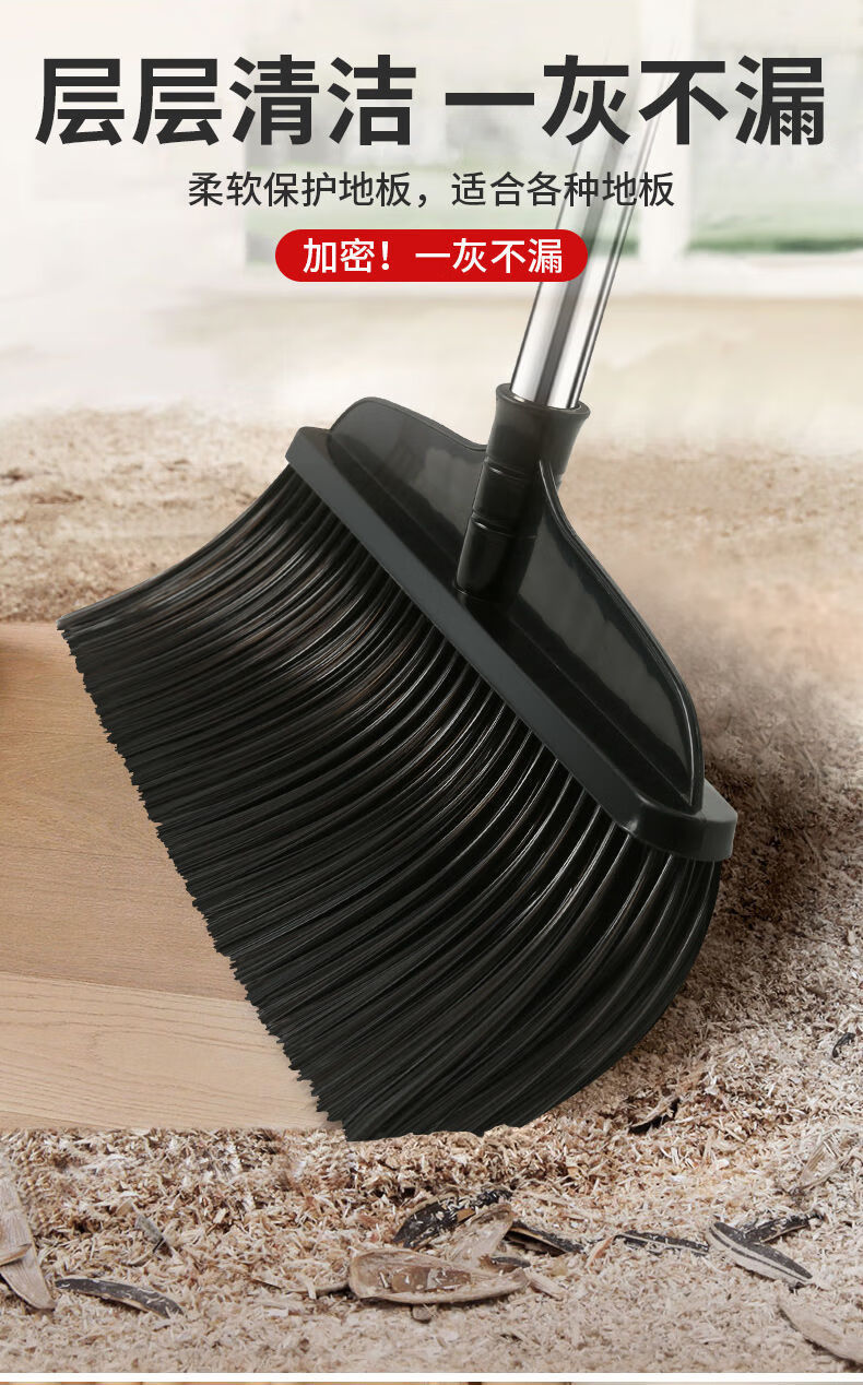 Outdoor thickened large broom with few hard bristles single road factory broom lengthened broom black 2 stainless steel poles with a total length of 1.1 meters