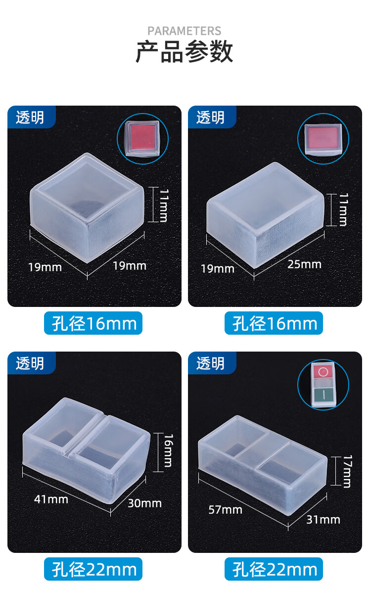 Round silicone sleeve 16/22/30mm button waterproof cap dustproof switch protective cover transparent white sealing leather ring silicone sleeve round 22MM 1 piece