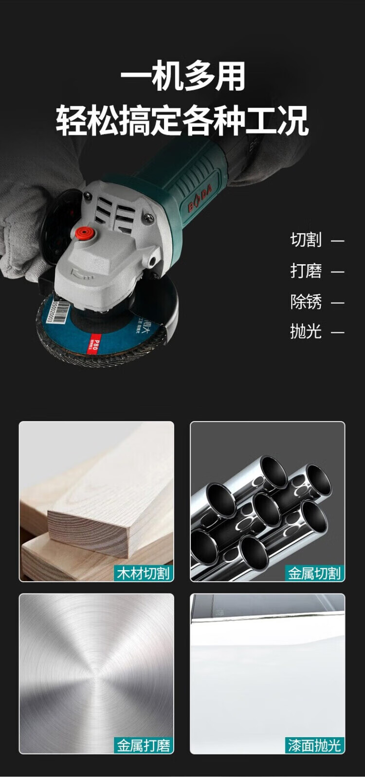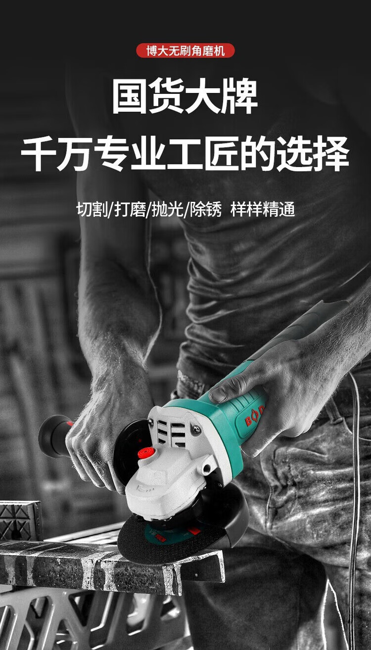 Boda Boda brushless angle grinder multifunctional grinder grinder hand grinder polisher hand grinding wheel professional cutting machine BLG9-100 all copper brushless side switch bare metal