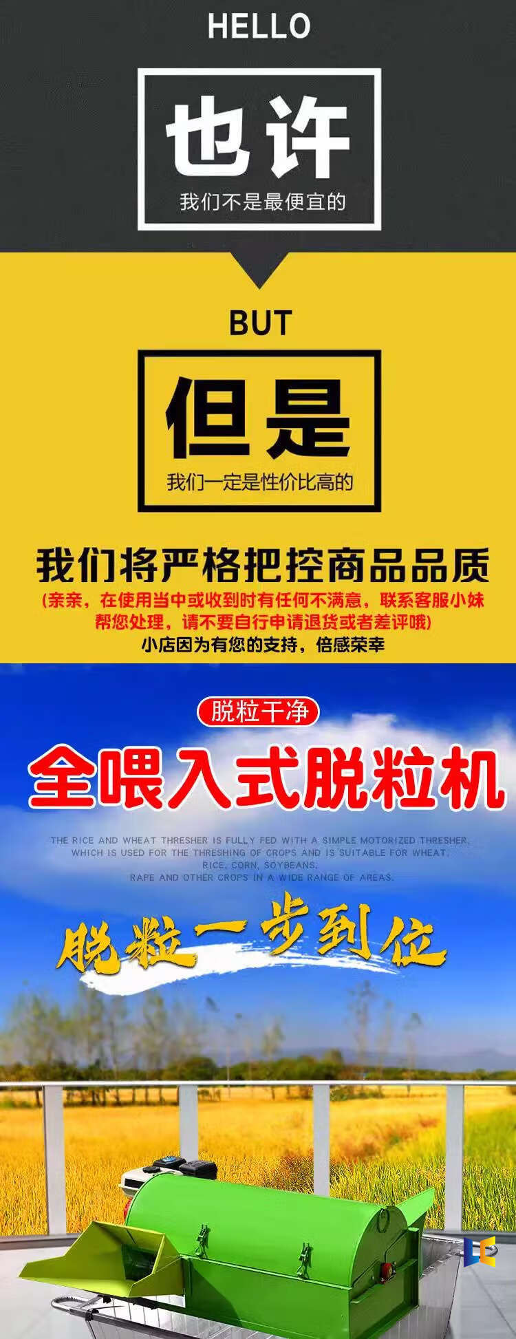 Huili's rice and wheat threshing machine, small threshing machine, agricultural full-feed rice threshing machine, wheat threshing machine - suitable for rice, wheat and other crops