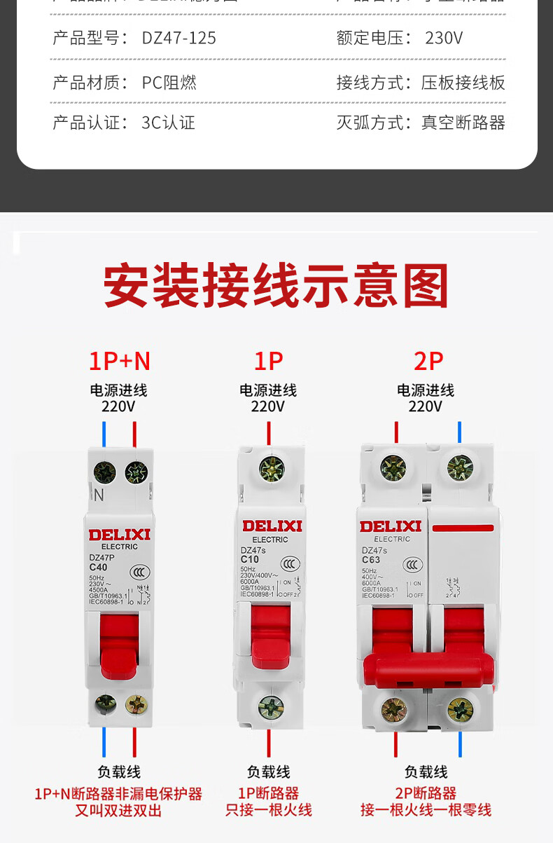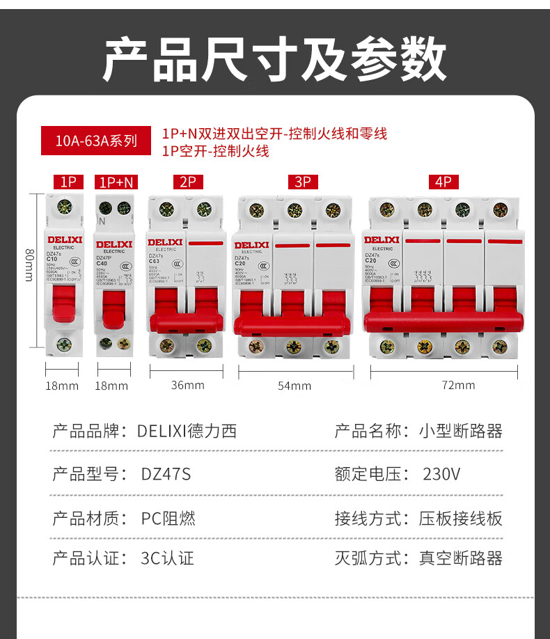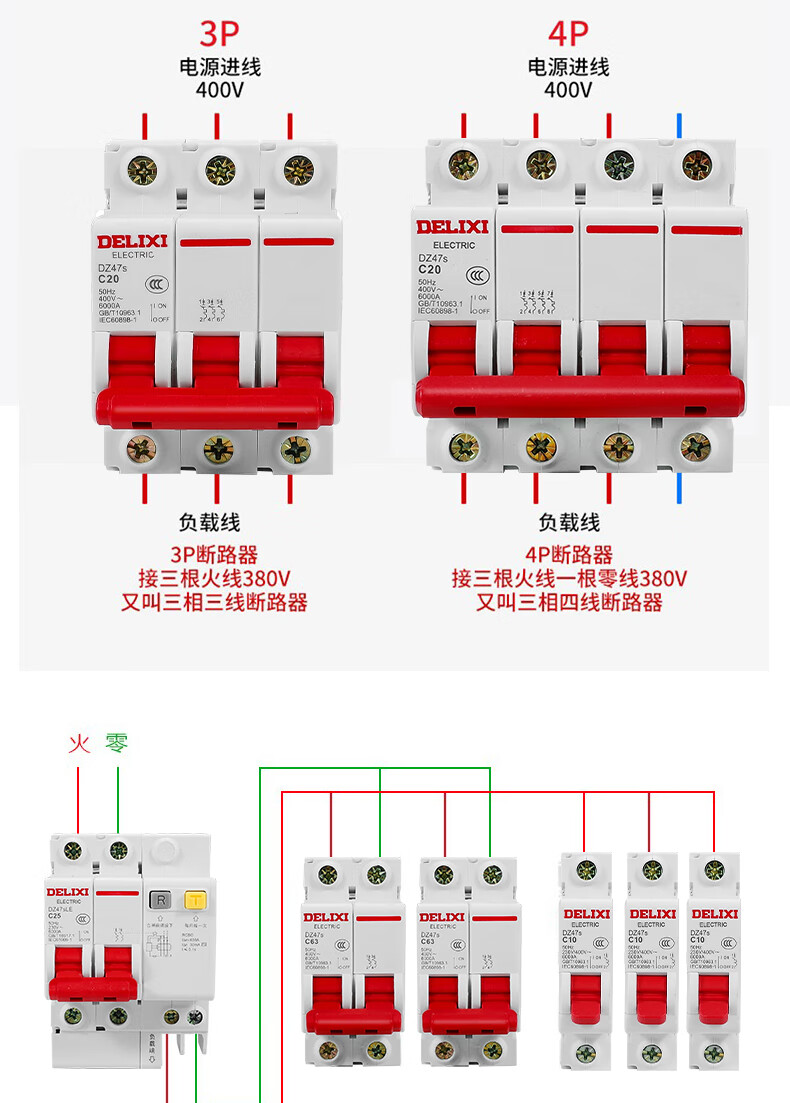 Delixi DZ47 air switch 4p63a three-phase DZ47 power outage 32a switch 1P small 2 air switch 3 16A 16A 4P