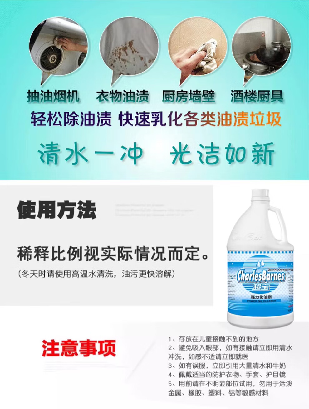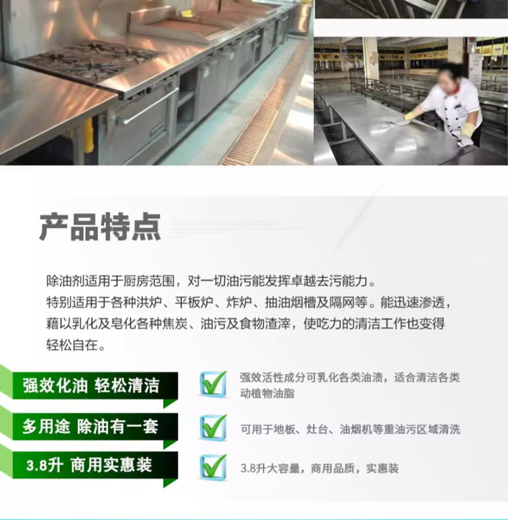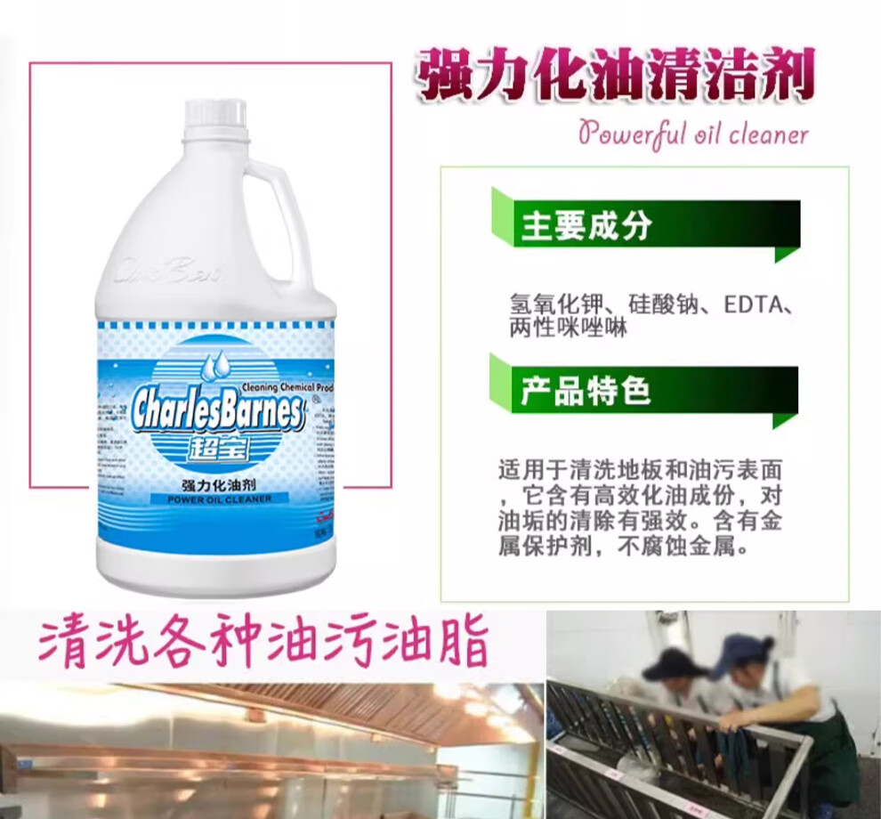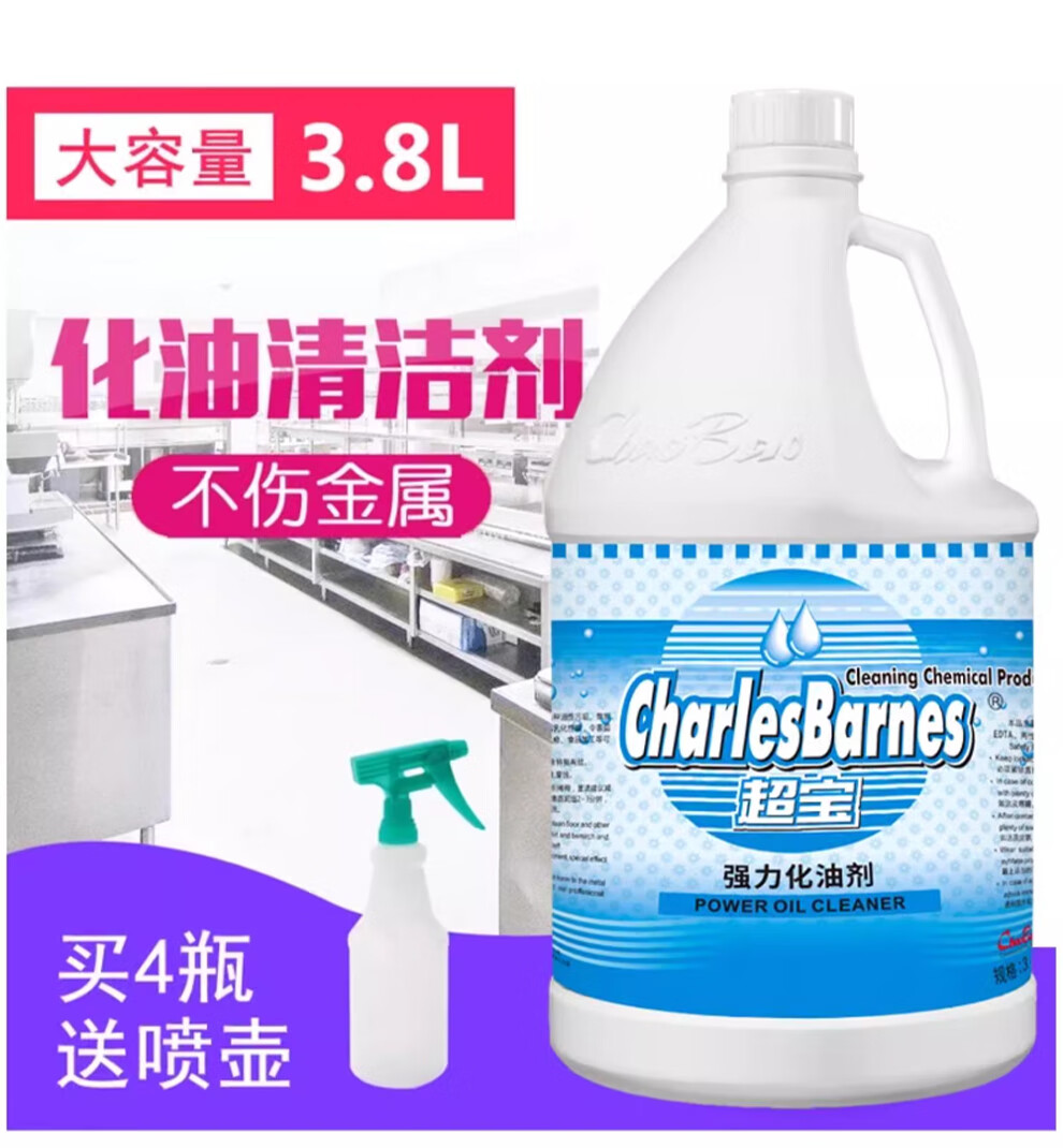 Baiyun Chaobao Cleaning and Degreasing Agent, Strong Oil Removal Agent 3.8 liters, Kitchen Degreasing Net Heavy Oil, Restaurant Floor Range Hood Cleaning Agent, Chao Bao Strong Oil Cleaning Agent/Box of 4 Bottles (Send Tools)