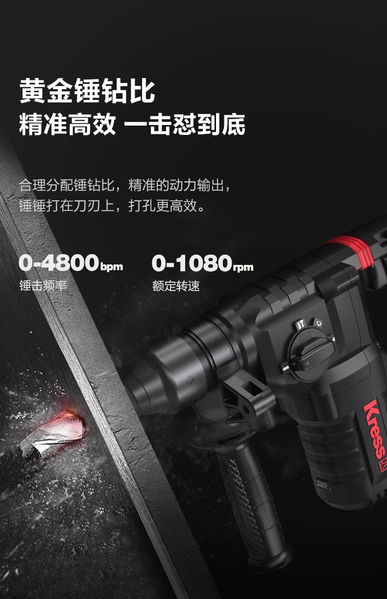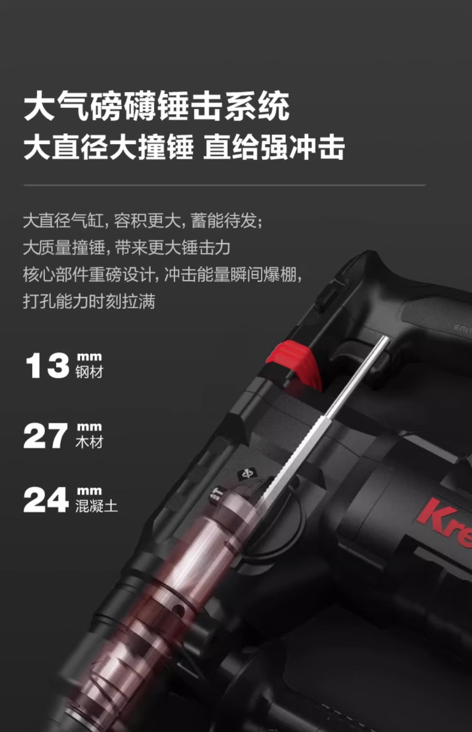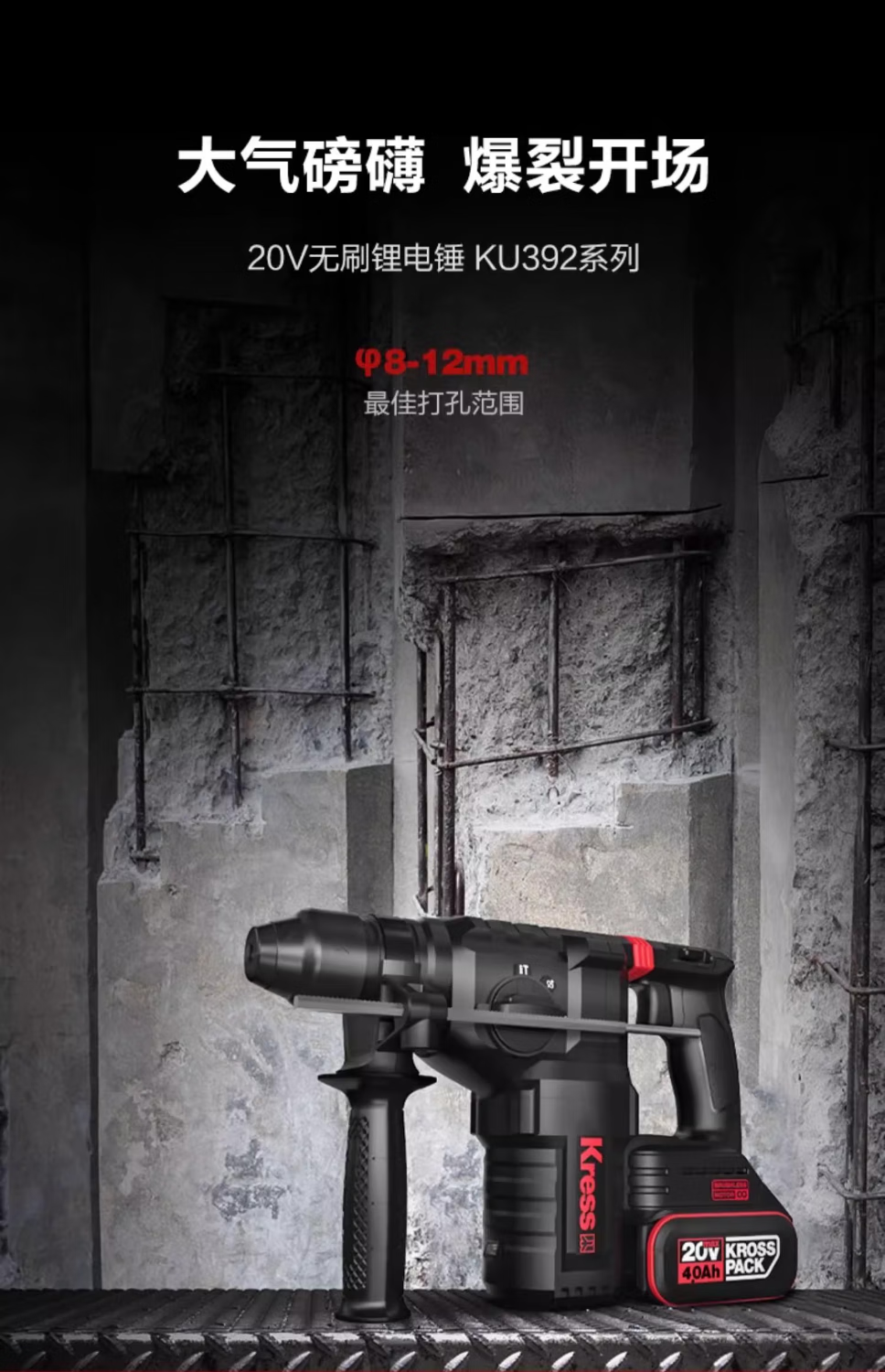 Kasheng German Kasheng brushless KU392 rechargeable lithium battery electric hammer pick dual-purpose concrete high-power wireless impact drill KU392 bare metal package