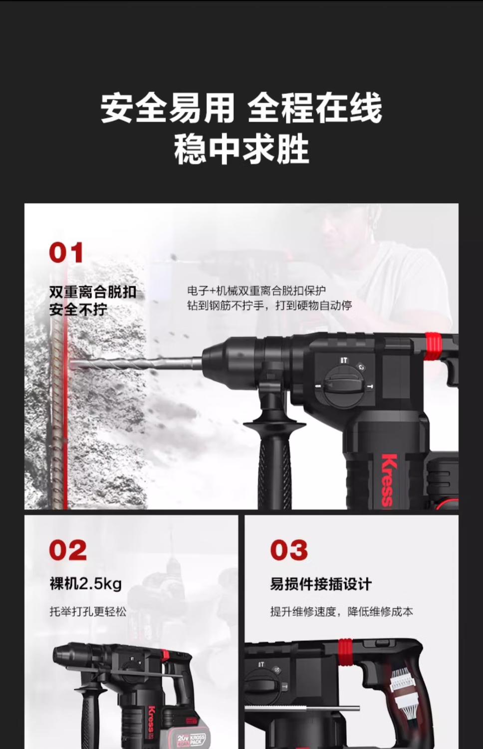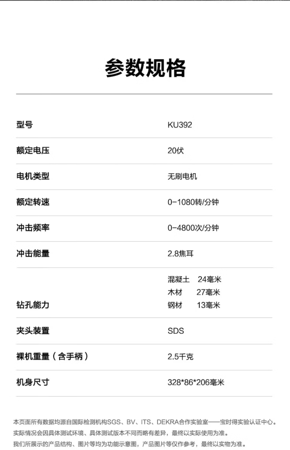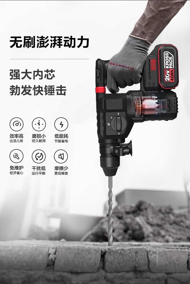 Kasheng German Kasheng brushless KU392 rechargeable lithium battery electric hammer pick dual-purpose concrete high-power wireless impact drill KU392 bare metal package