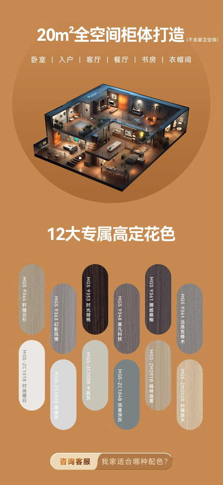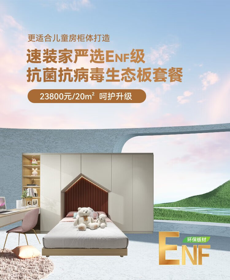Moganshan whole house custom-made 20-square-meter ENF grade antibacterial and antiviral ecological board package for bedroom and living room. Customized payment. The final quotation will be subject to the store plan.