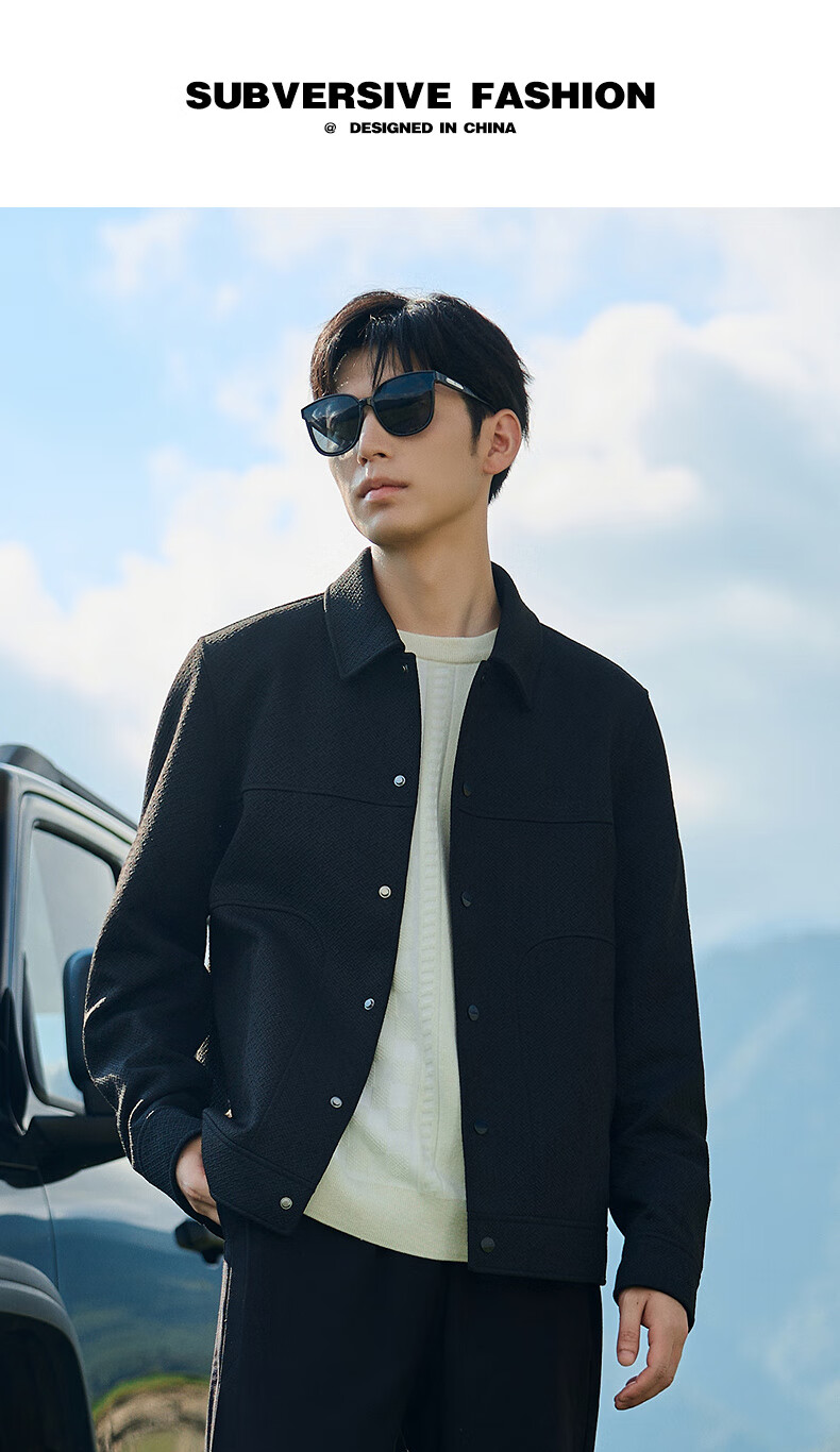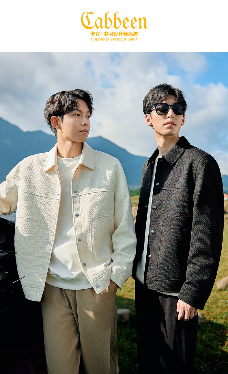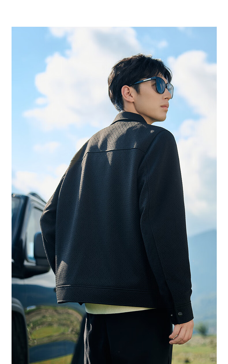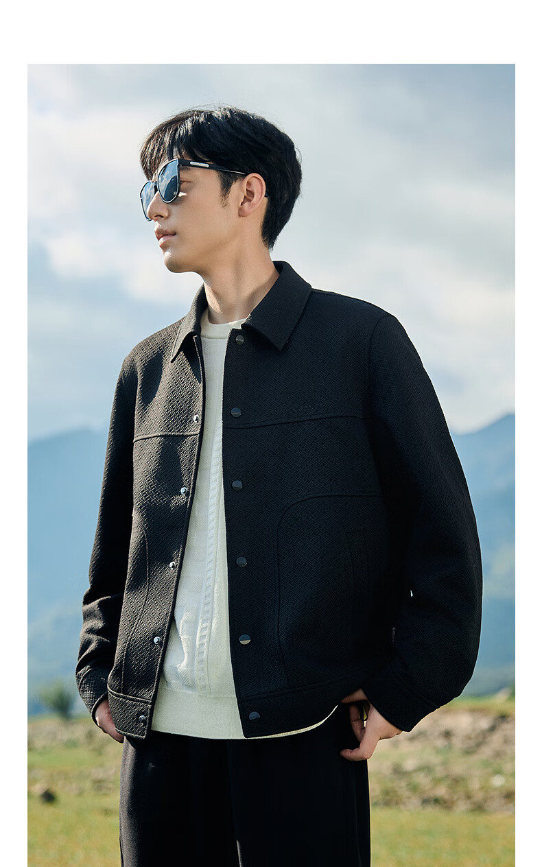 CABBEEN Cross Pattern Jacquard Cabbeen Executive Jacket Men's Autumn Shirt-Type Lapel Top Premium Shirt Jacket Anthracite 01 XL /180/52