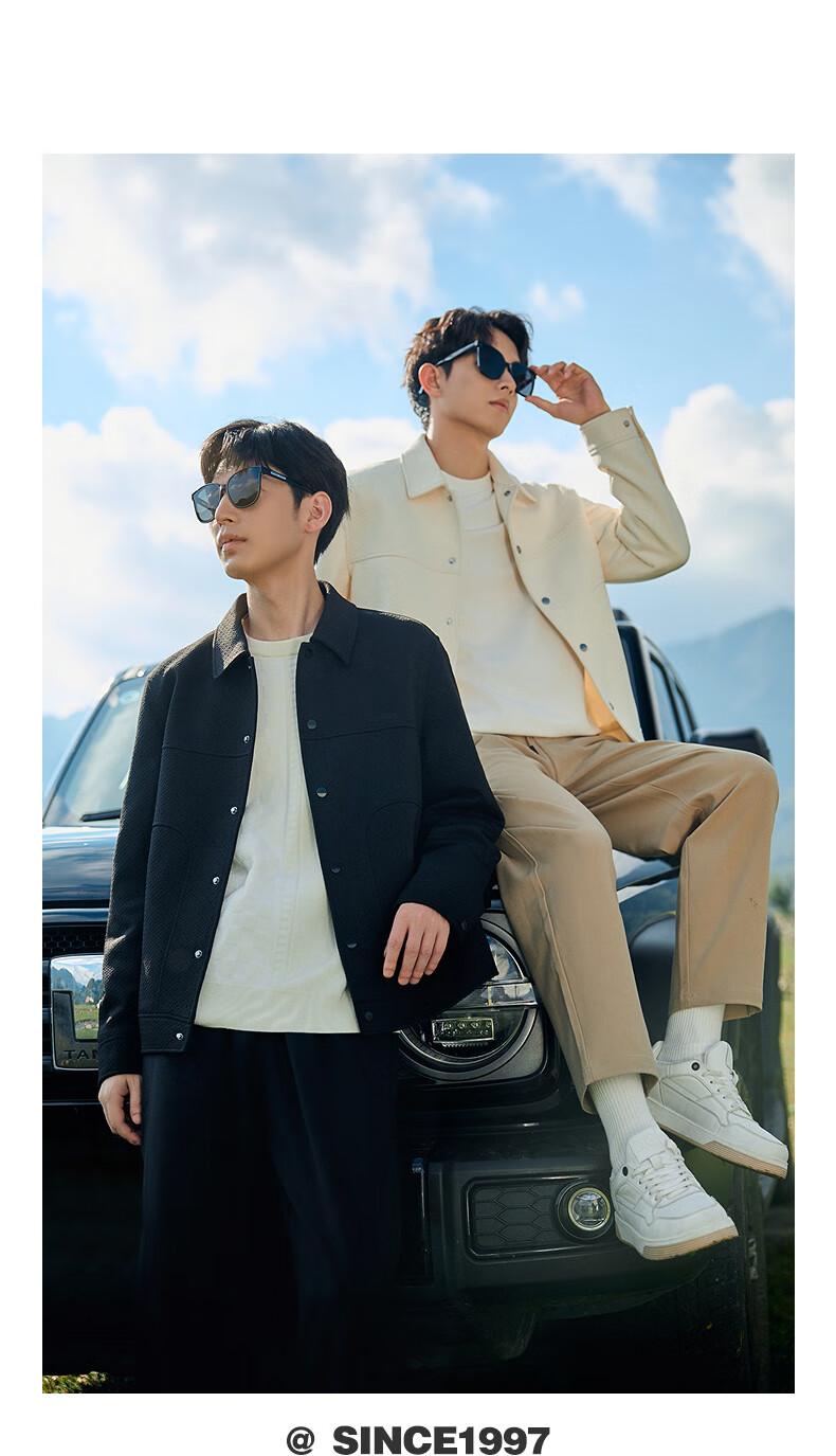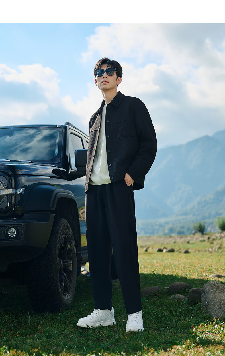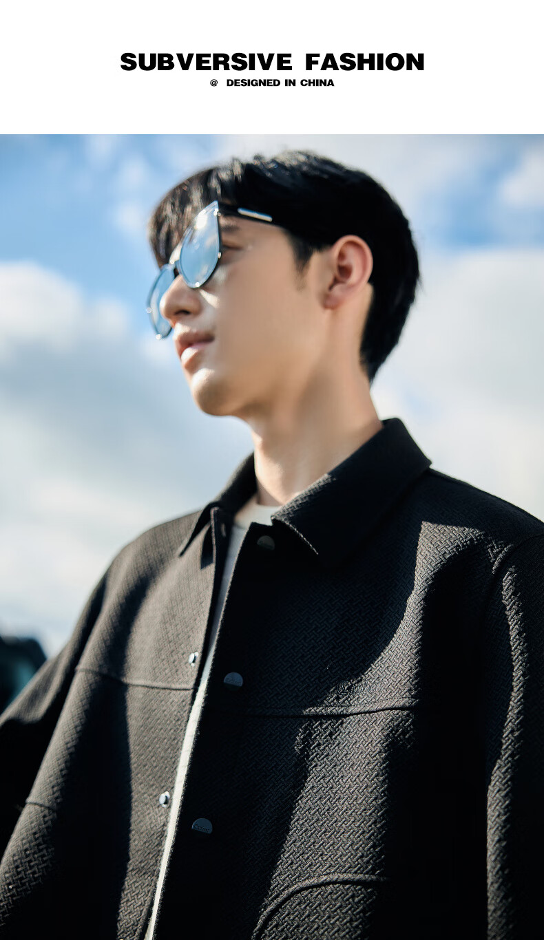CABBEEN Cross Pattern Jacquard Cabbeen Executive Jacket Men's Autumn Shirt-Type Lapel Top Premium Shirt Jacket Anthracite 01 XL /180/52