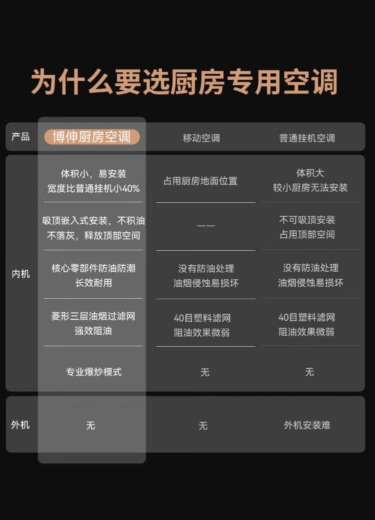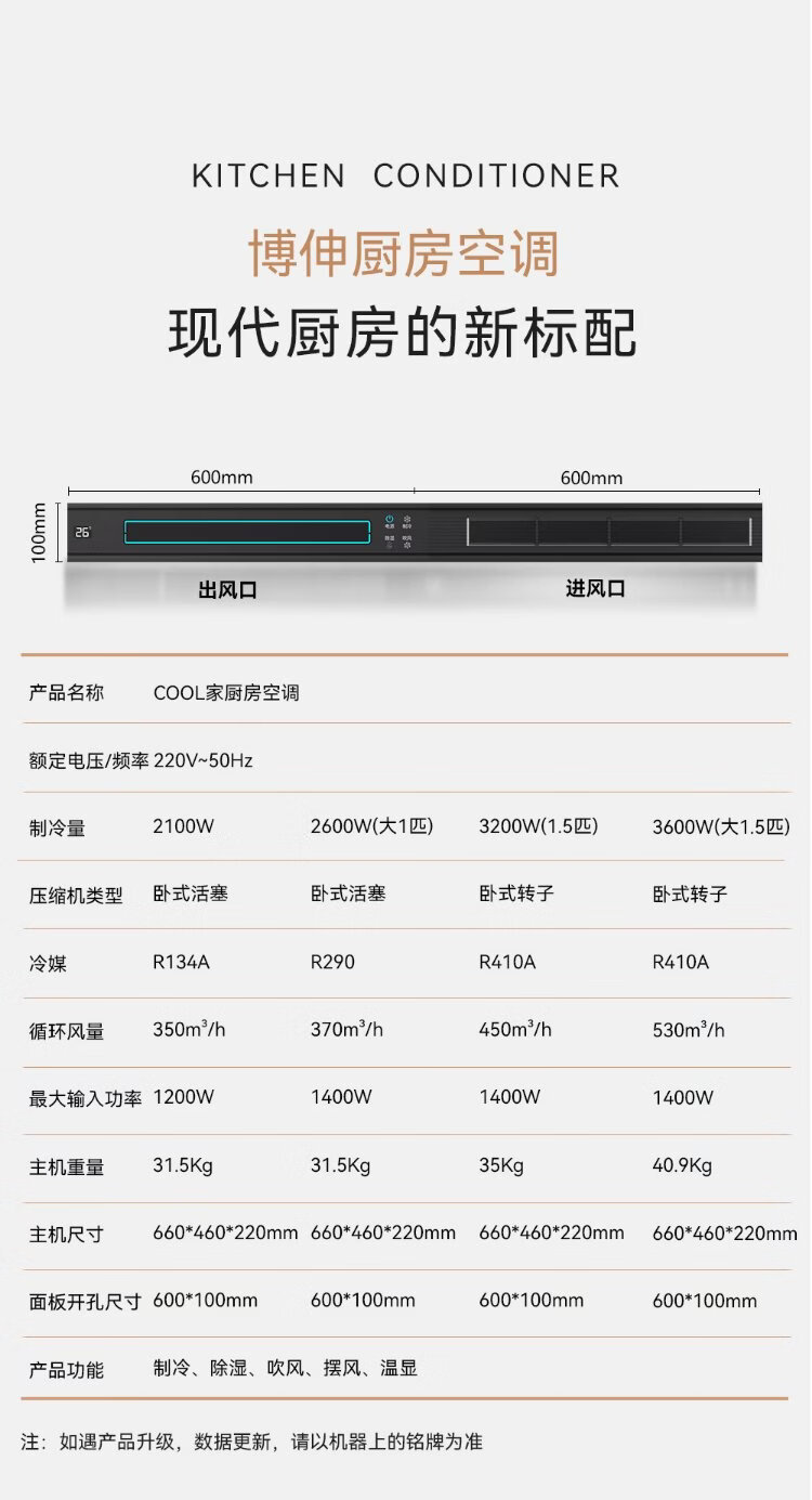 Booshen COOL home kitchen air conditioner refrigeration machine Liangba home embedded ceiling embedded integrated outdoor unit kitchen air conditioner needs to drill 2 holes 2100W cooling capacity suitable for 5 double outlets