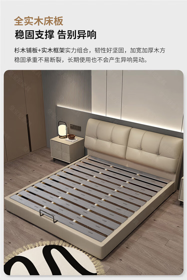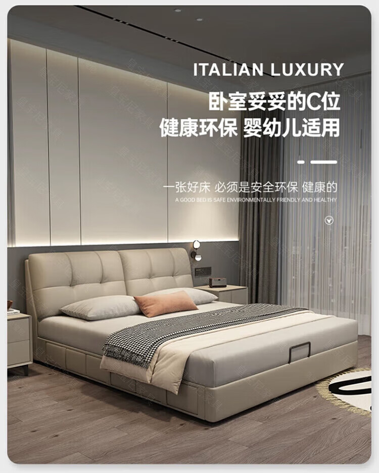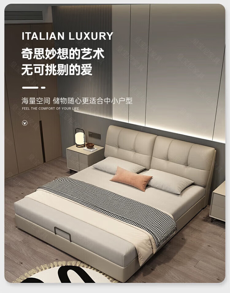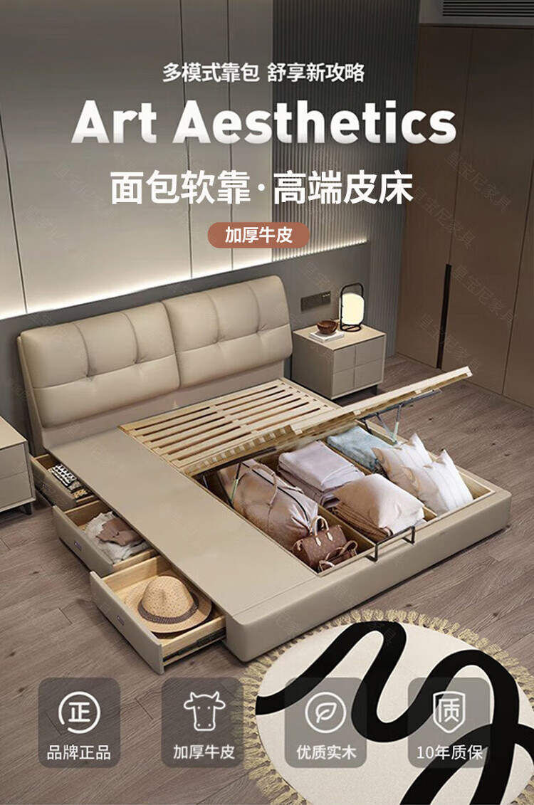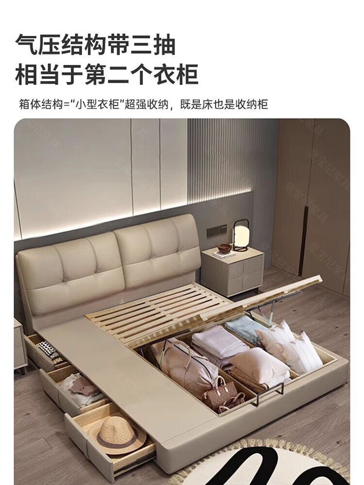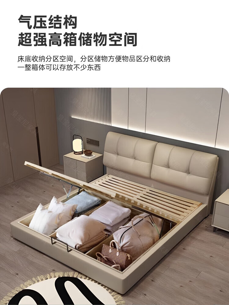 Huangbaoni Guangdong Foshan Italian-style first-layer cowhide bed modern simple master bedroom large bed storage bed 1.8 meters double 2-meter wedding bed first-layer cowhide bed Inquiry to enjoy Double 11 discount 1.8*2 meters frame bed/15cm solid wood bed board