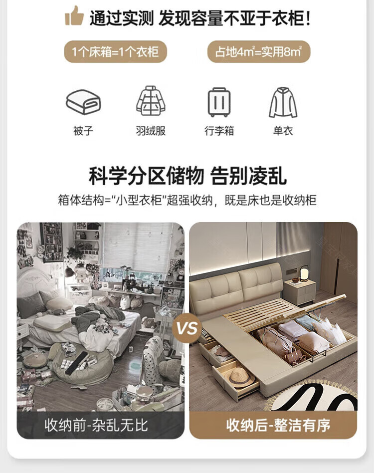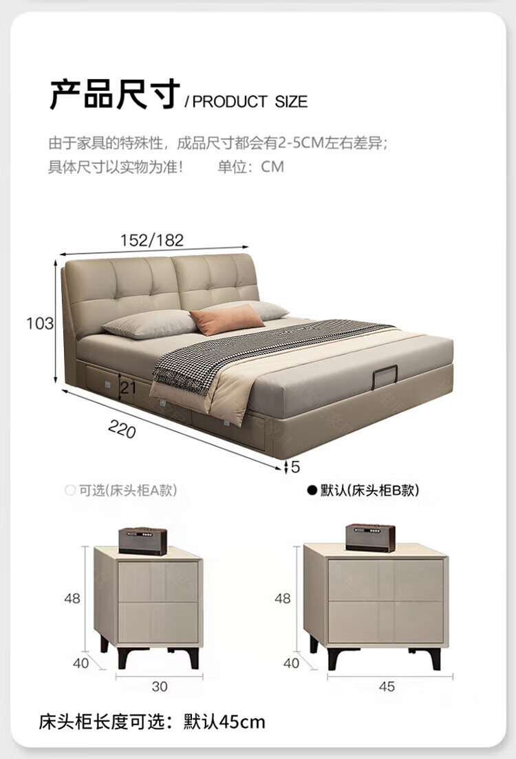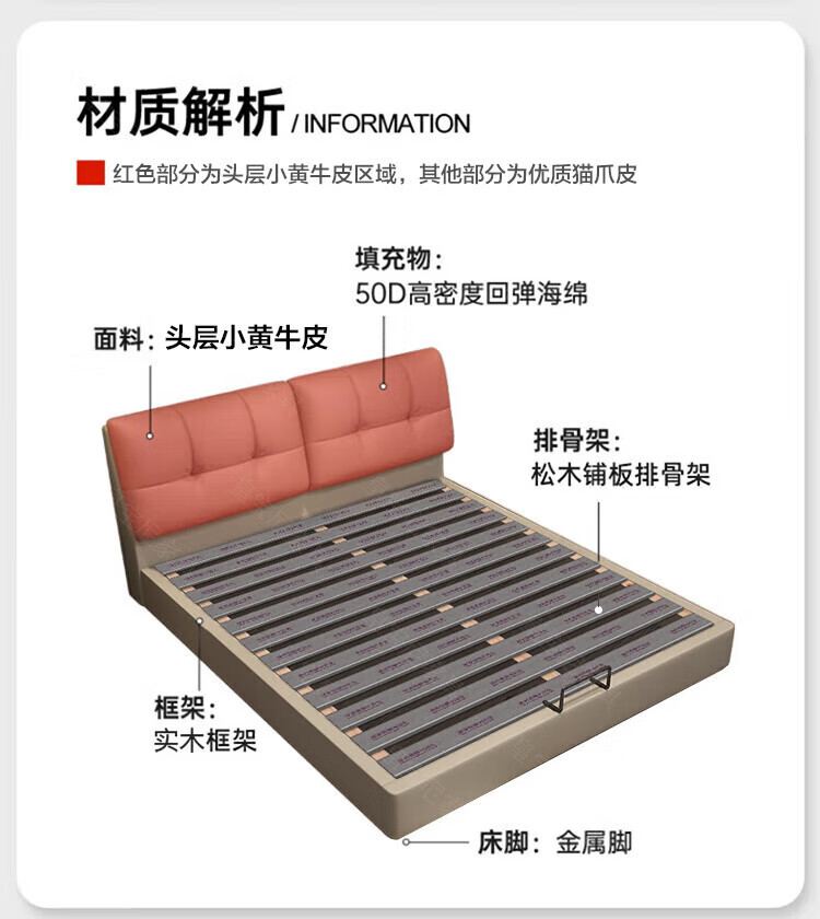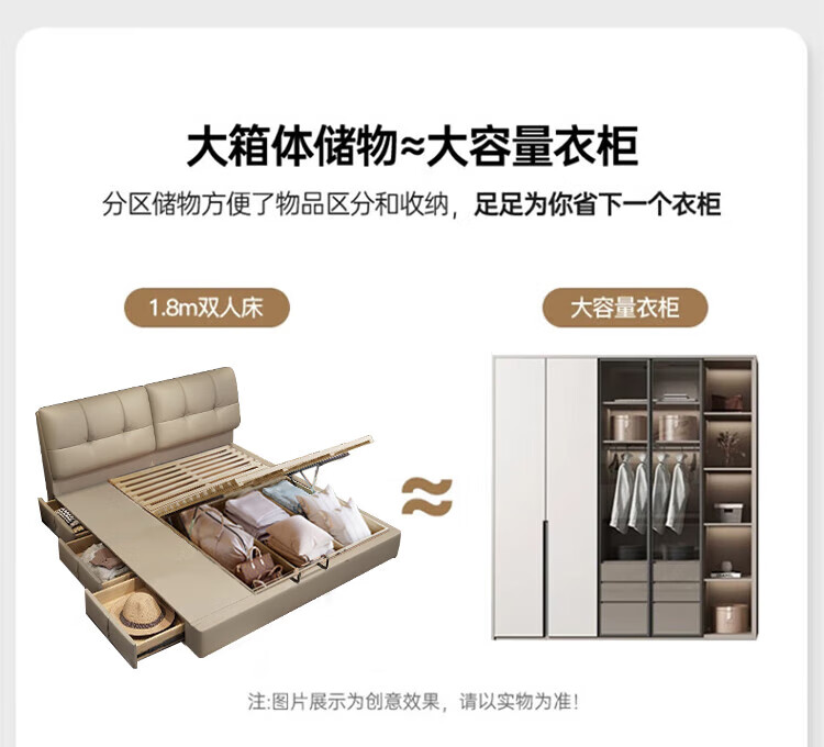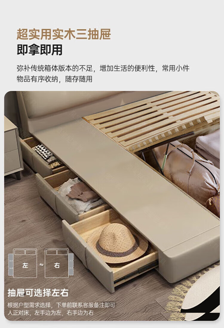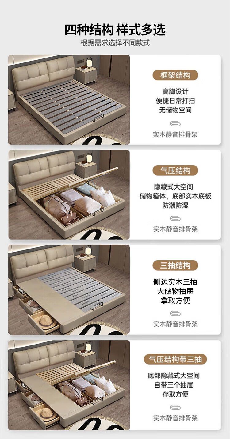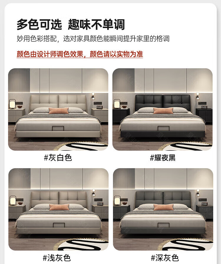 Huangbaoni Guangdong Foshan Italian-style first-layer cowhide bed modern simple master bedroom large bed storage bed 1.8 meters double 2-meter wedding bed first-layer cowhide bed Inquiry to enjoy Double 11 discount 1.8*2 meters frame bed/15cm solid wood bed board