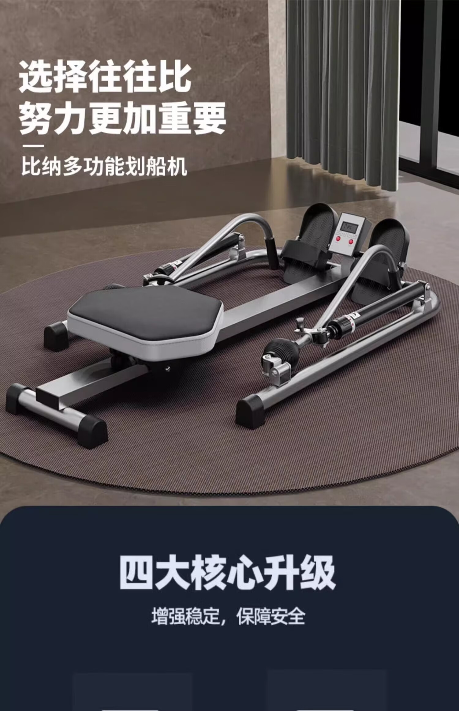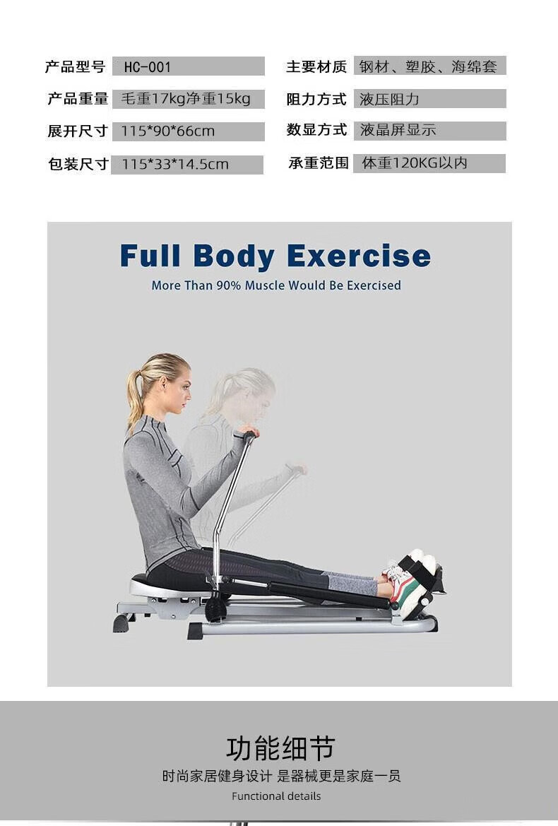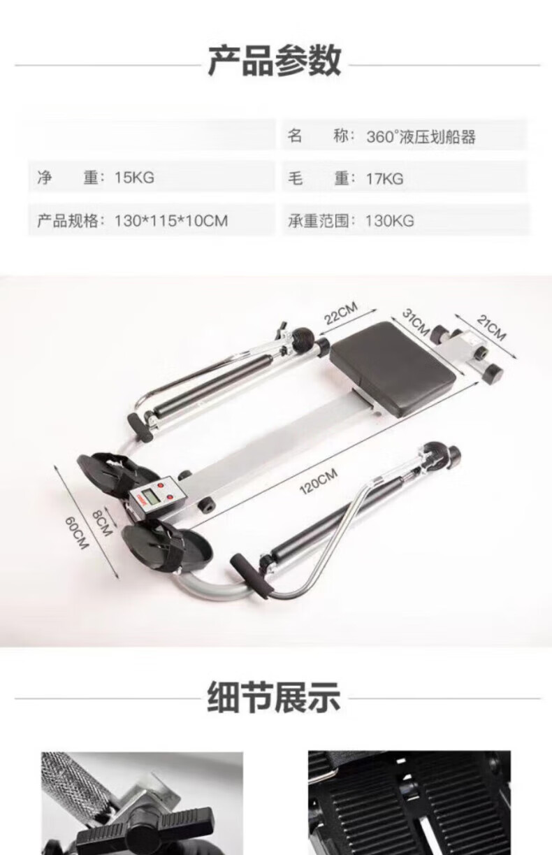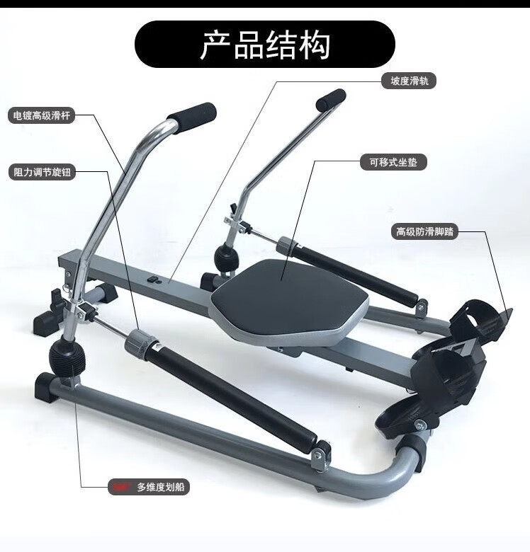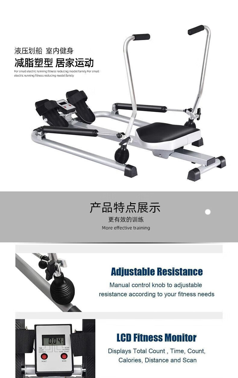 Luo Zhuodou rowing machine household foldable silent indoor water resistance hydraulic rowing machine suspended rowing machine fitness equipment black single paddle foldable height adjustable