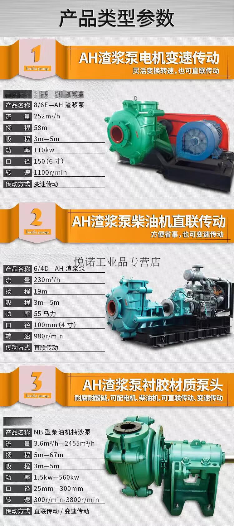 Horizontal slurry pump AH150-80 wear-resistant sand pumping coal washing slurry 6/8 alloy sand machine stone GMZ desulfurization pump 37kw 4/3C-AH pump head prepaid