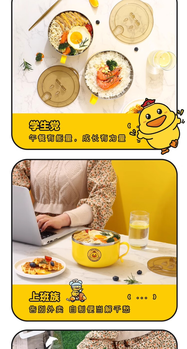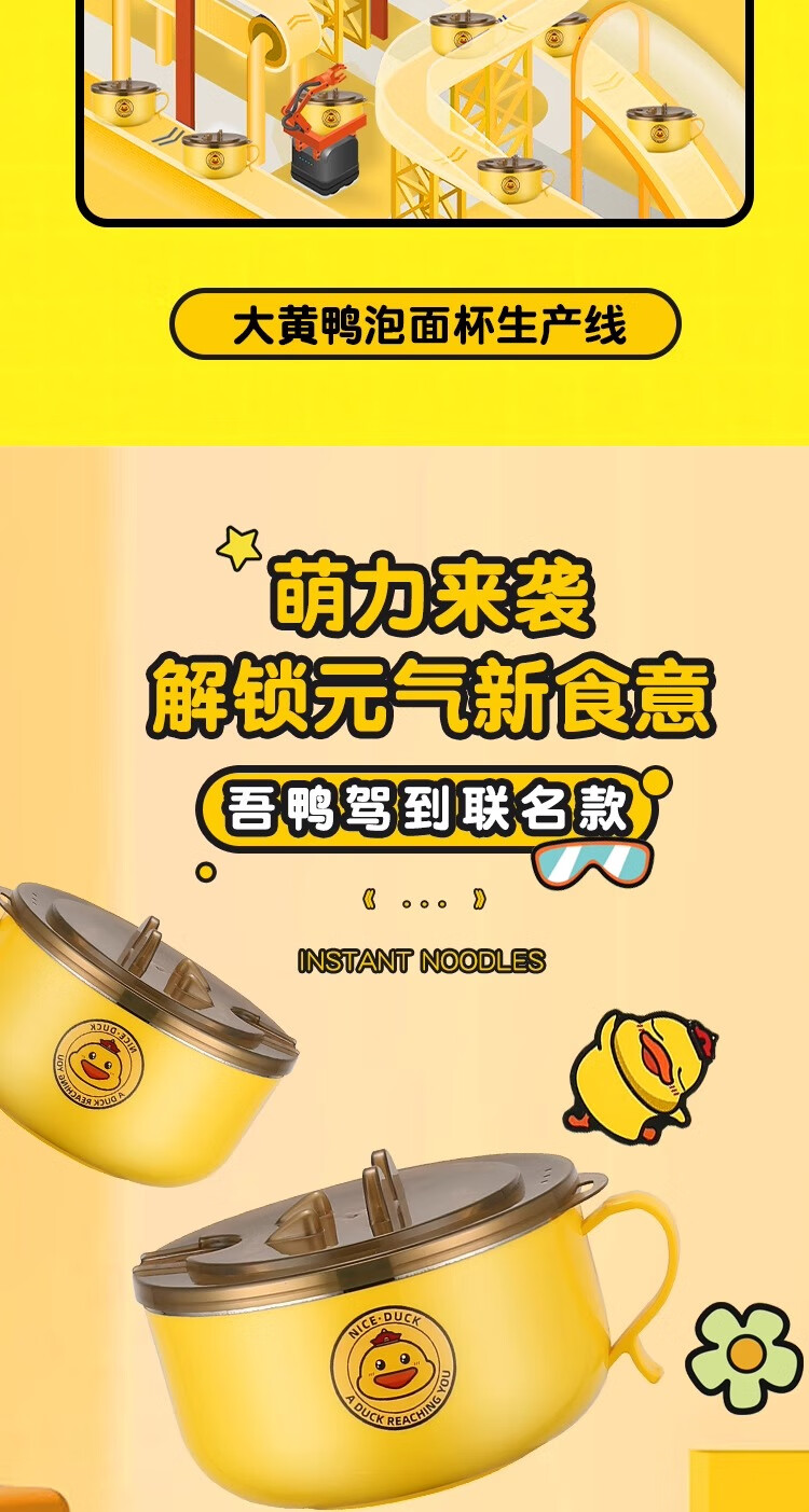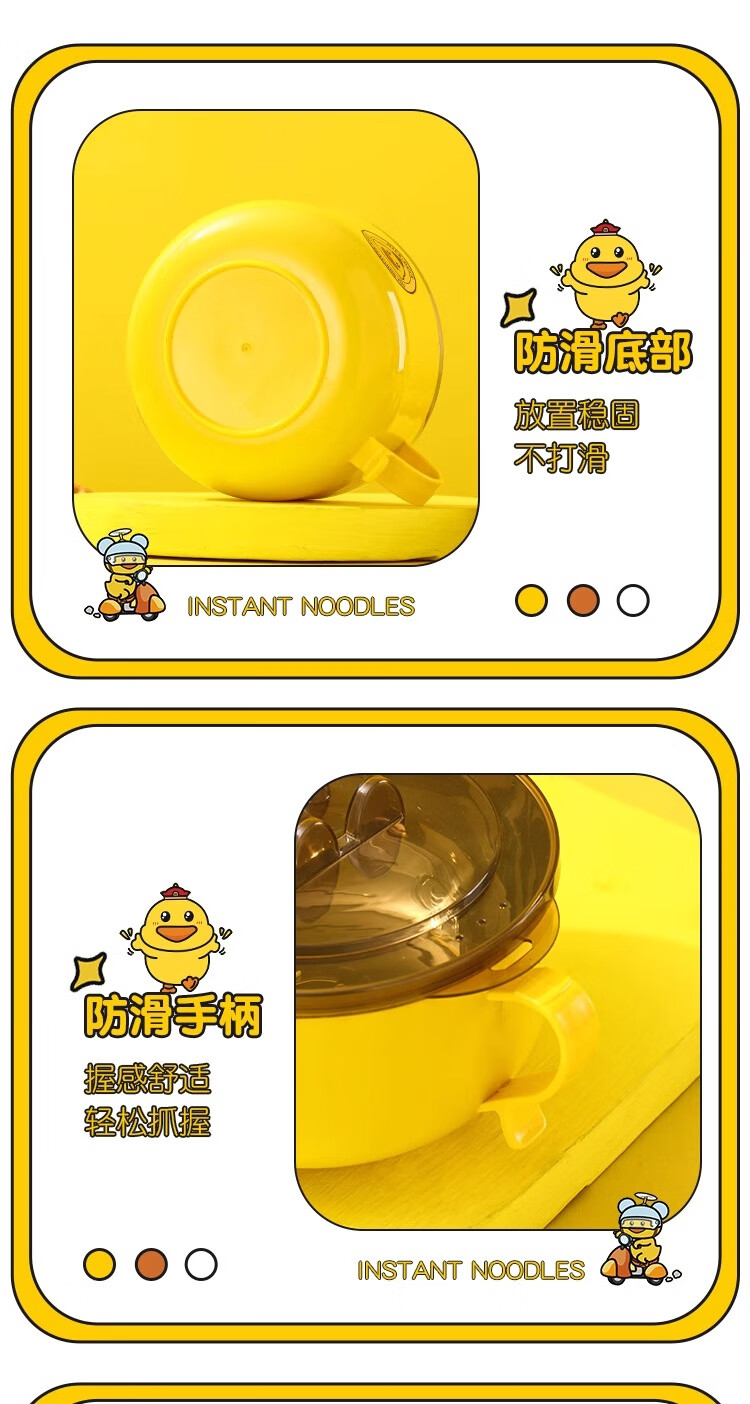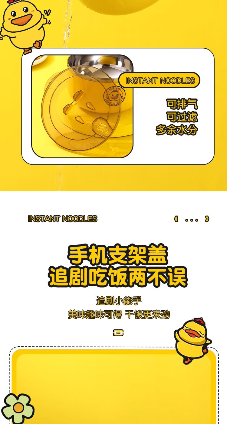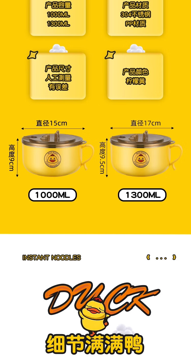 Exquisite and cute yellow duck instant noodle bowl stainless steel lunch box rice bowl filtered water student dormitory instant noodle bowl gift little yellow duck 1000ML (small noodle cake)