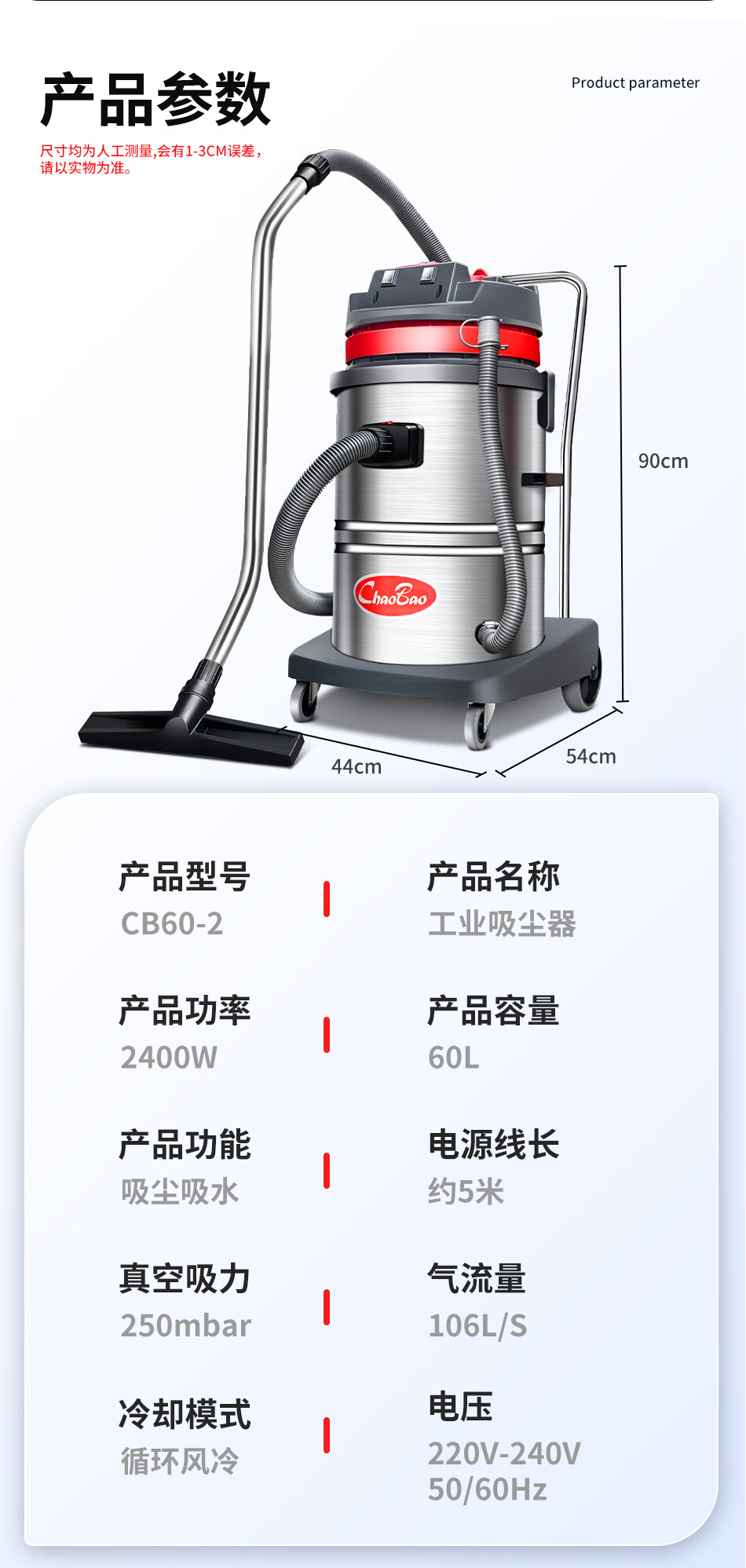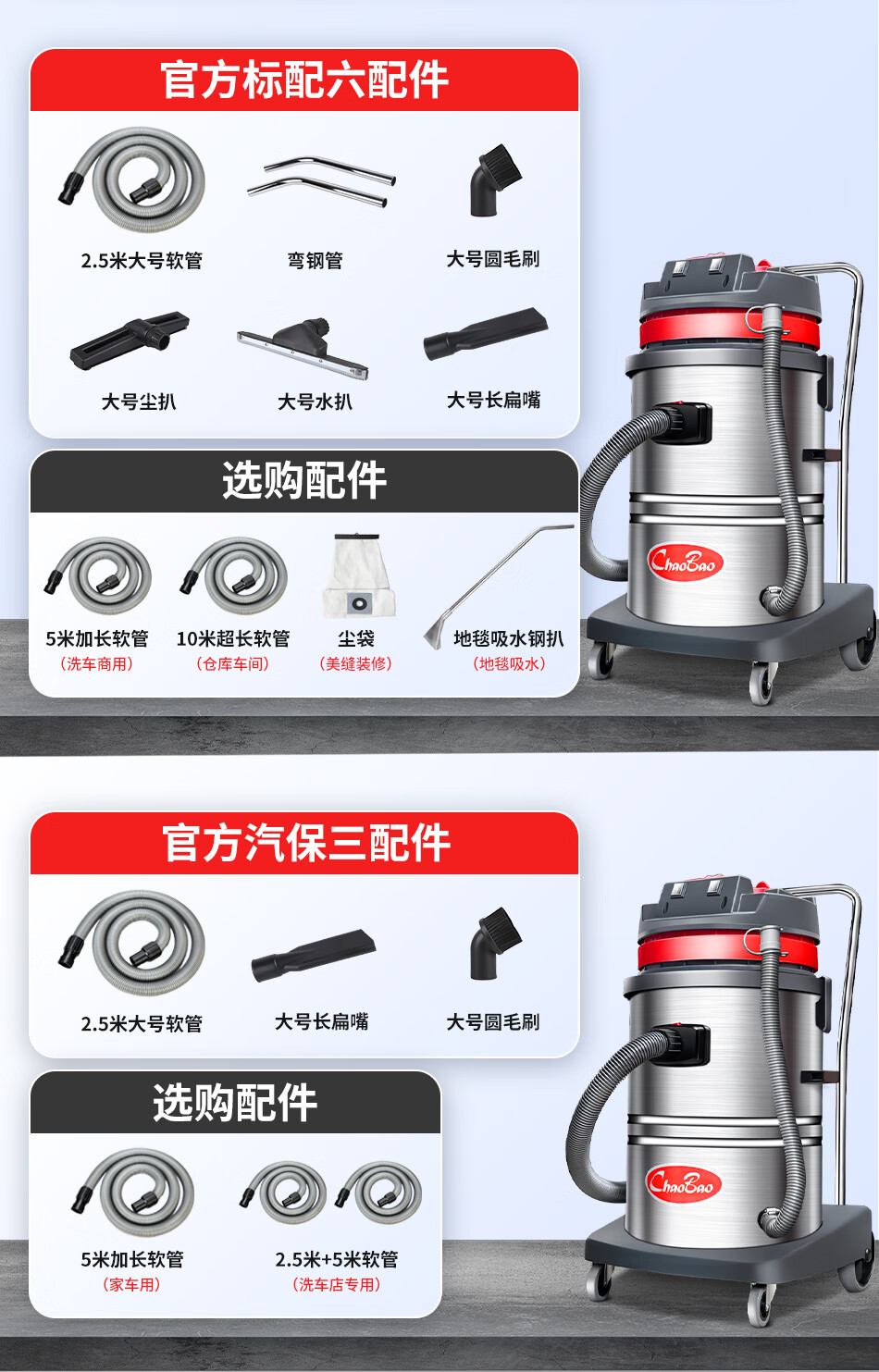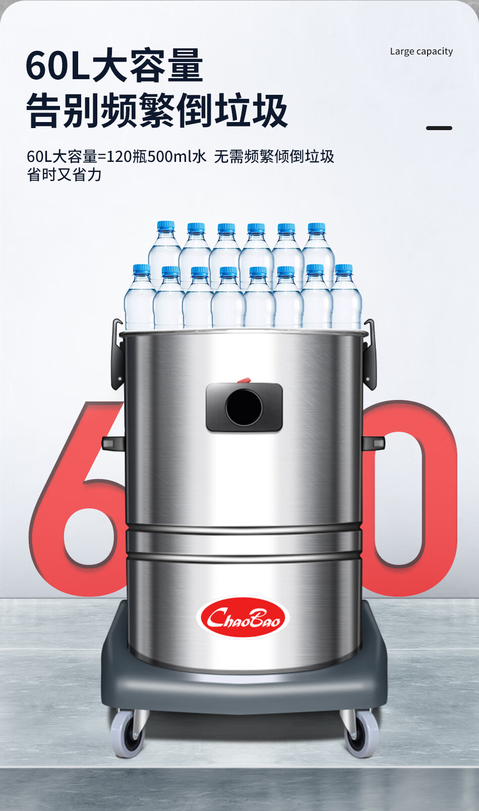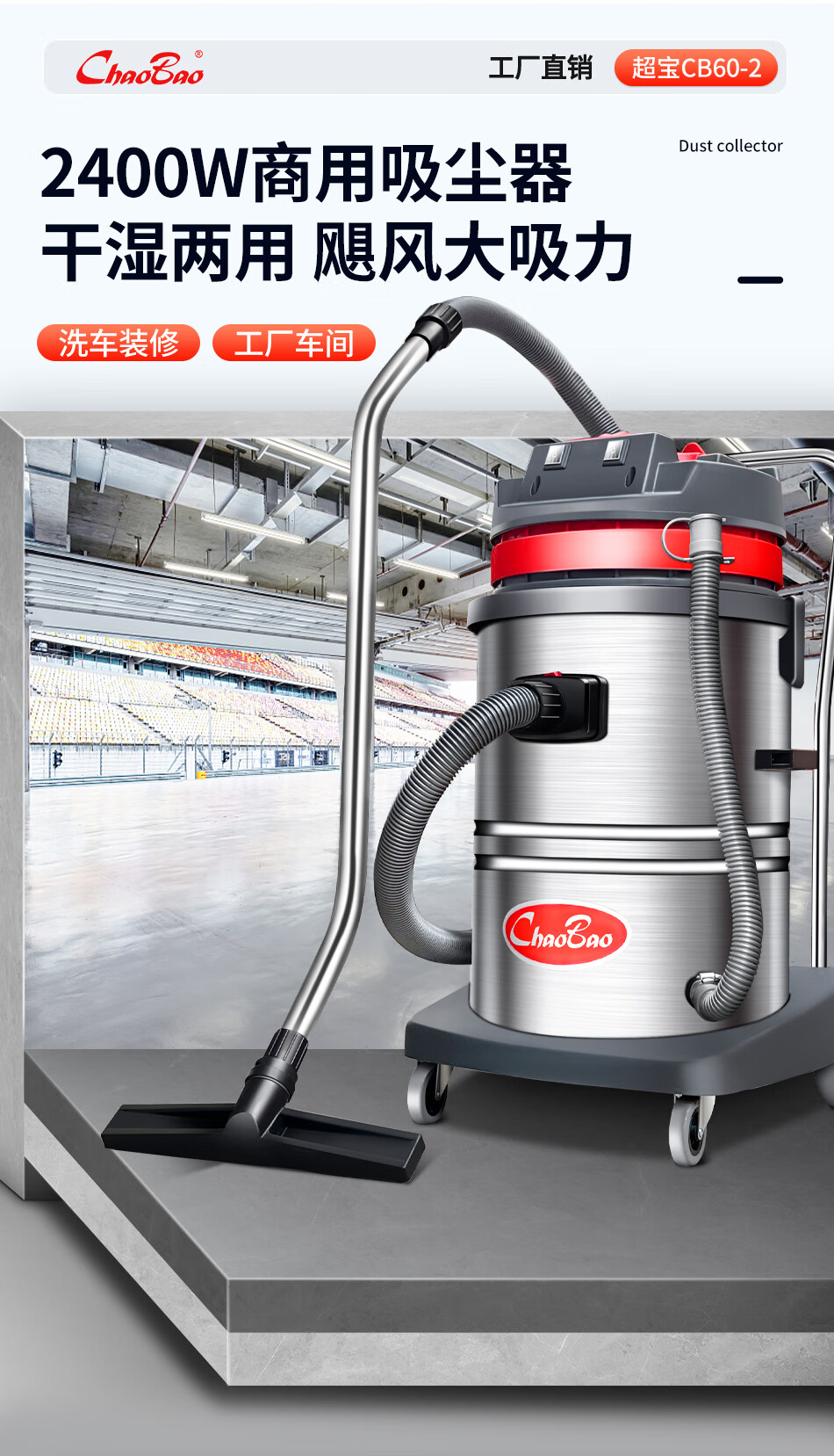 Baiyun Chaobao Clean CB60-2 Industrial Bucket Vacuum Cleaner Commercial High Power 2400W Powerful High Suction Vacuum and Water Suction Machine Factory Workshop Car Wash Shop Special Chaobao CB60-2 Standard Upgraded Enhanced Version