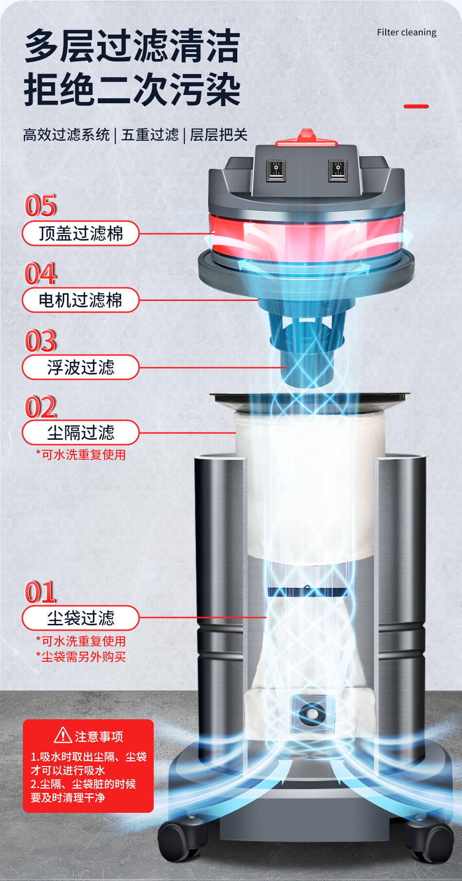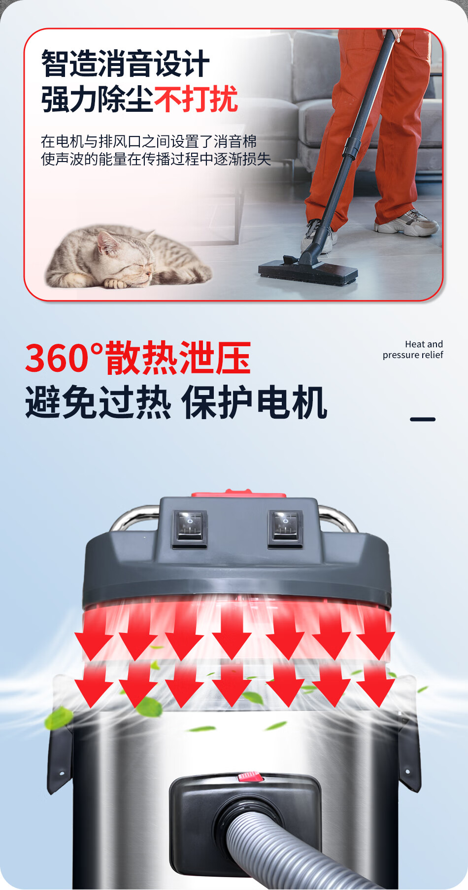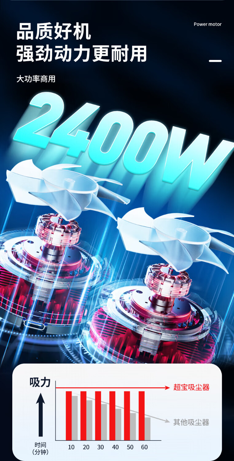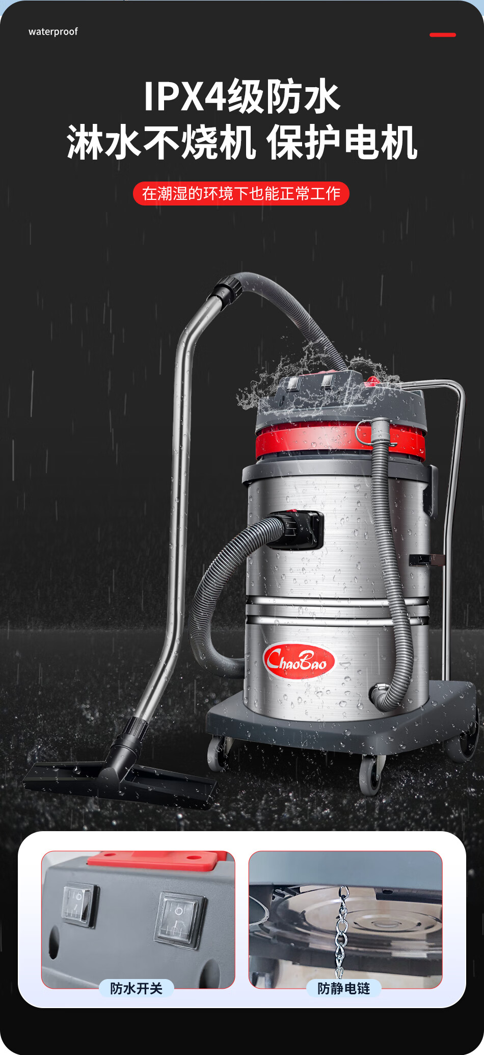 Baiyun Chaobao Clean CB60-2 Industrial Bucket Vacuum Cleaner Commercial High Power 2400W Powerful High Suction Vacuum and Water Suction Machine Factory Workshop Car Wash Shop Special Chaobao CB60-2 Standard Upgraded Enhanced Version