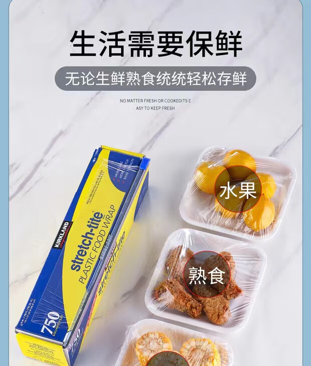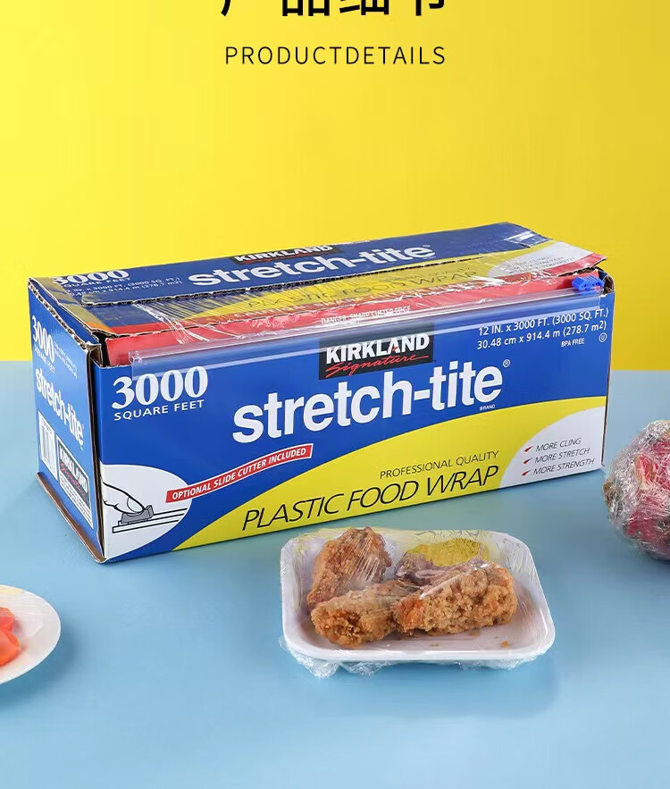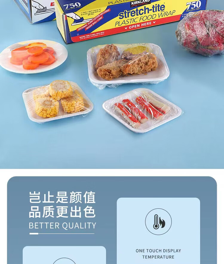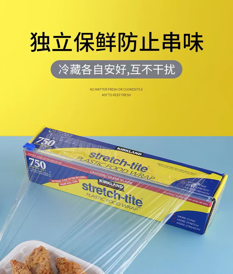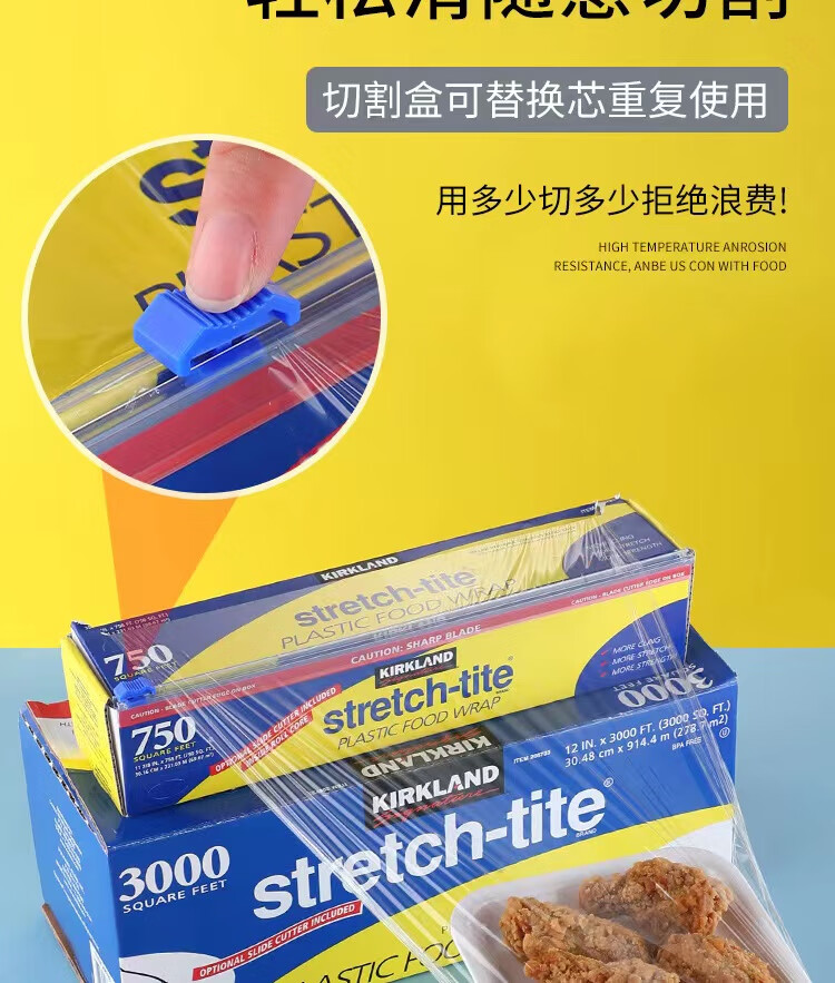 Huili's customized imported KIRKLAND food cling film for home use with cutter for kitchen high temperature resistant cling film large roll 750 feet (231 meters) 1 box 1