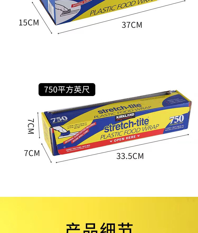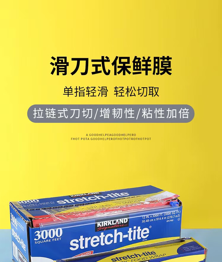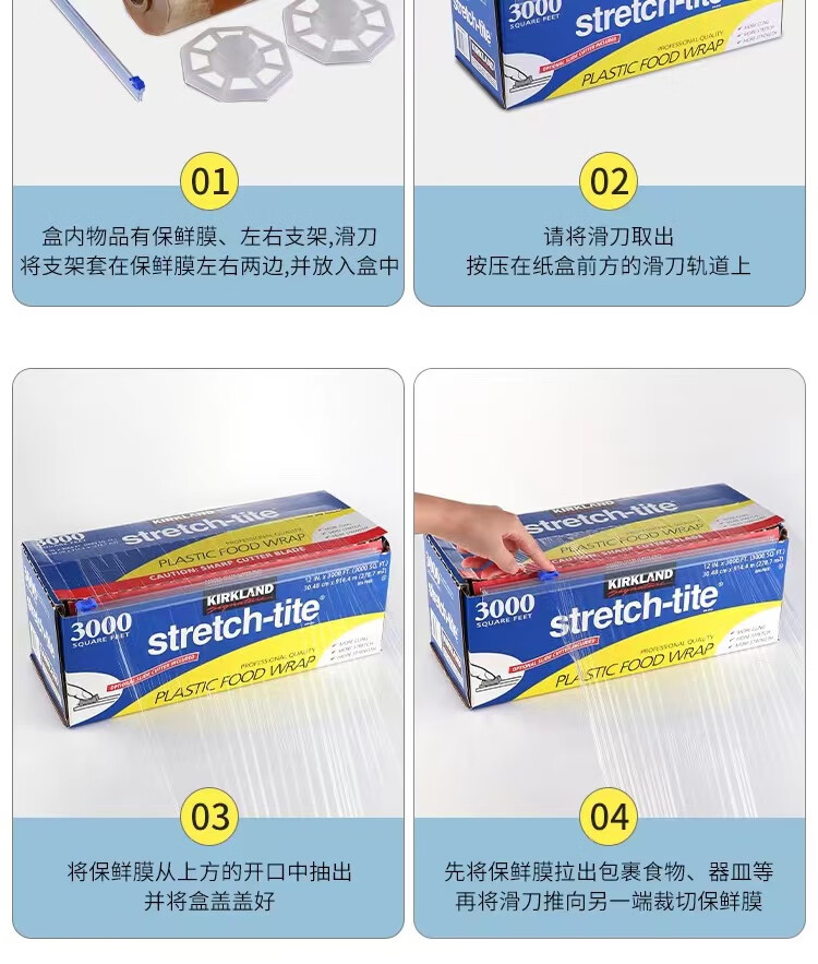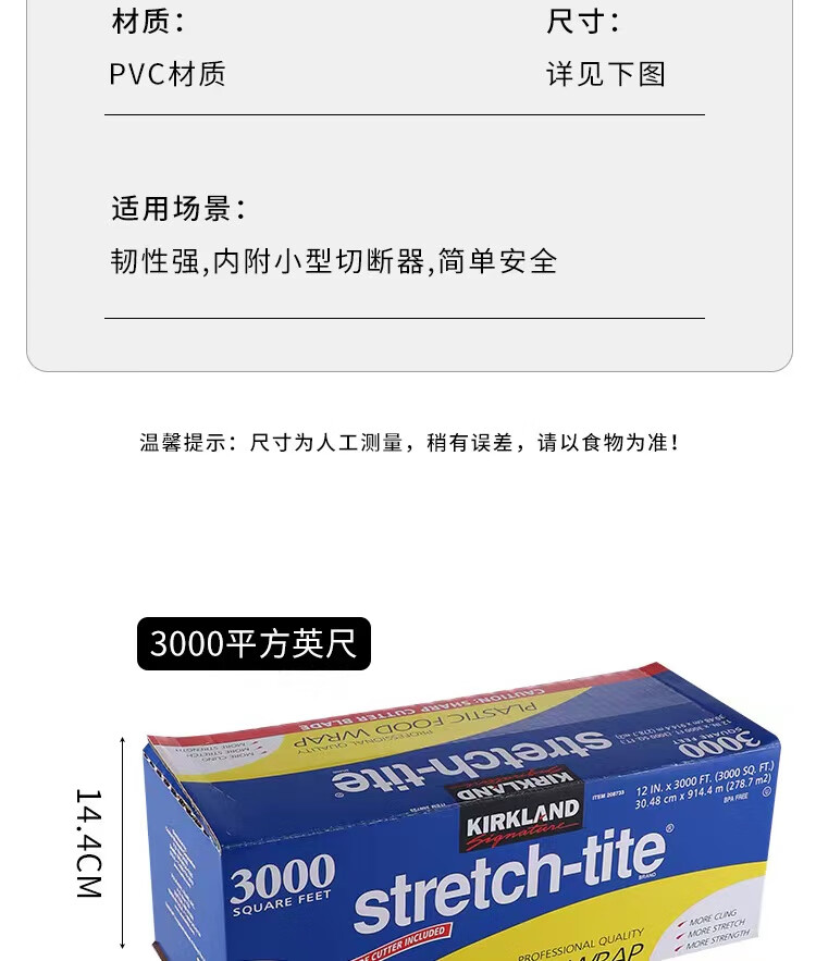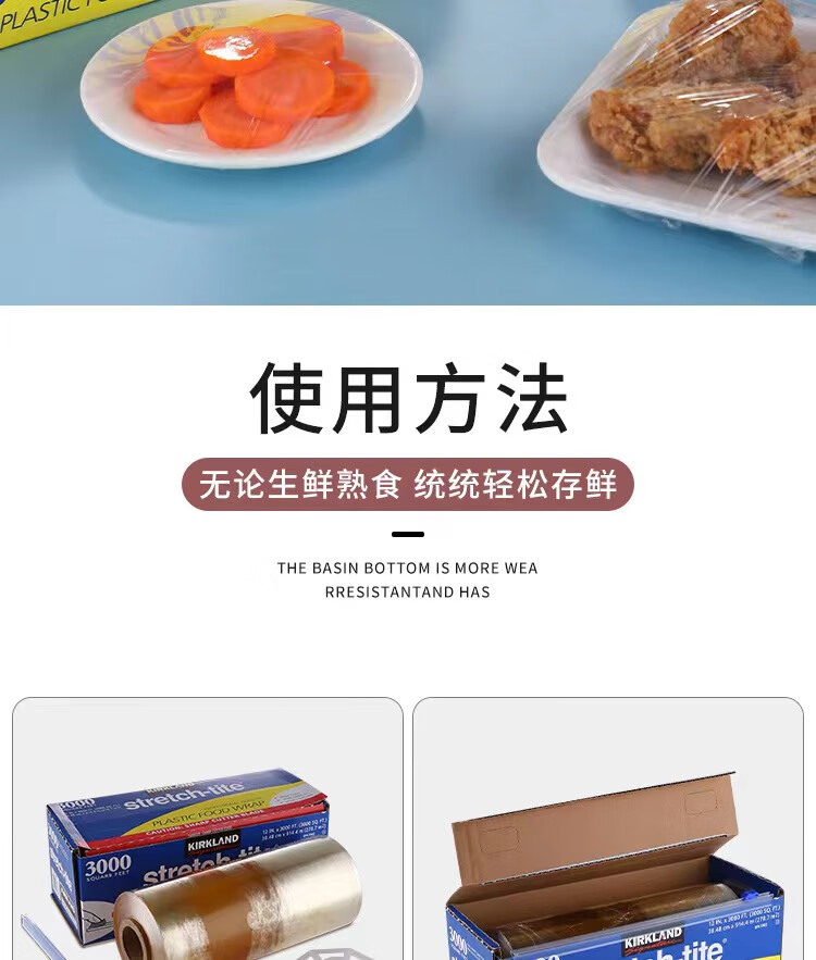 Huili's customized imported KIRKLAND food cling film for home use with cutter for kitchen high temperature resistant cling film large roll 750 feet (231 meters) 1 box 1