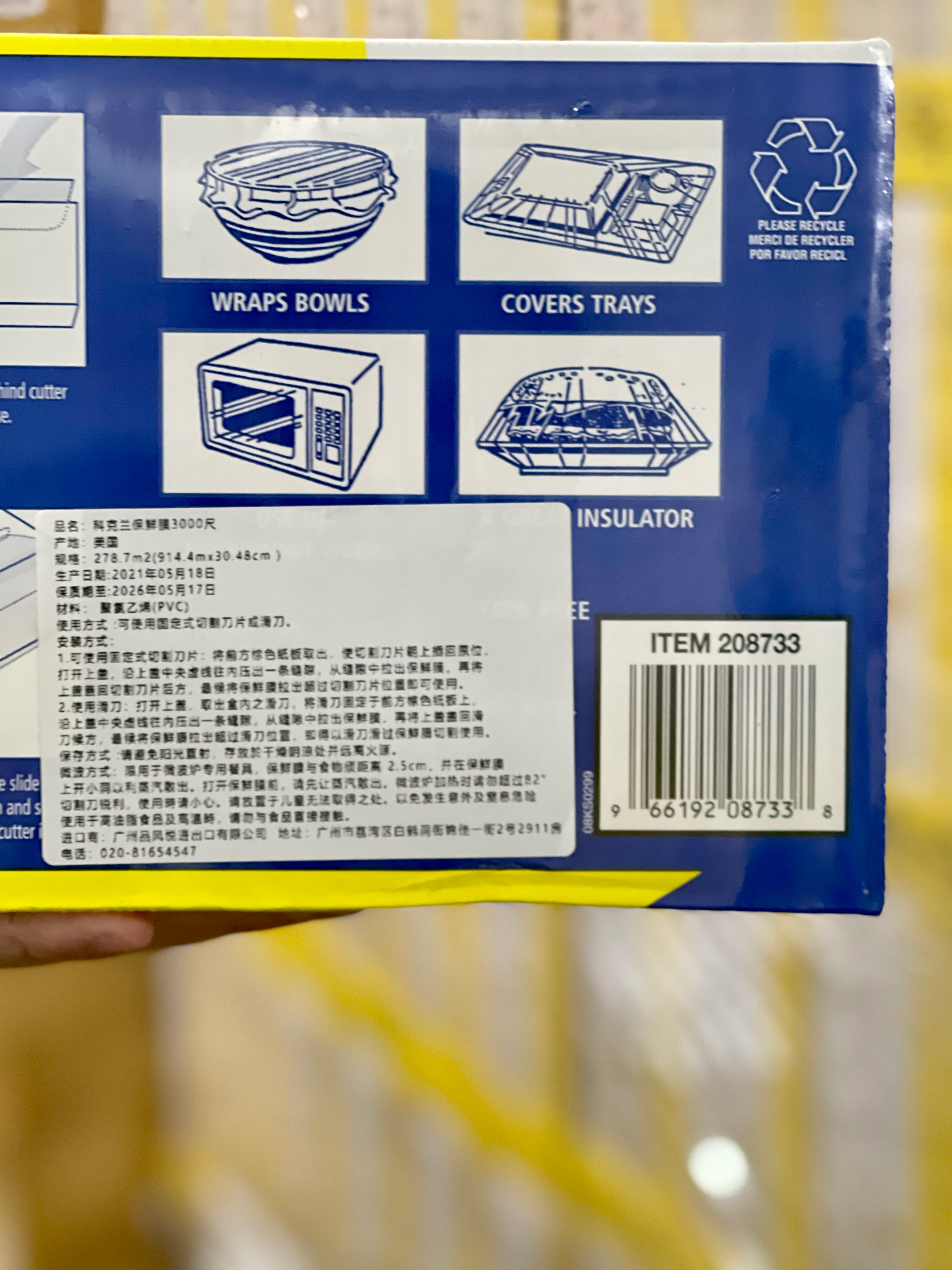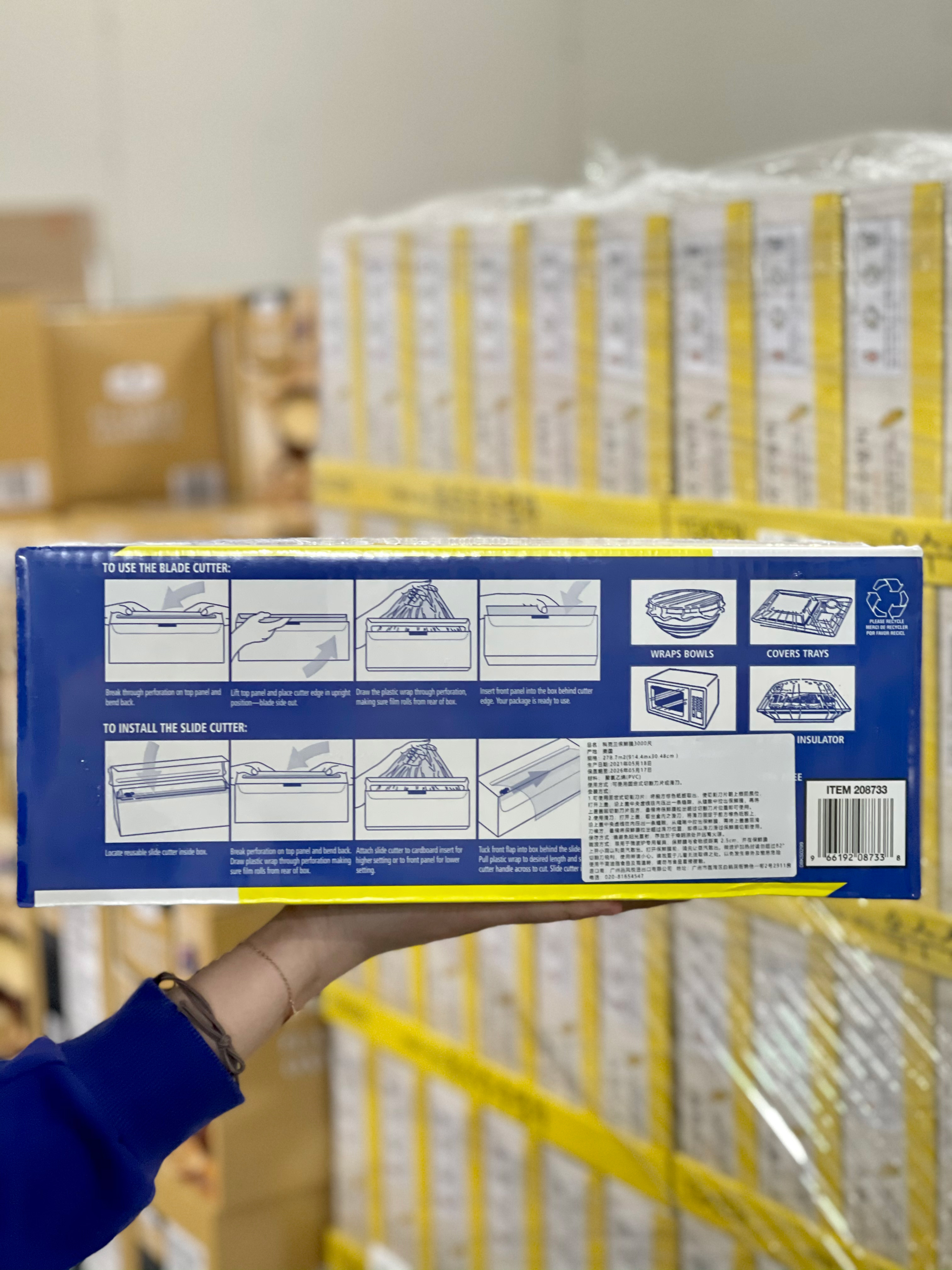 Huili's custom-made Kirkland cling film imported from the United States with its own cutter for food special large rolls for household use with high temperature resistance 750 feet (231 meters) 1 box 1