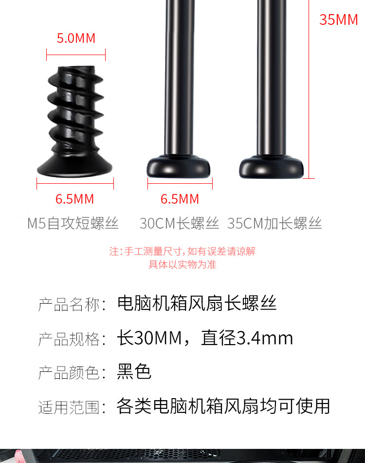 Jingeyu computer case fan cold radiator long screw 6#-32 hand screws case radiator fan fixing screw m5*10 fan short screws (16 pieces)