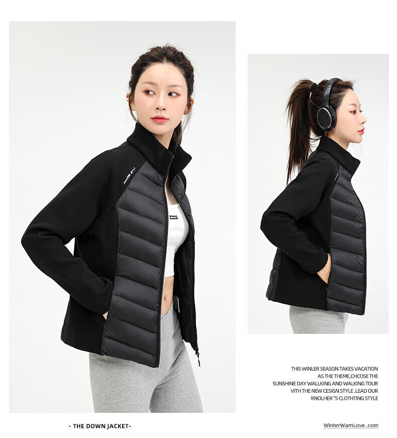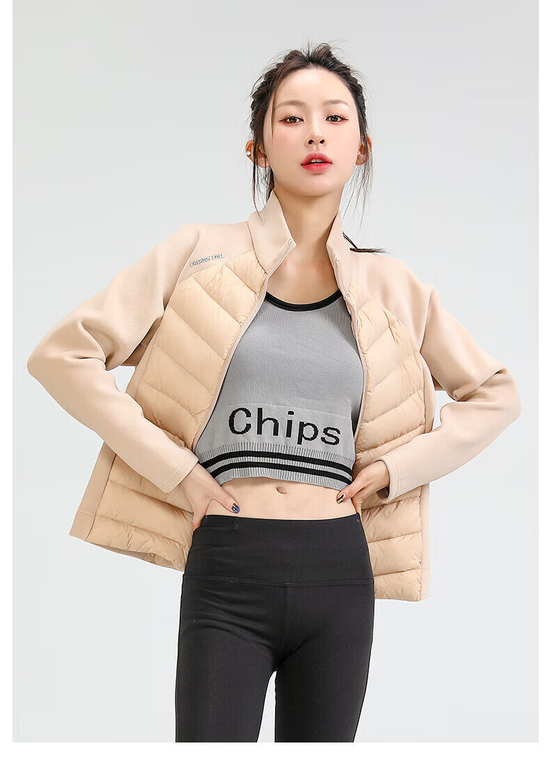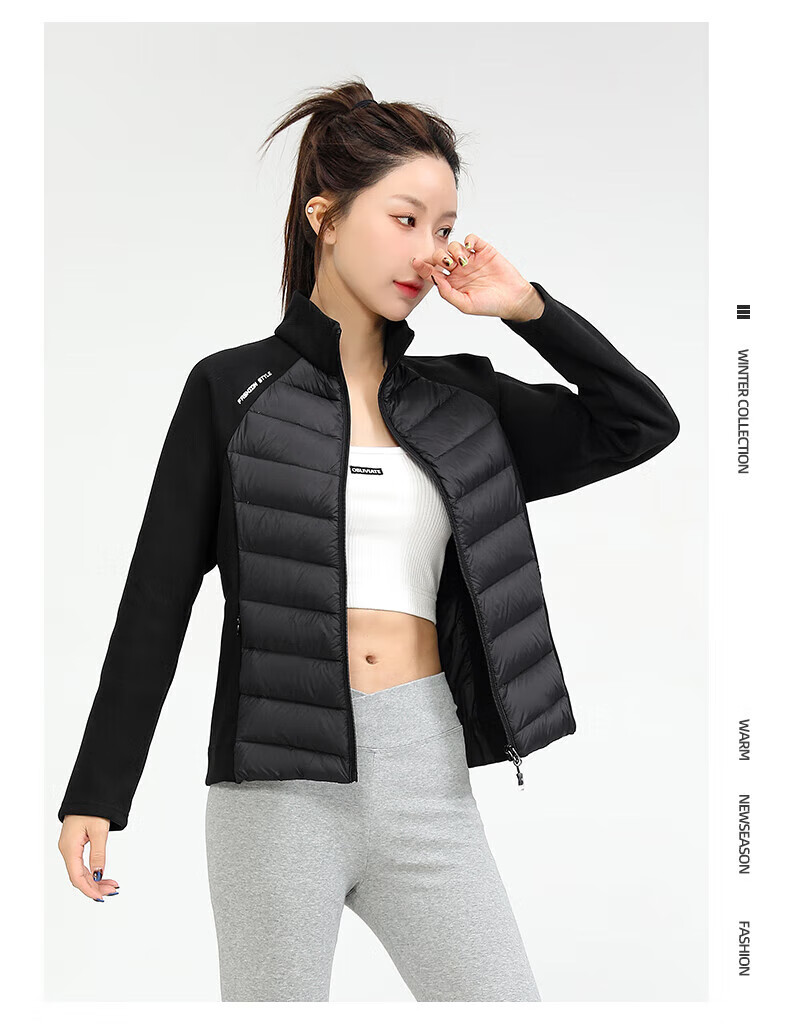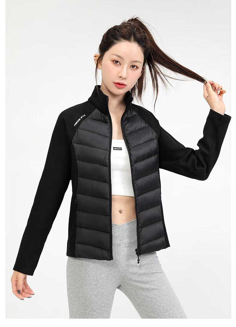 Yalu Song Yi's same style light sports down jacket for women 2025 autumn and winter new short warm rib fitness jacket black L /165 recommended 100-115 catties