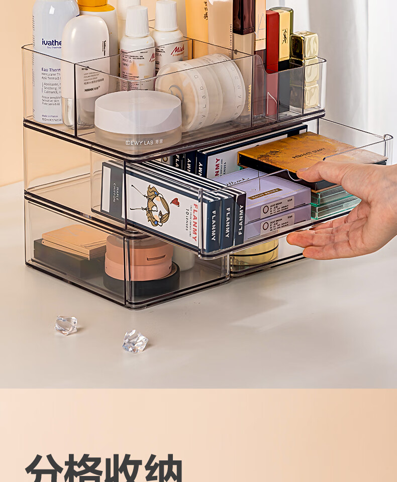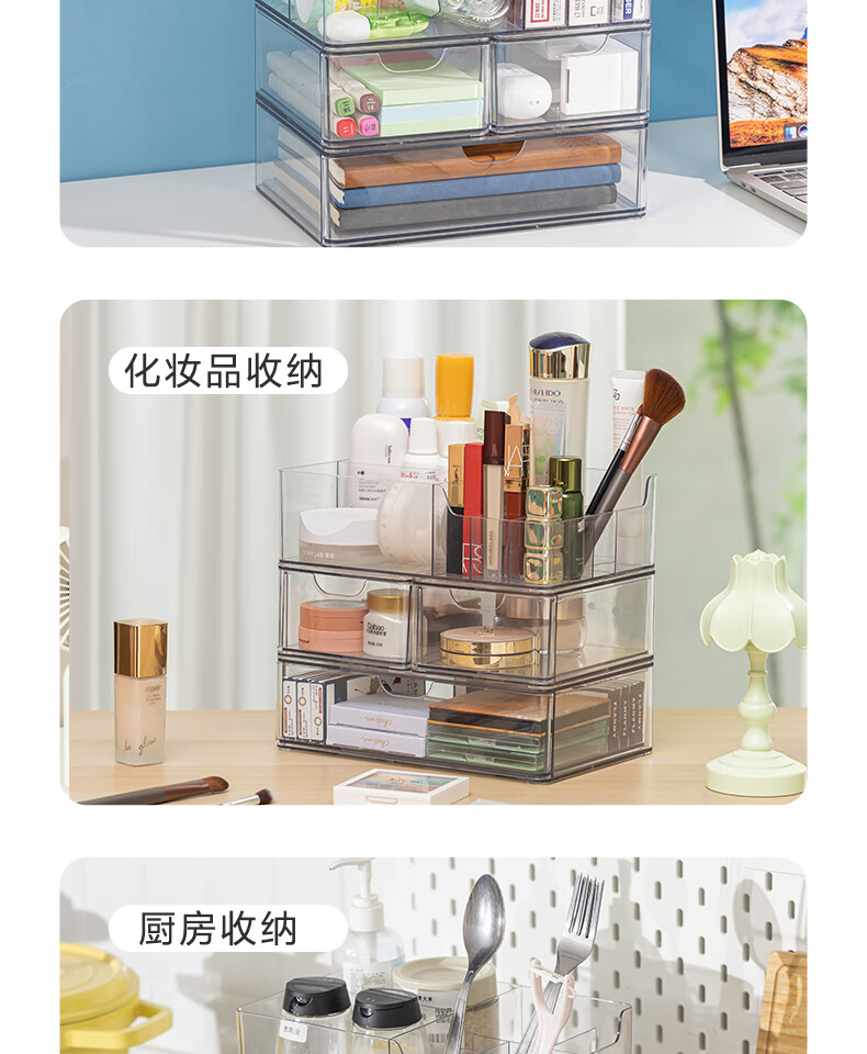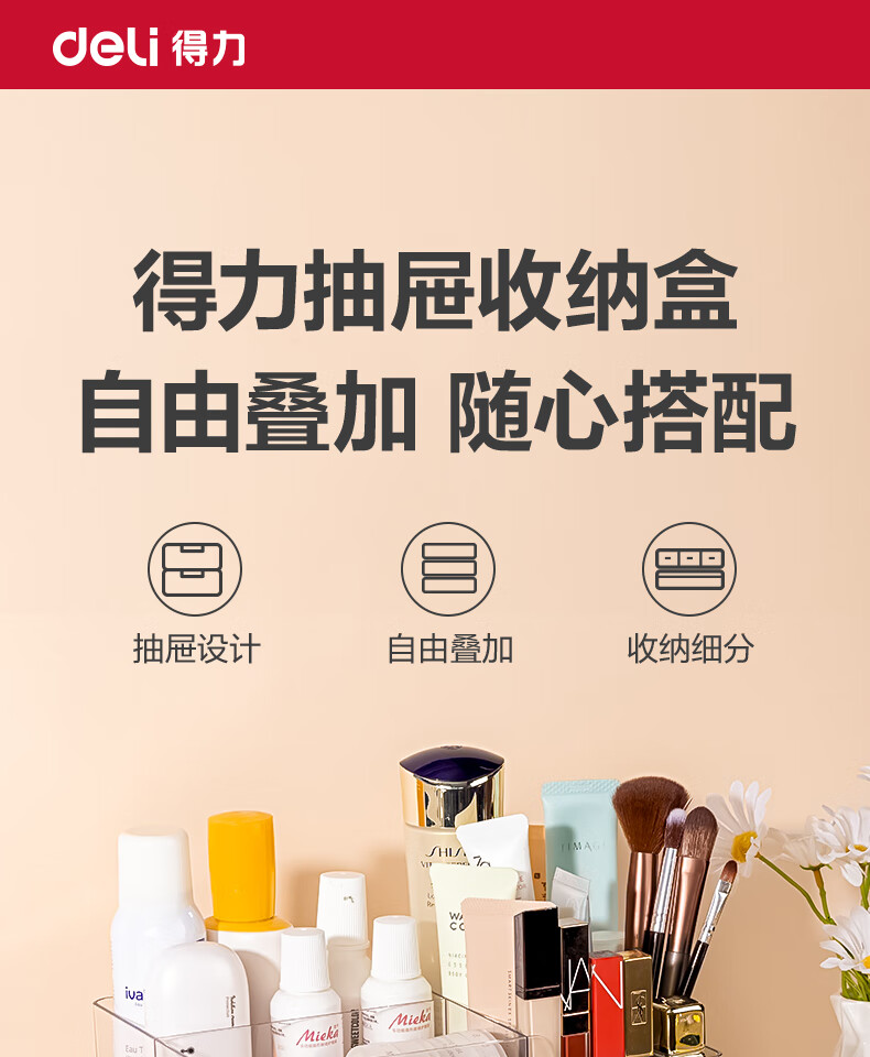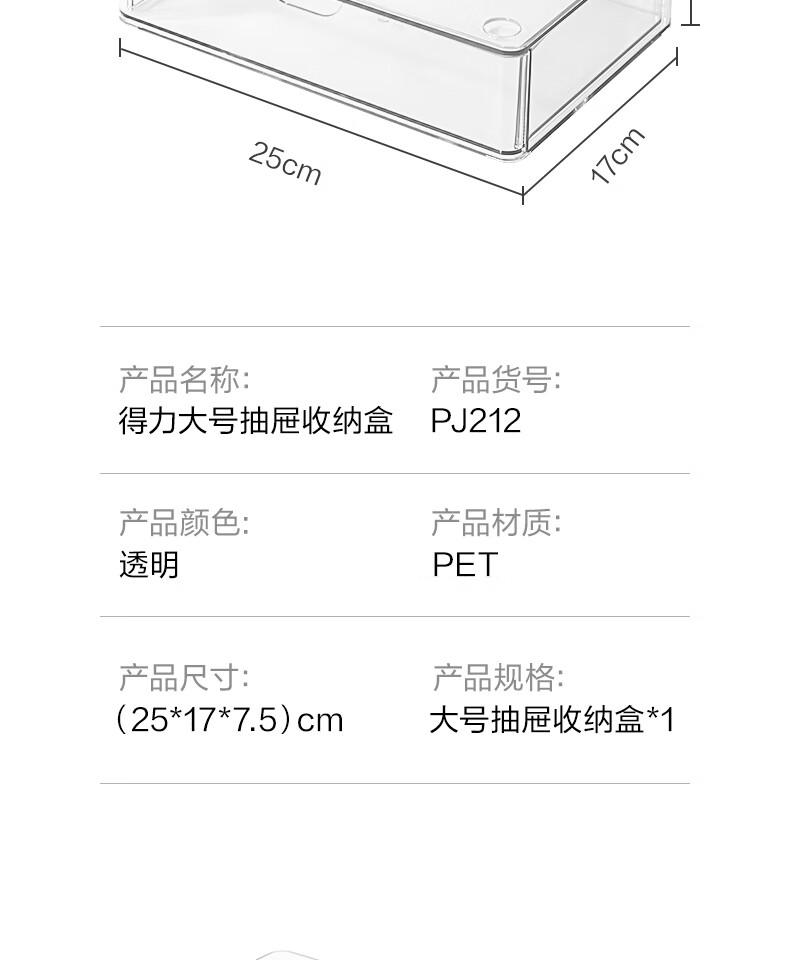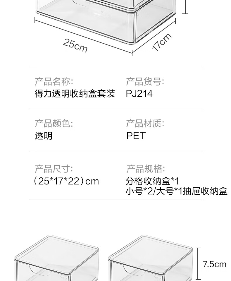 Deli transparent desktop storage box series pen holder multifunctional fashion simple large capacity freely stackable drawer type large drawer storage box PJ212