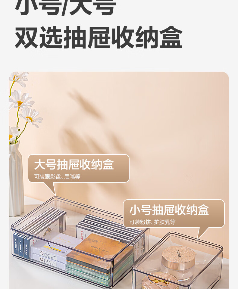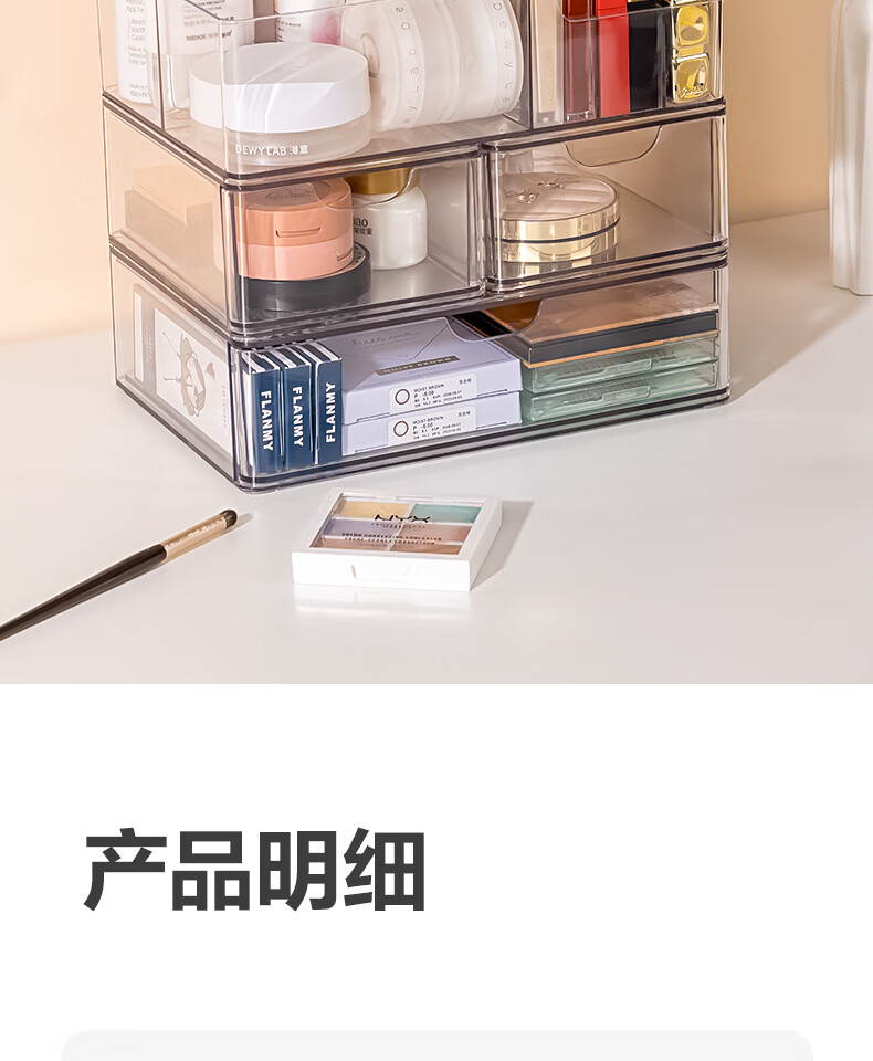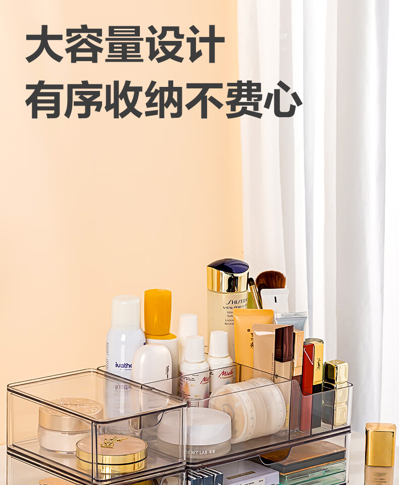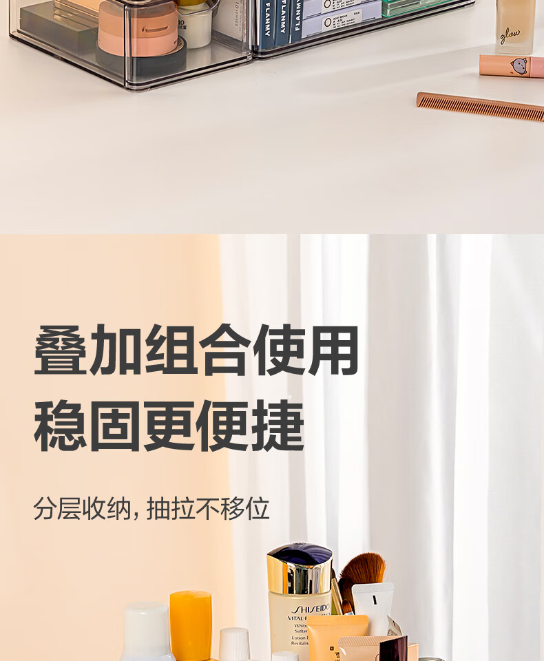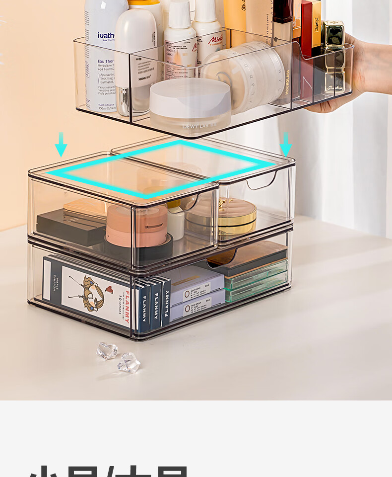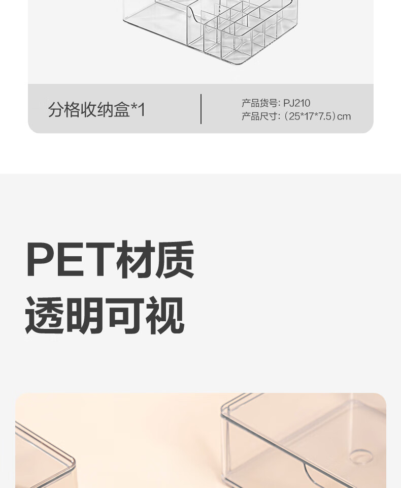 Deli transparent desktop storage box series pen holder multifunctional fashion simple large capacity freely stackable drawer type large drawer storage box PJ212